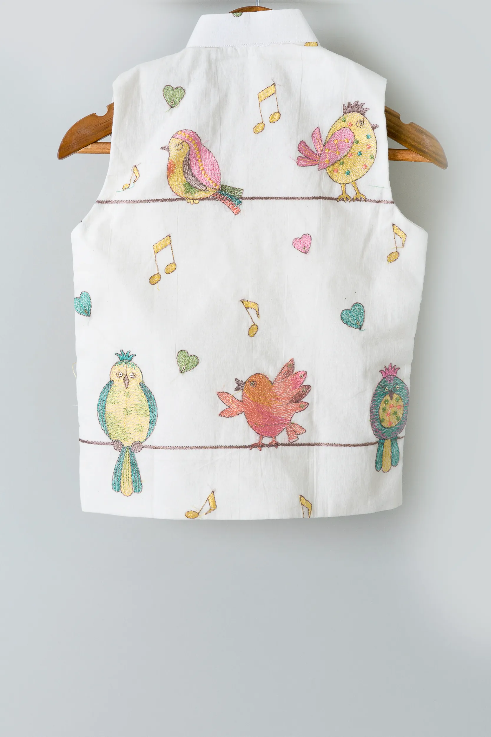 Ivory Kurta And Pants With Birds Emroided Jacket