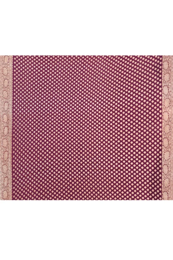 Light Beige Banarasi Silk Saree with Maroon Border & Gold Zari Jaal