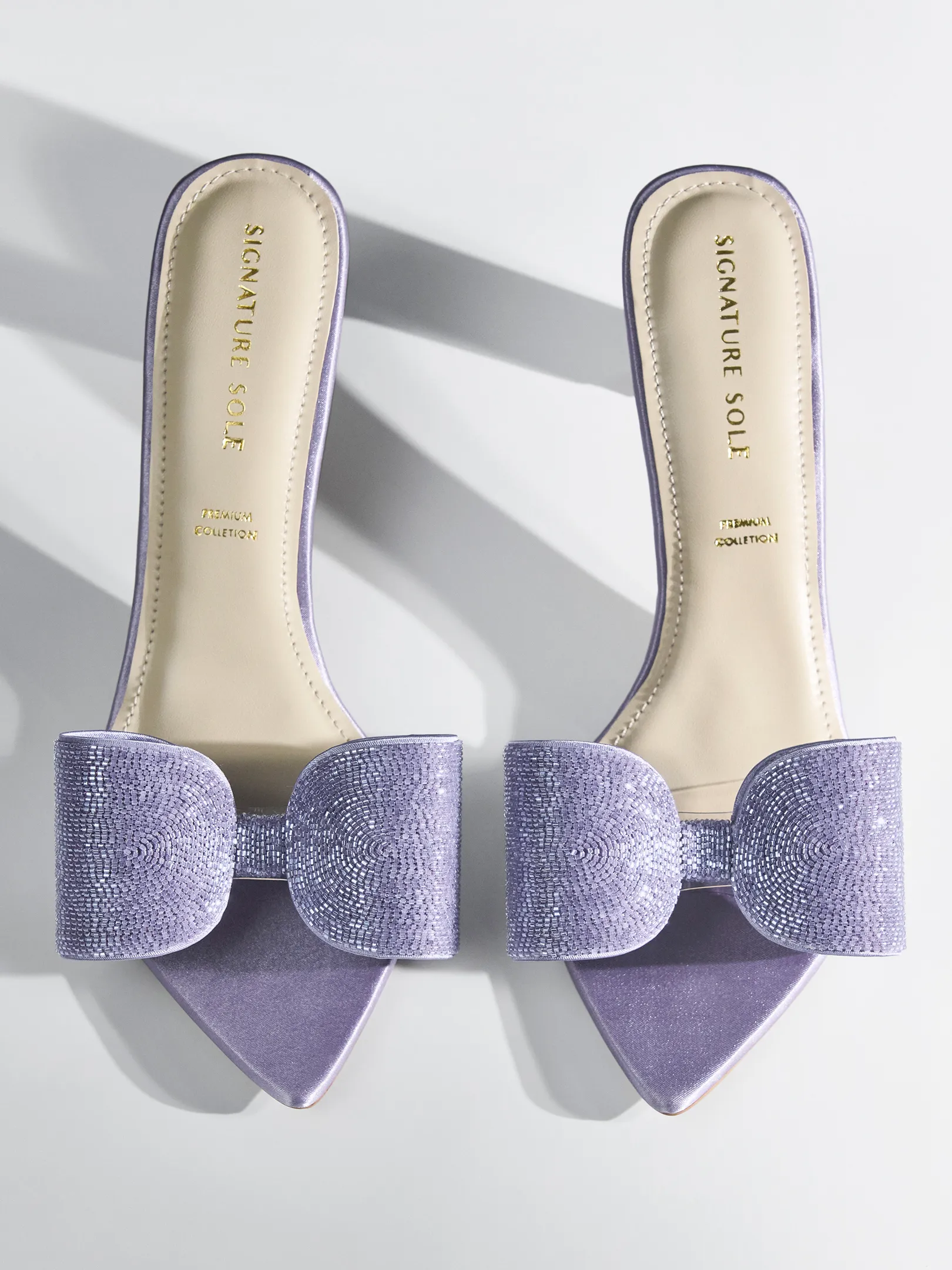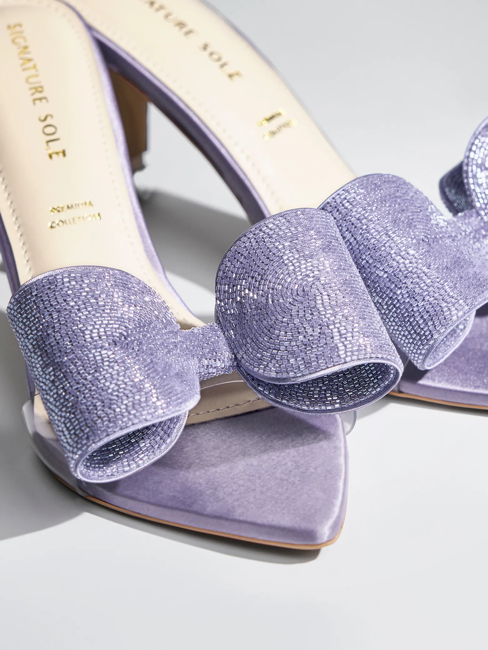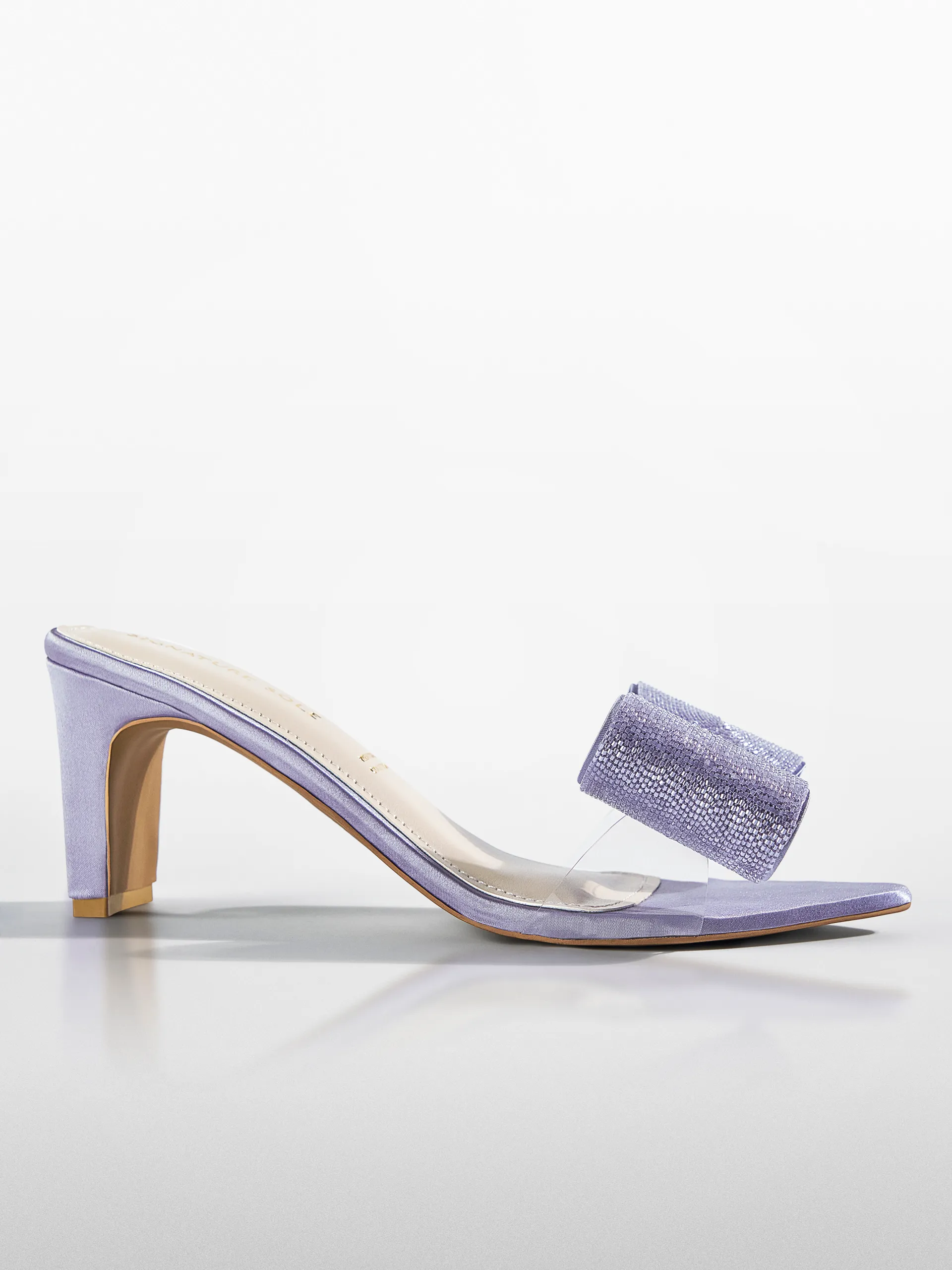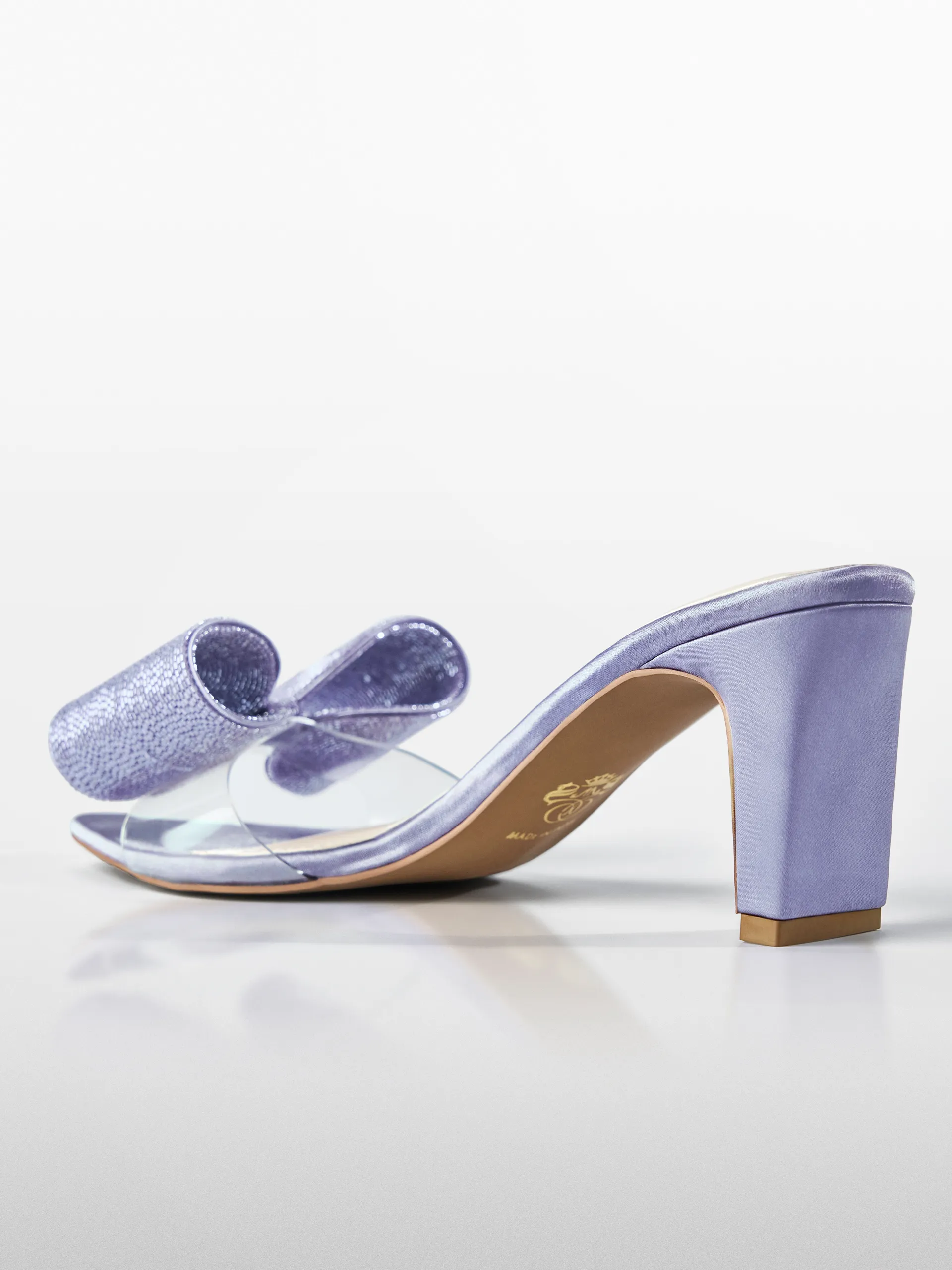 Lilac Crystal Bow Transparent Kitten Heel – Heels for Women & Embellished Heels for Women