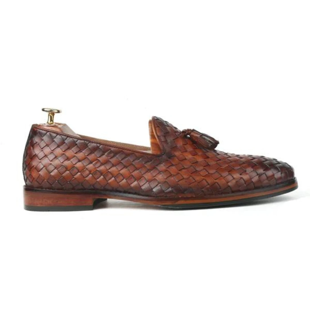 Lucas Cognac Woven Leather Slip-On Shoes – Men’s Wear