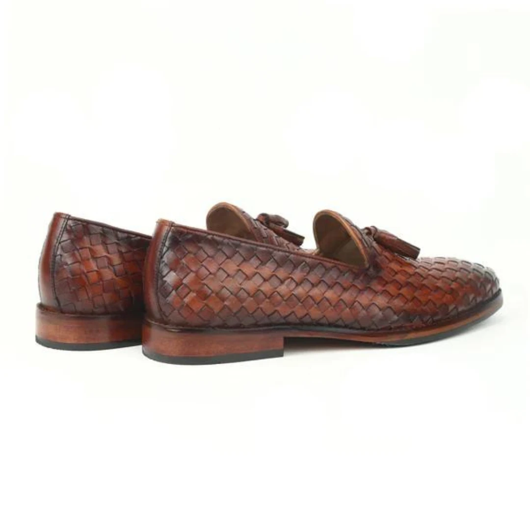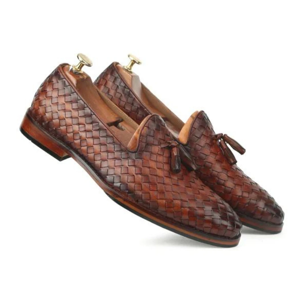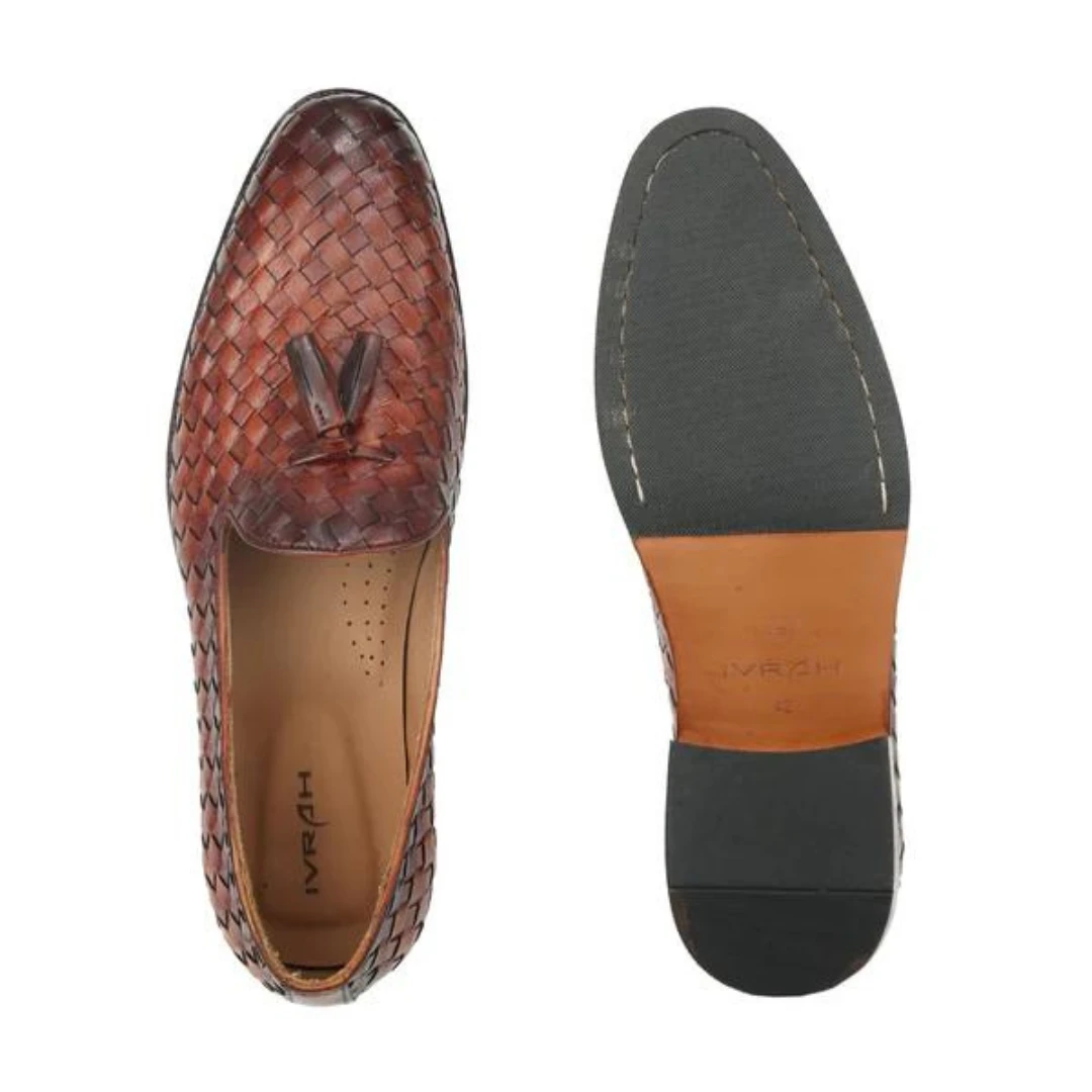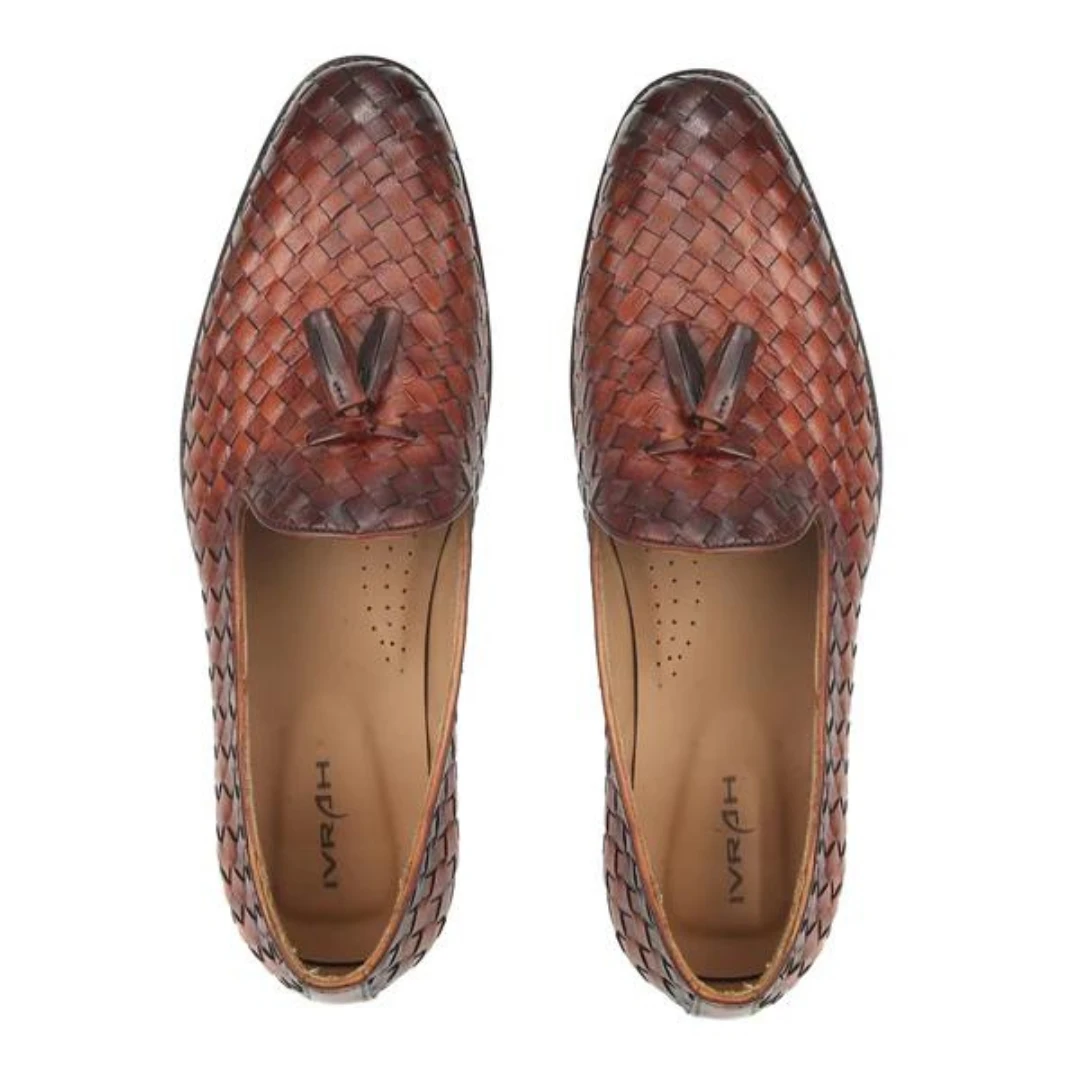 The Lucas Cognac Woven Leather Slip-On Shoes combine refined craftsmanship with effortless sophistication. Designed with an elegant woven leather upper in a rich cognac shade, these slip-ons feature classic tassel detailing that adds a touch of timeless charm. Made from genuine leather and carefully handcrafted, they provide superior comfort and a polished finish suitable for both formal and smart-casual occasions. The durable anti-skid sole offers excellent grip and stability, ensuring confident steps throughout the day. Proudly handmade in India, the Lucas slip-ons are a perfect blend of luxury, style, and everyday practicality.
