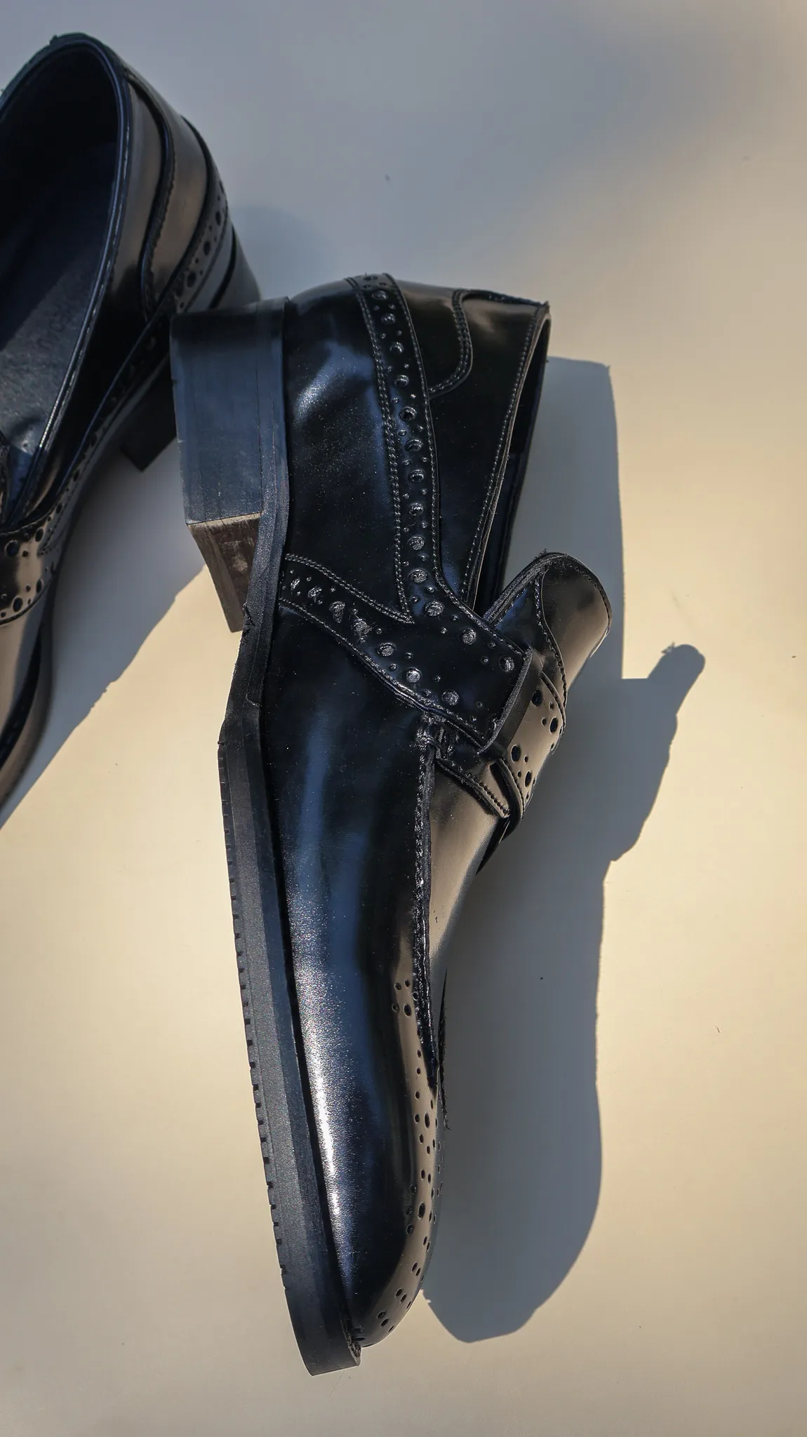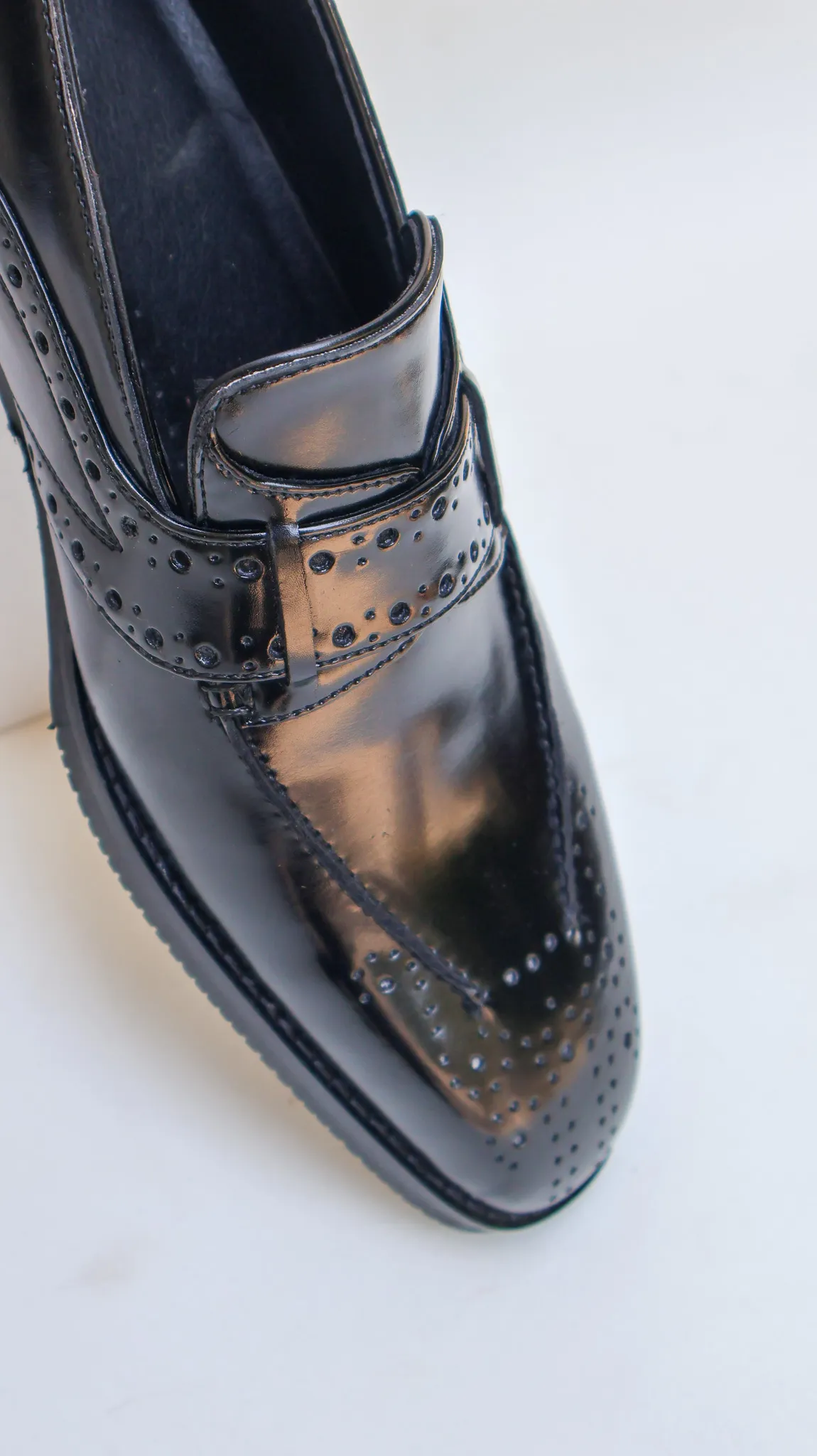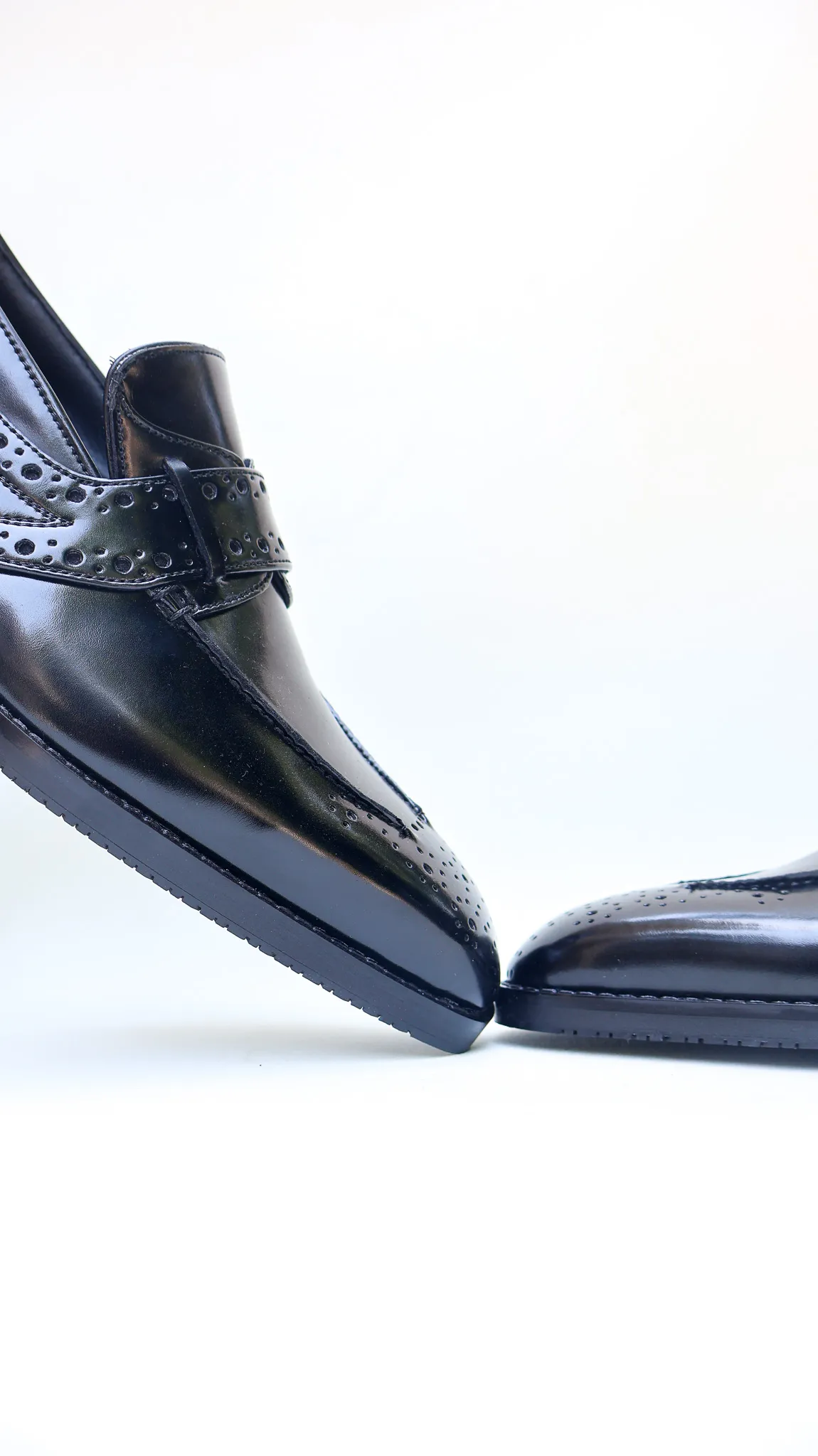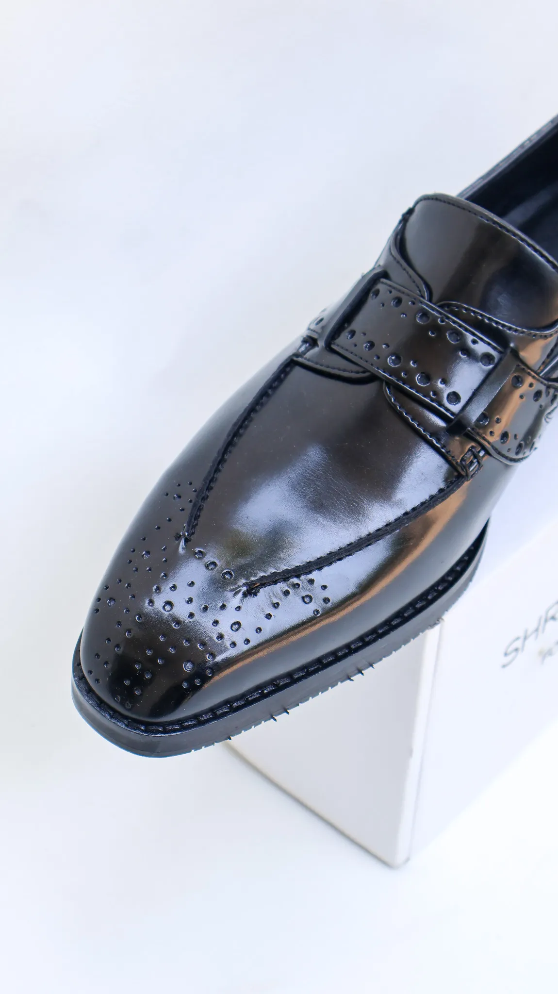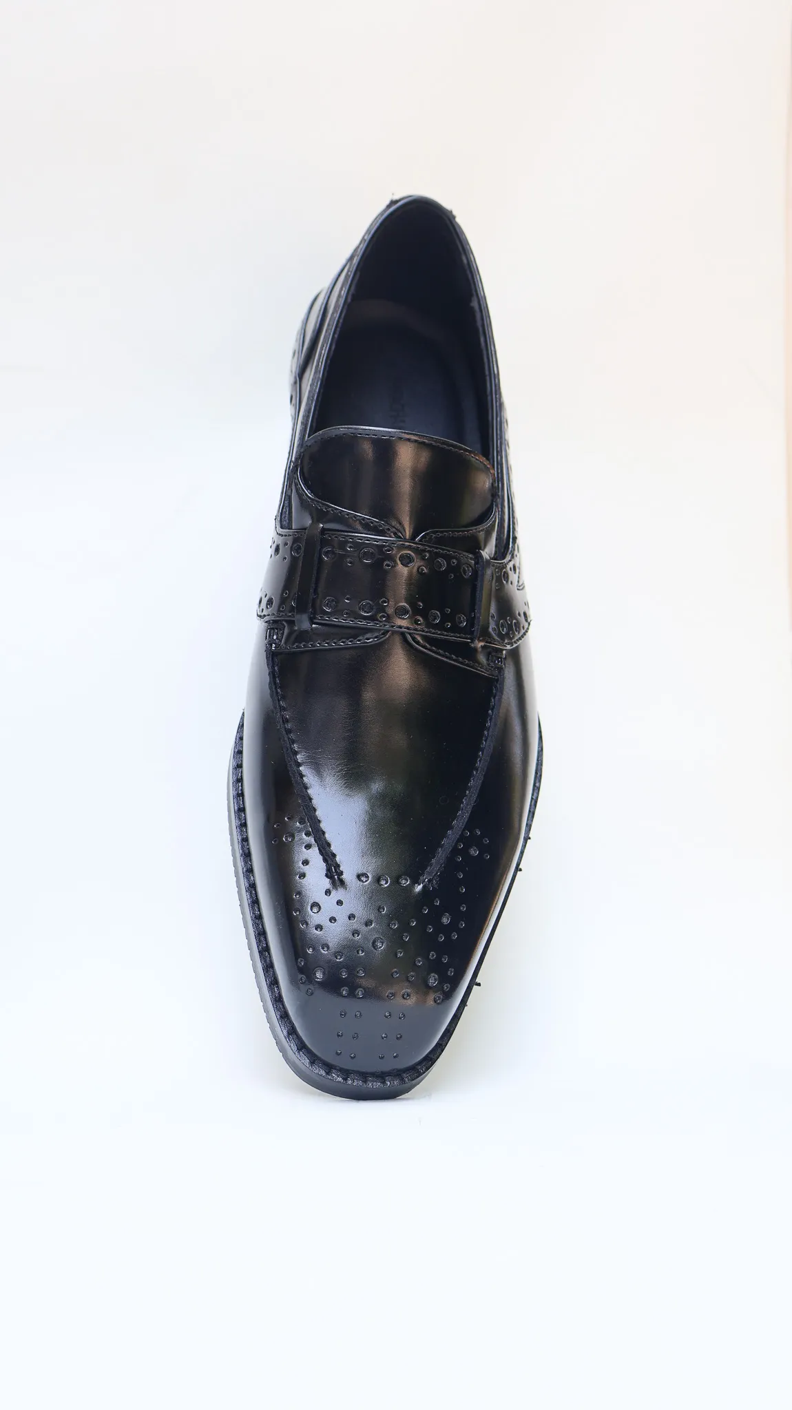 Lucus Black Pure Leather Brogue Formal Shoes with Strap Closure