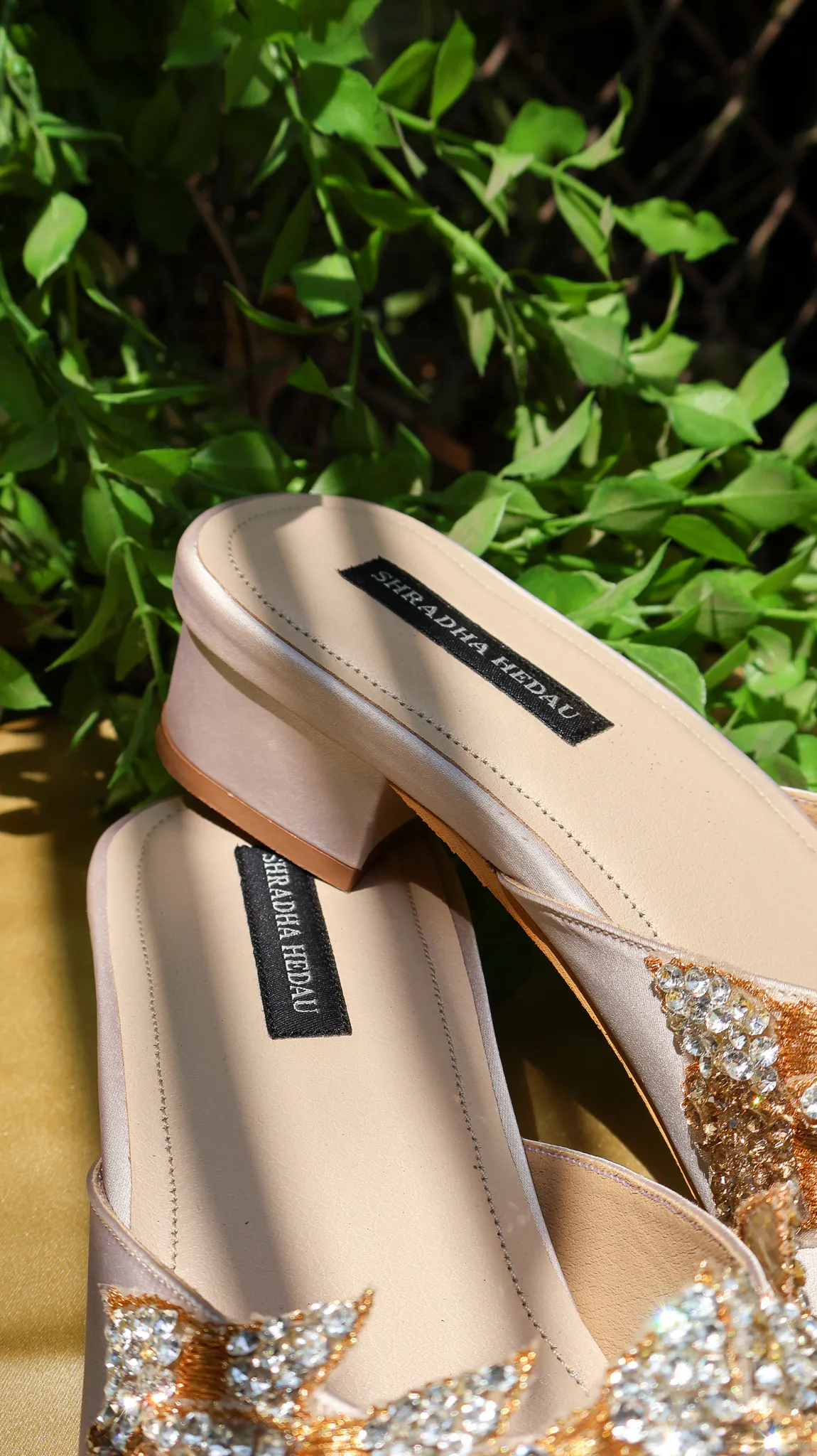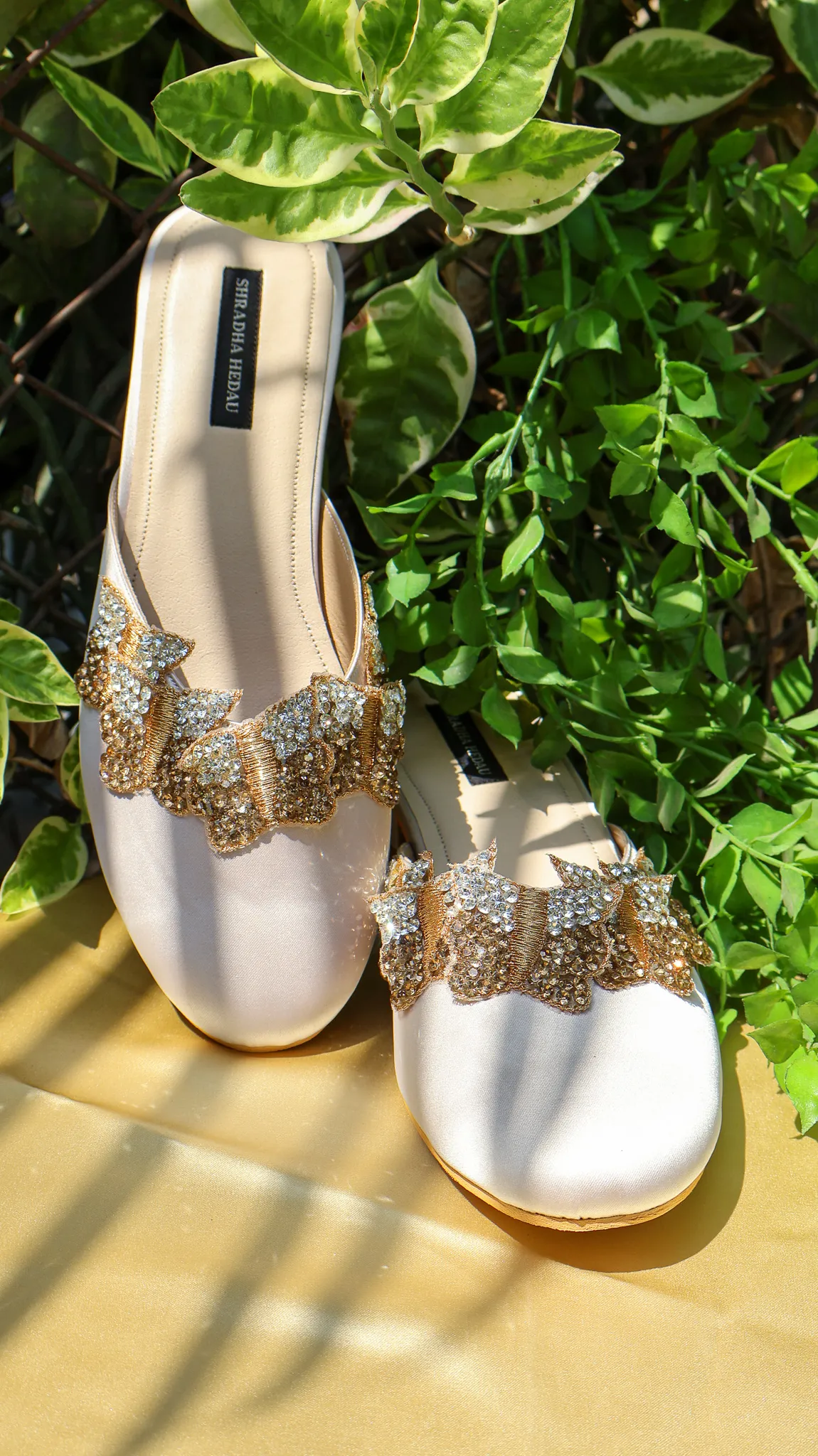 Introducing the Mariposa Collection, a beige closed heel embellished to perfection and crafted from premium satin. Designed with a sleek pointed silhouette, this elegant pair features delicately adorned straps that add a subtle shimmer to its refined look. The soft satin texture enhances its luxurious appeal, while the comfortable fit ensures effortless wear for long hours. Ideal for festive gatherings, parties, and special occasions, Mariposa brings timeless grace and understated glamour to every step.