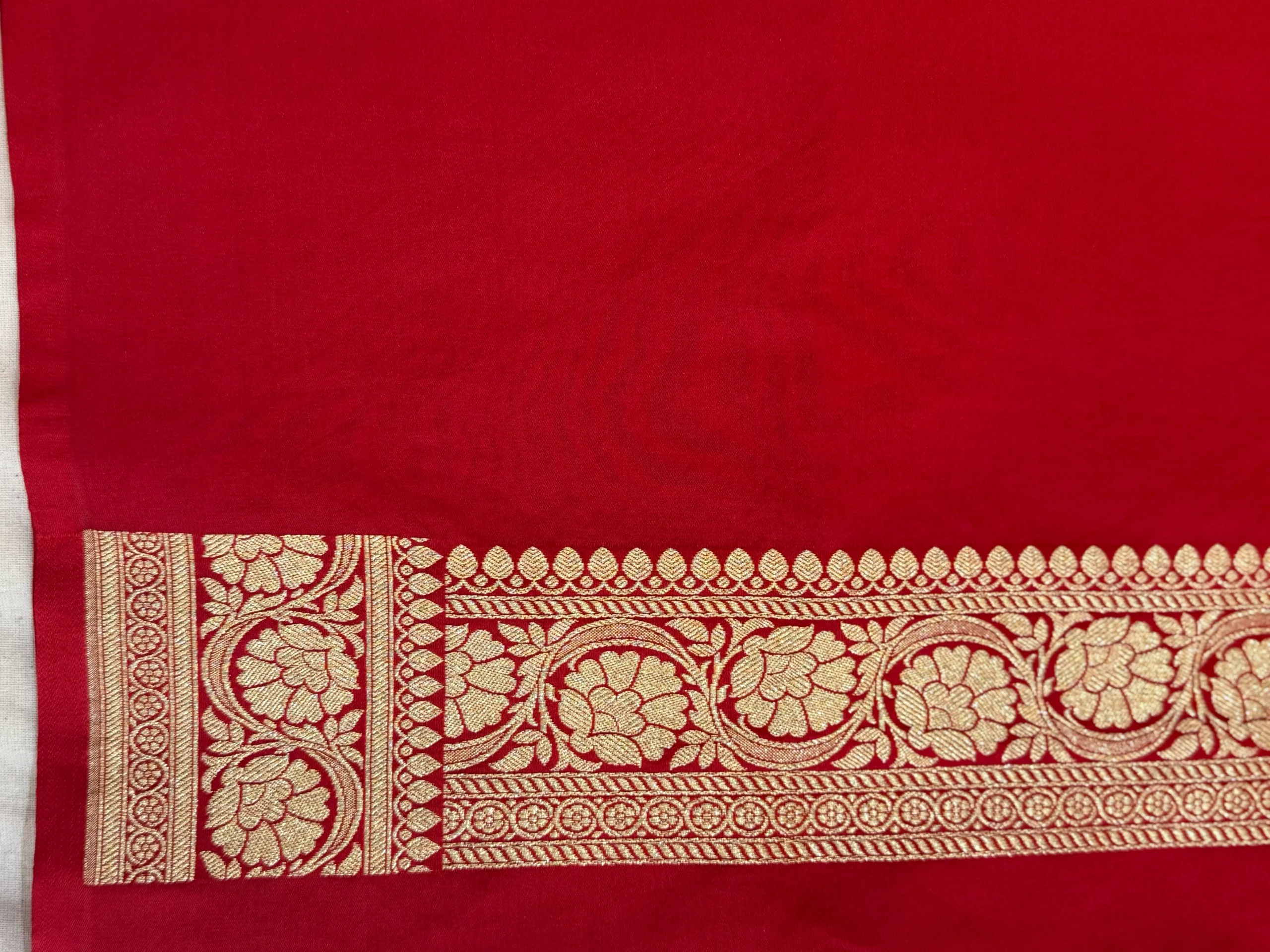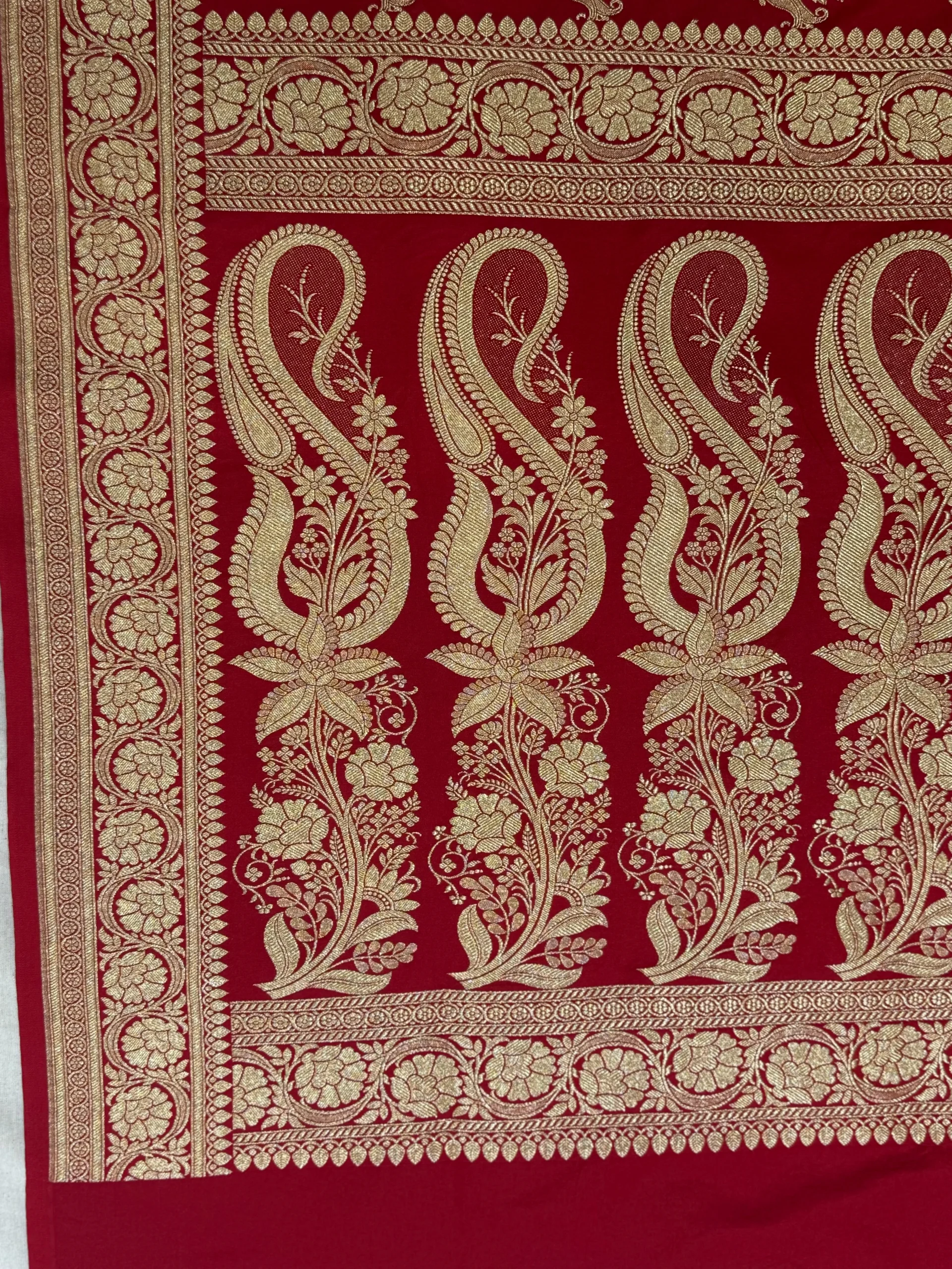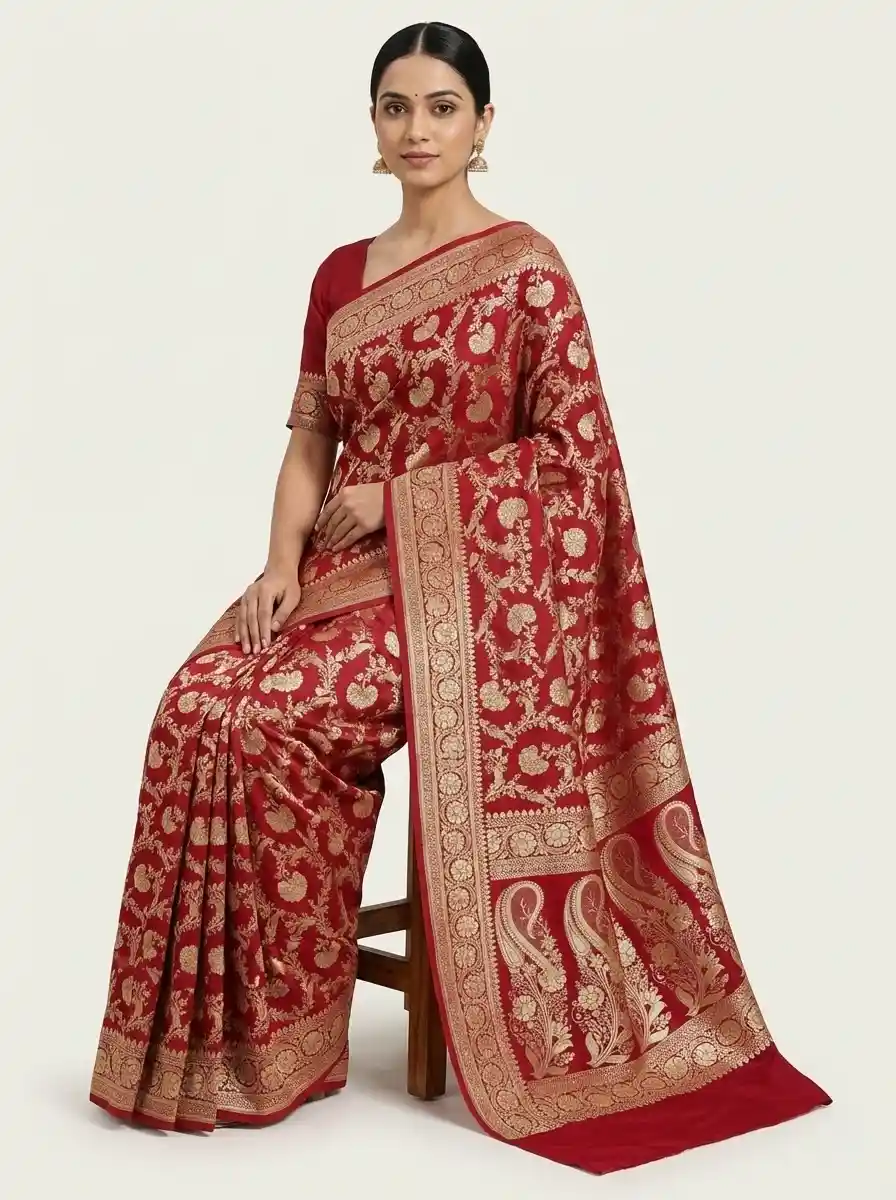Crimson Red Banarasi Silk Saree with Gold Zari Waves
