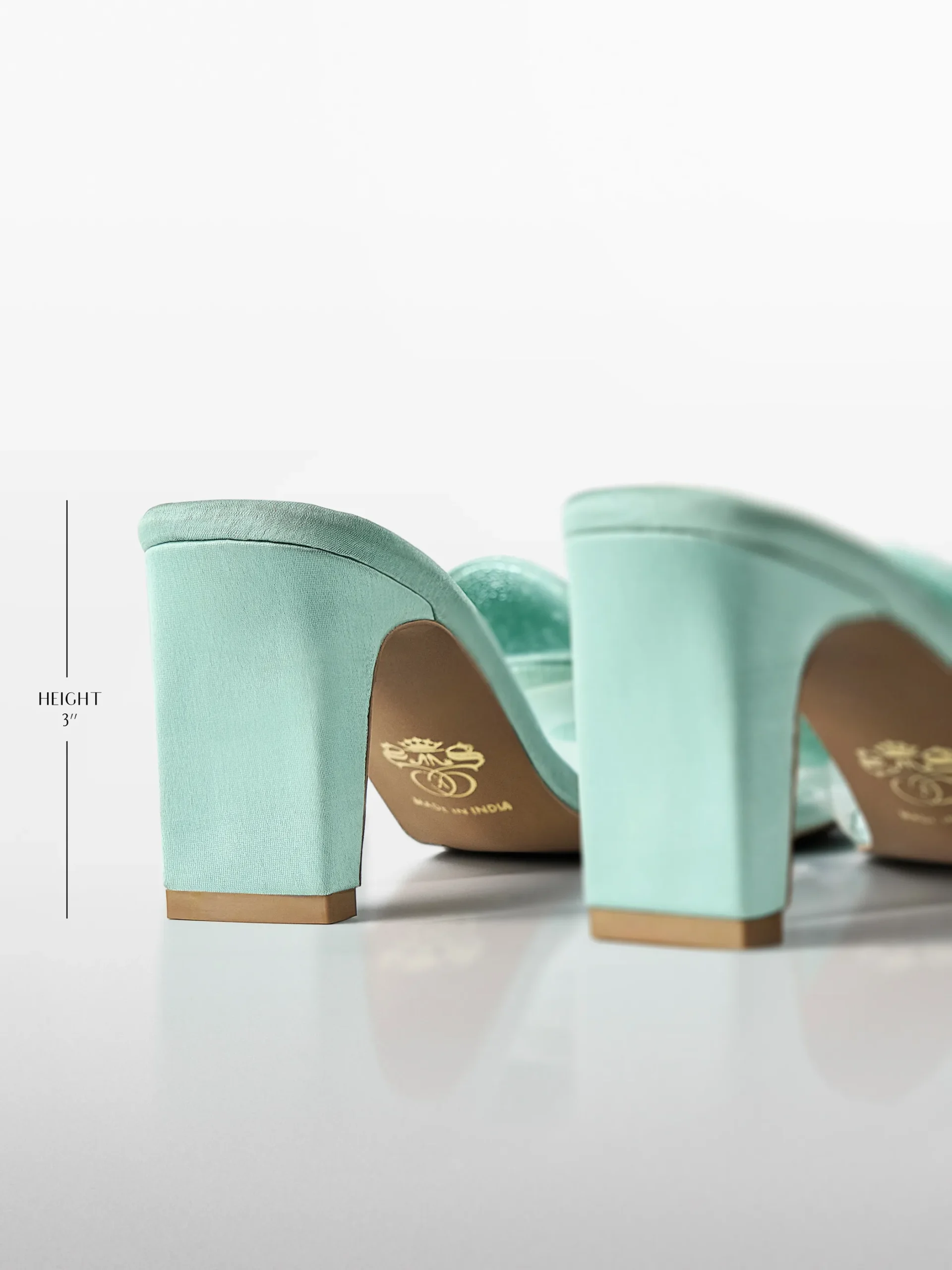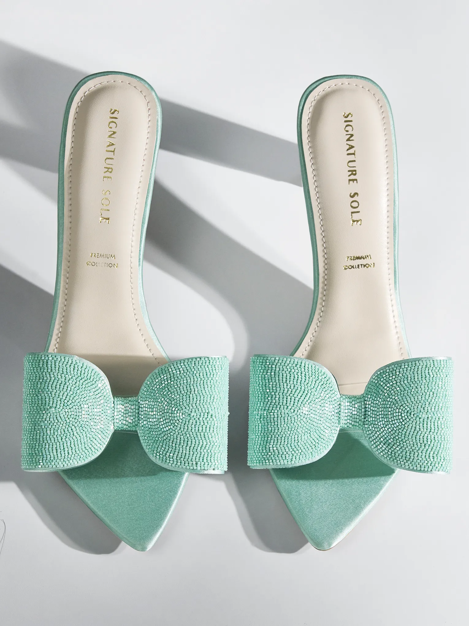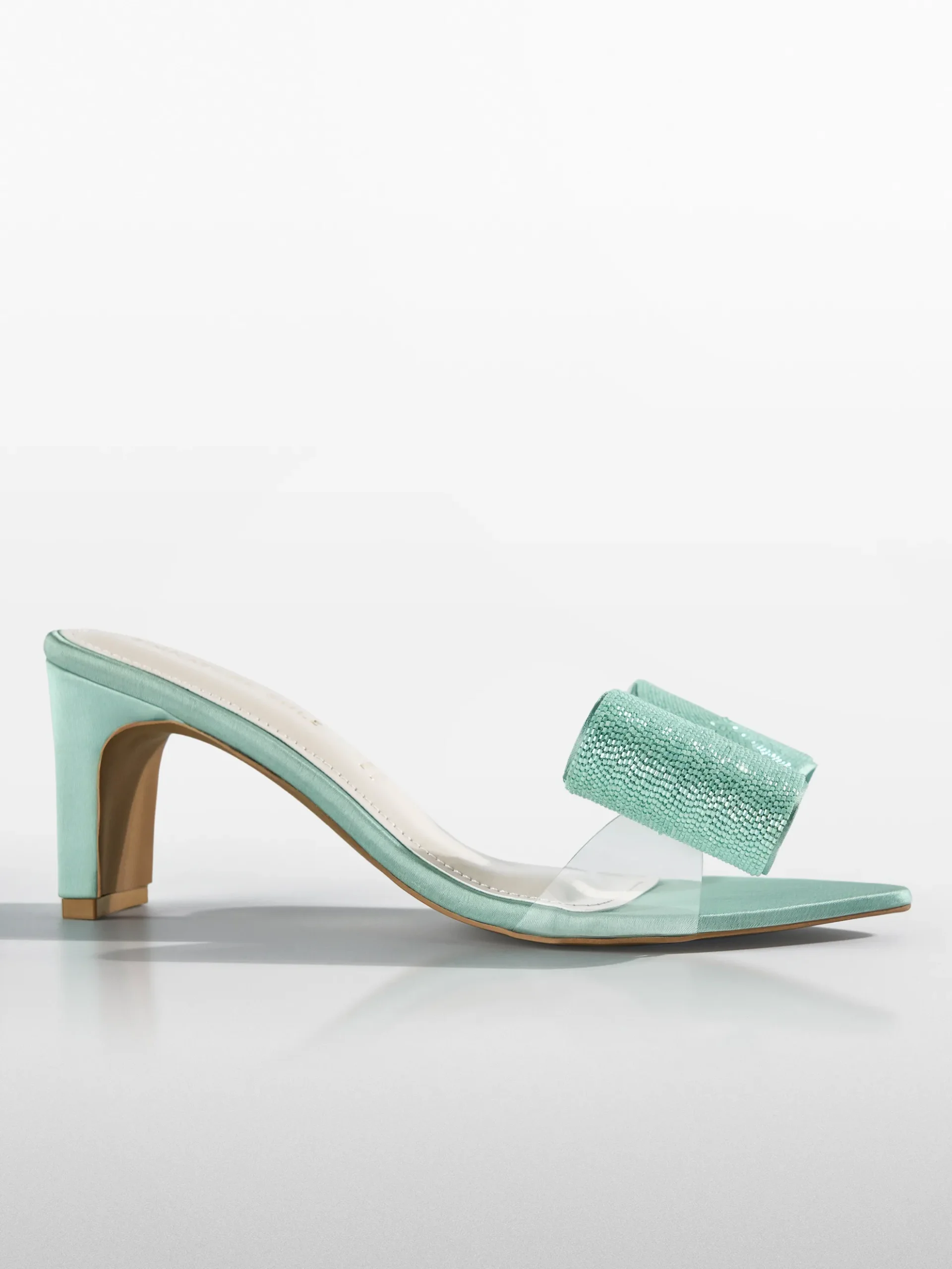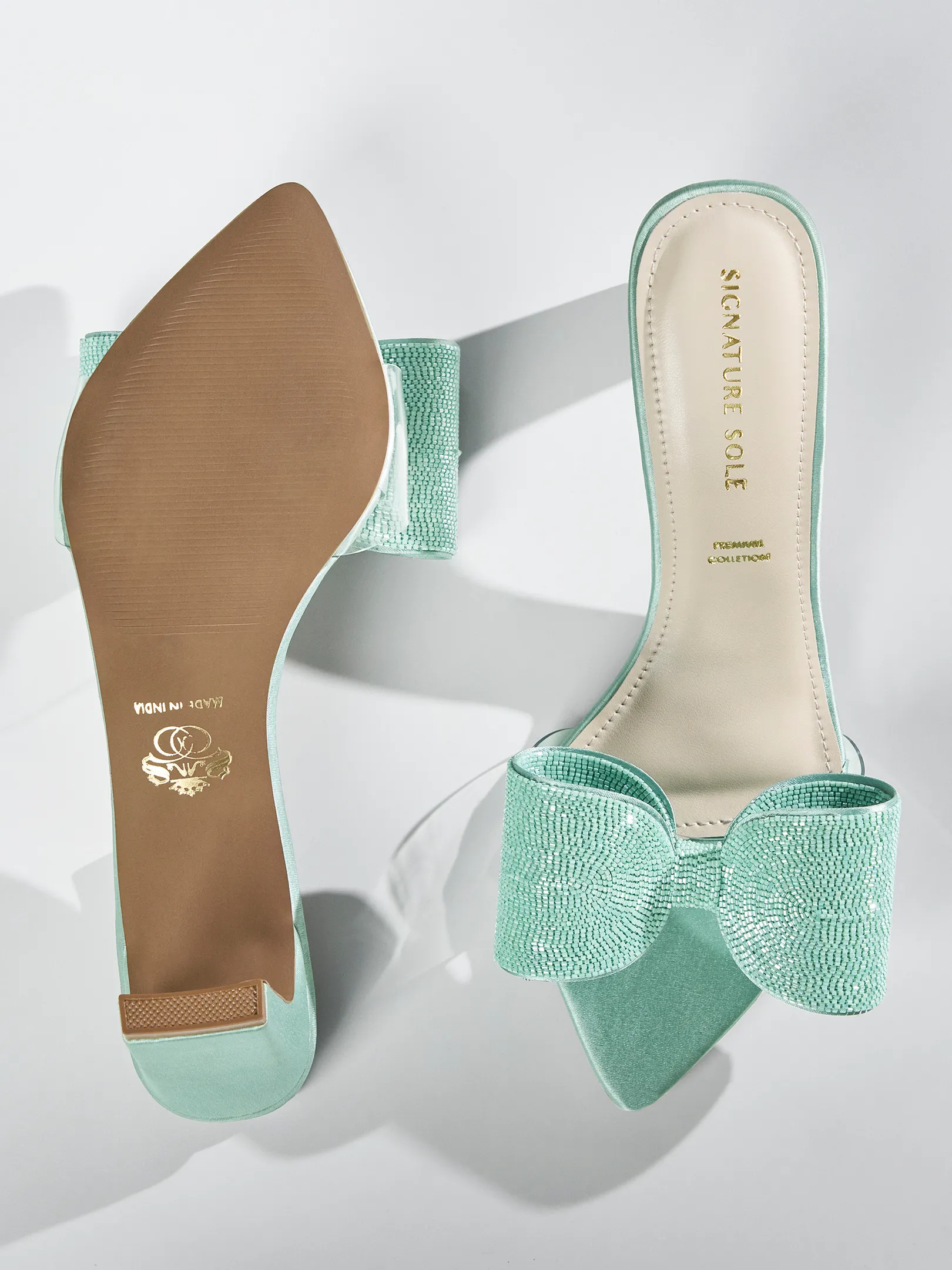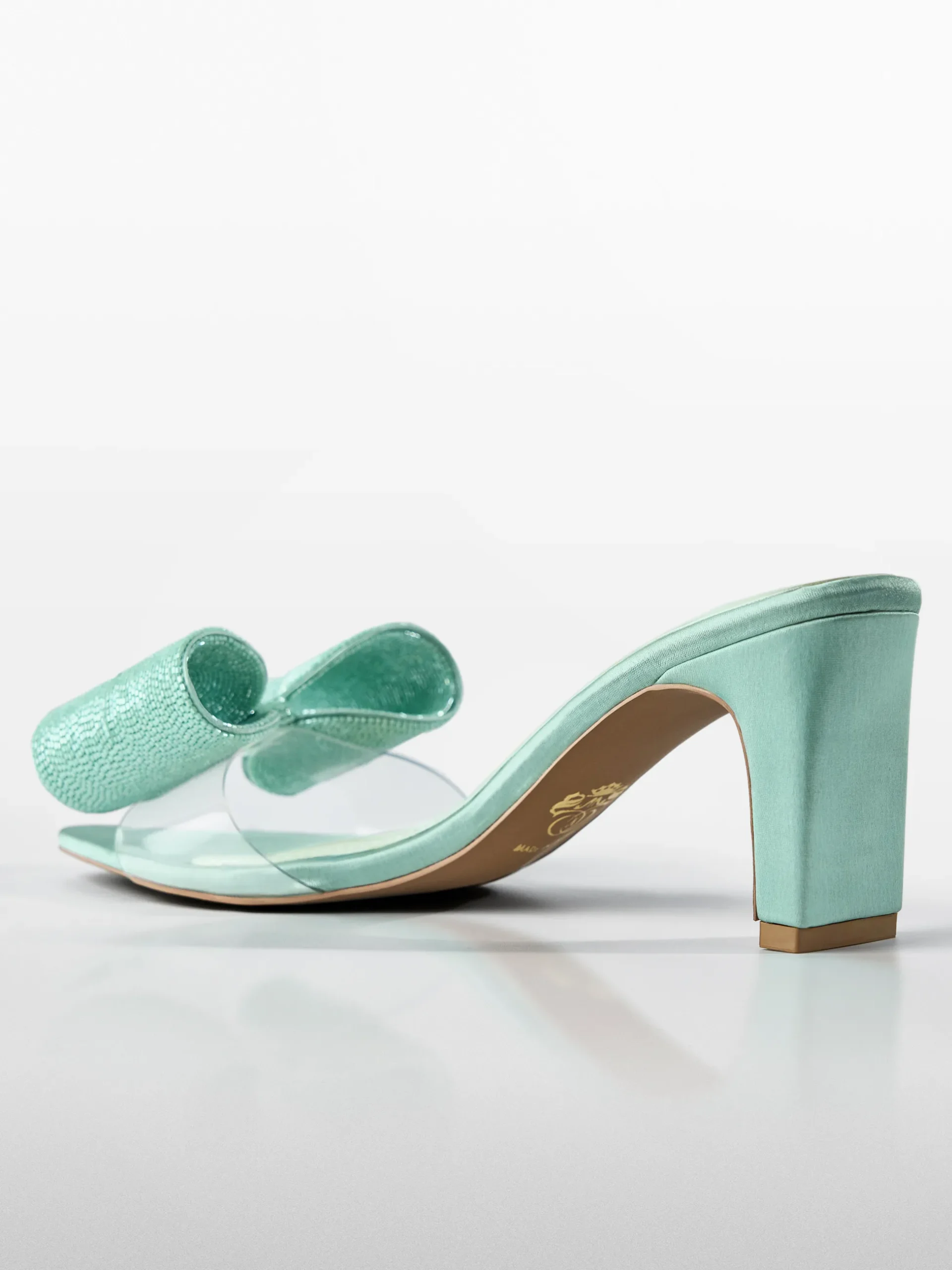 Mint Crystal Bow Transparent Kitten Heel – Heels for Women & Embellished Heels for Women