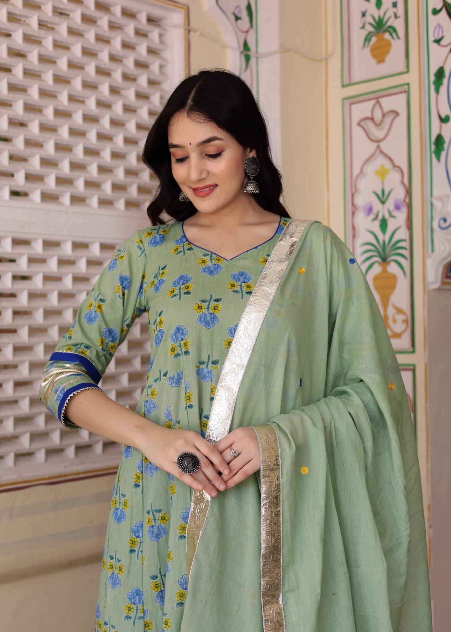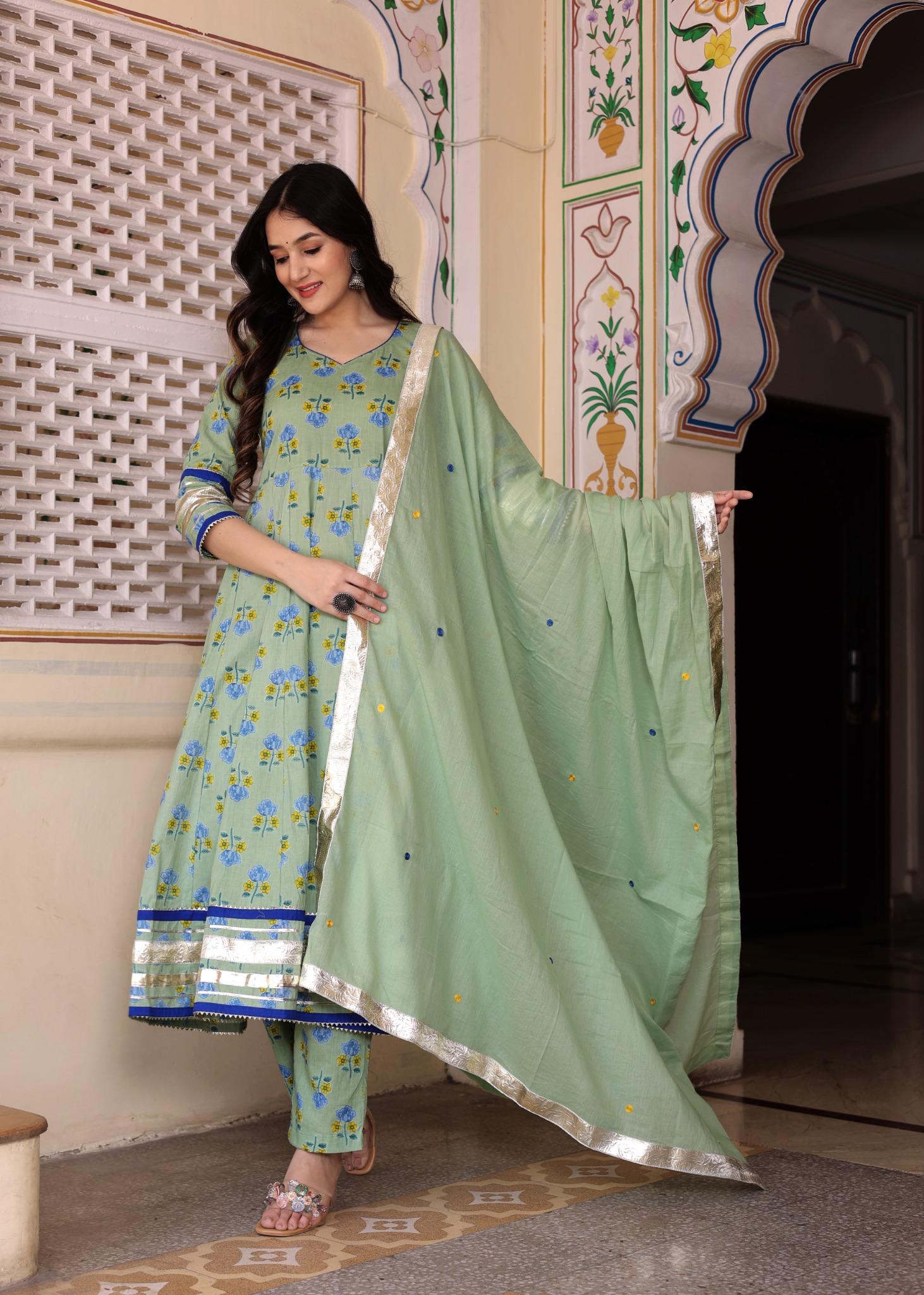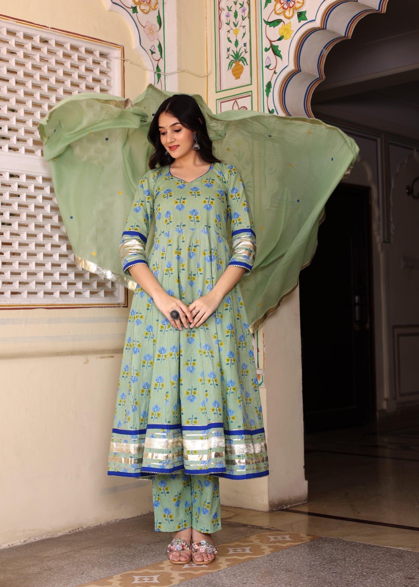 Mint Green Cotton Anarkali Set with Gota Work Detailing