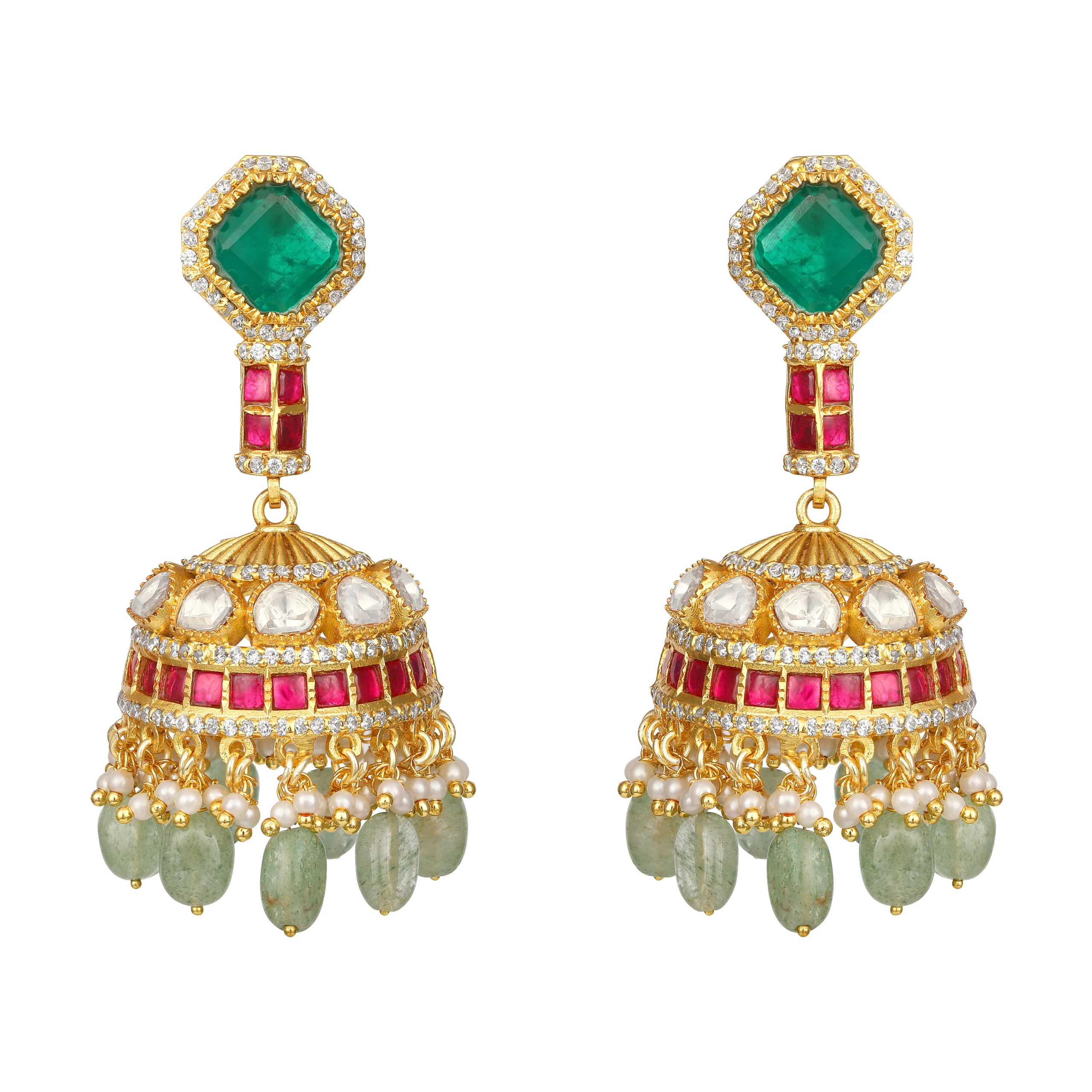 Make a regal statement by pairing this vibrant choker set with a silk saree, bridal lehenga, or embellished anarkali to enhance its rich green and cherry tones. For a contemporary celebration look, style it with an Indo-western drape or off-shoulder blouse to highlight the neckline.
