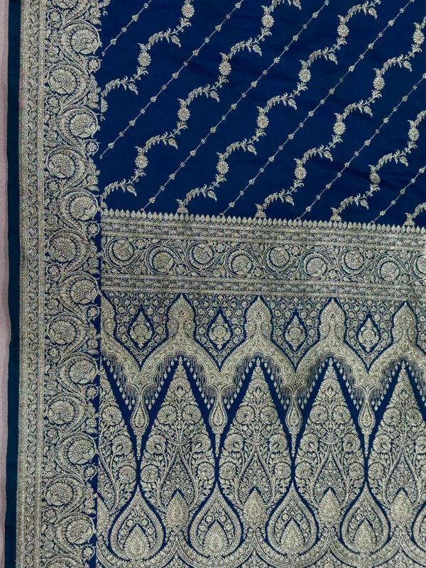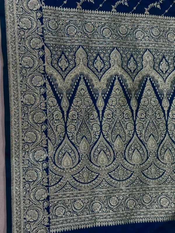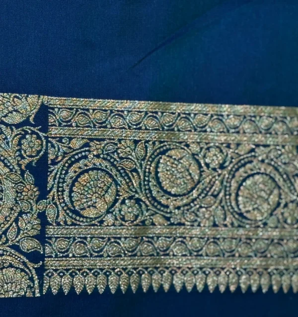 Navy Blue Handwoven Banarasi Mashroo Silk Saree