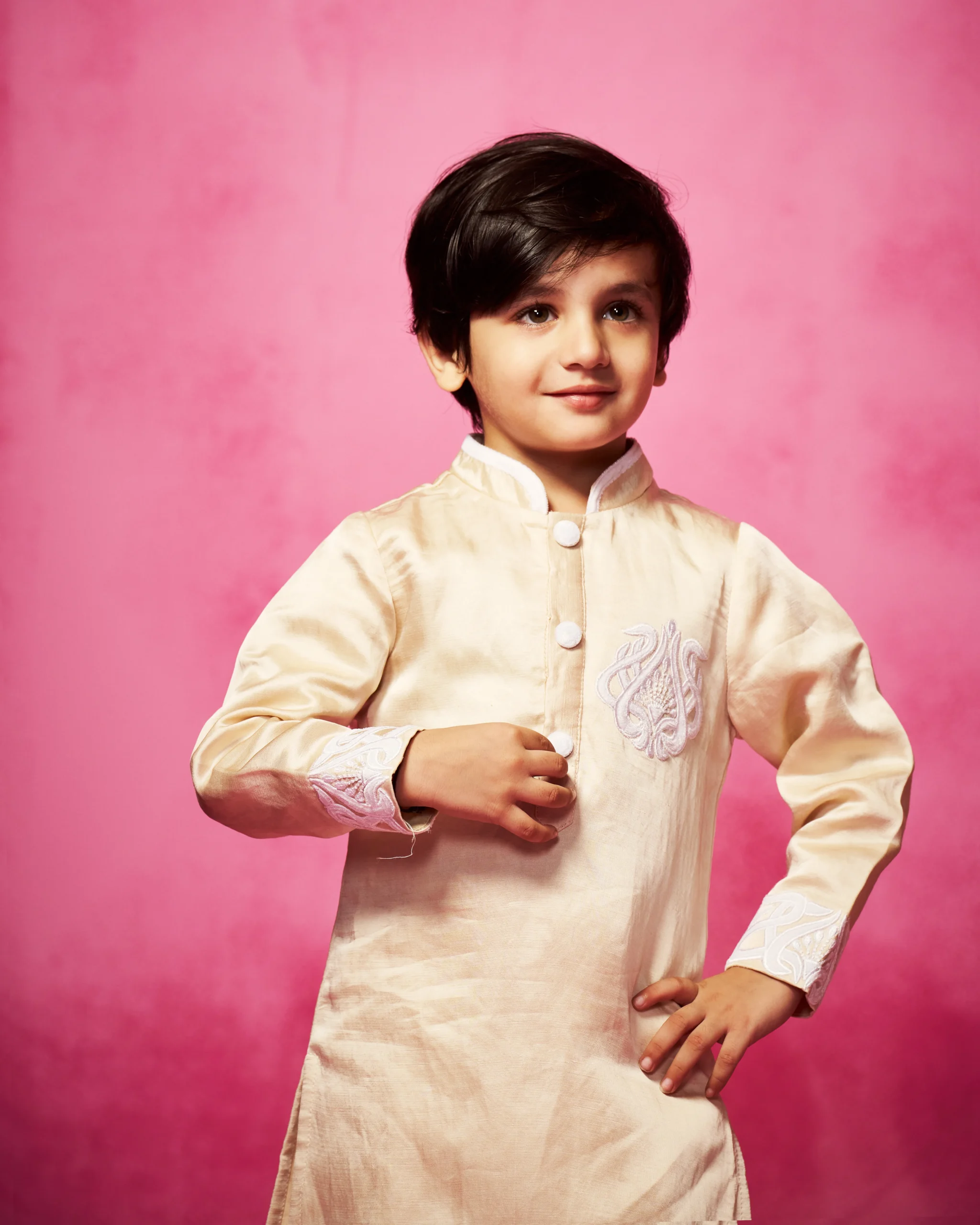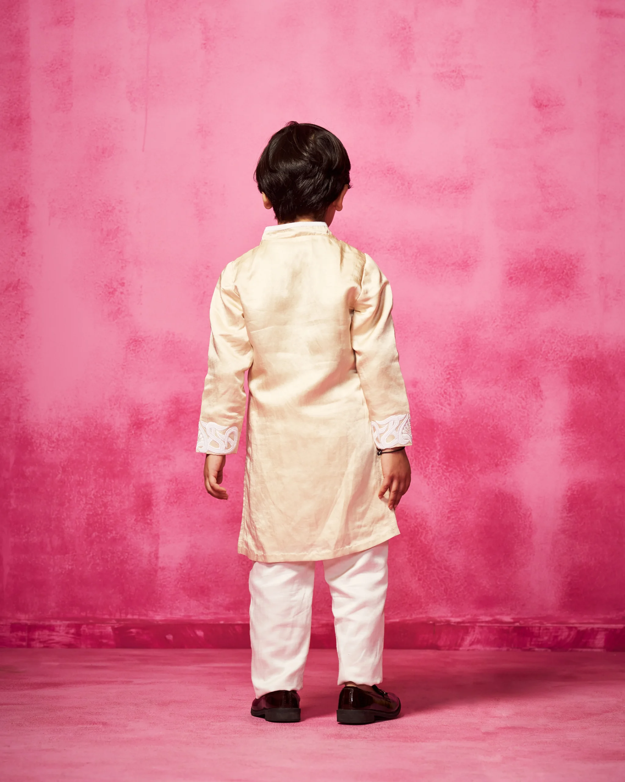 Style this nude kurta set with traditional mojris or classic loafers for a polished ethnic look. Ideal for weddings, festive gatherings, and celebrations, the outfit can also be layered with a contrasting Nehru jacket for added sophistication. Keep accessories minimal to highlight the elegant embroidery and refined silhouette.