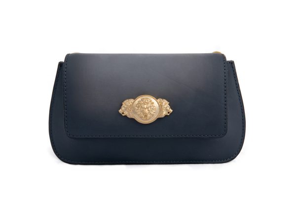 Golden Muslin black genuine leather structured handbag with envelope flap