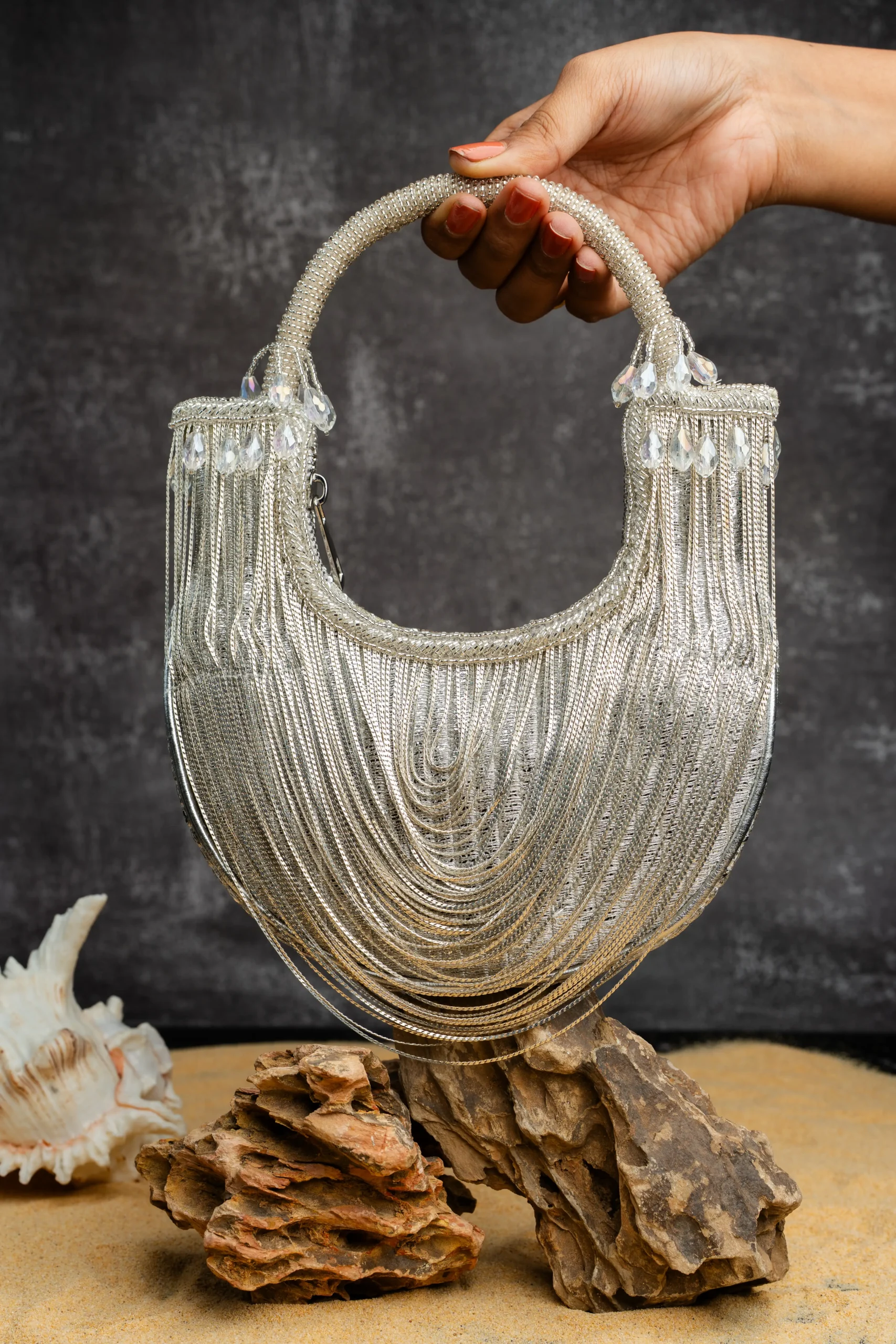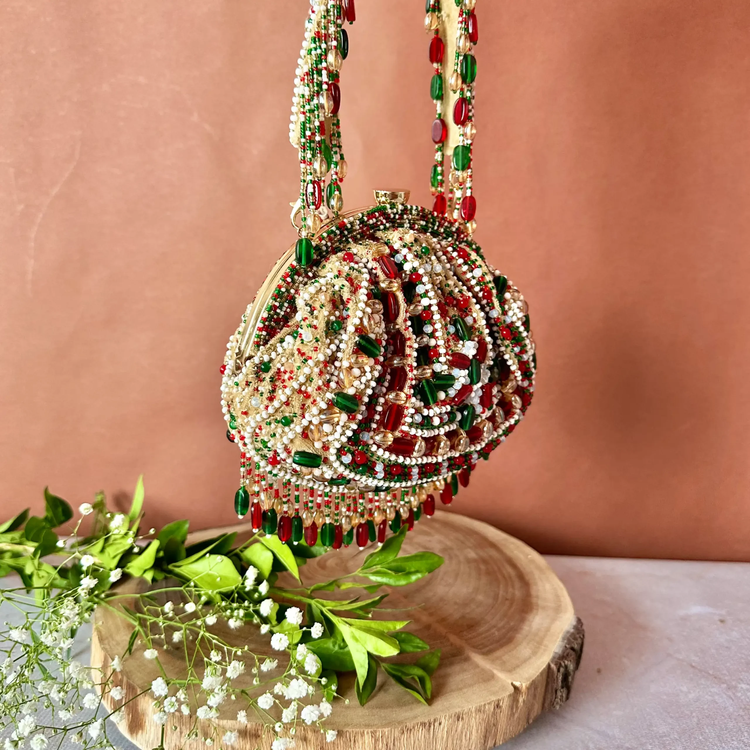 Style this sophisticated clutch with pastel lehengas, embroidered sarees, or contemporary Indo-western ensembles. The soft pastel beadwork adds a graceful sparkle, while the beaded handle enhances its charm, pairing beautifully with pearl jewellery and metallic heels for festive and celebratory events.