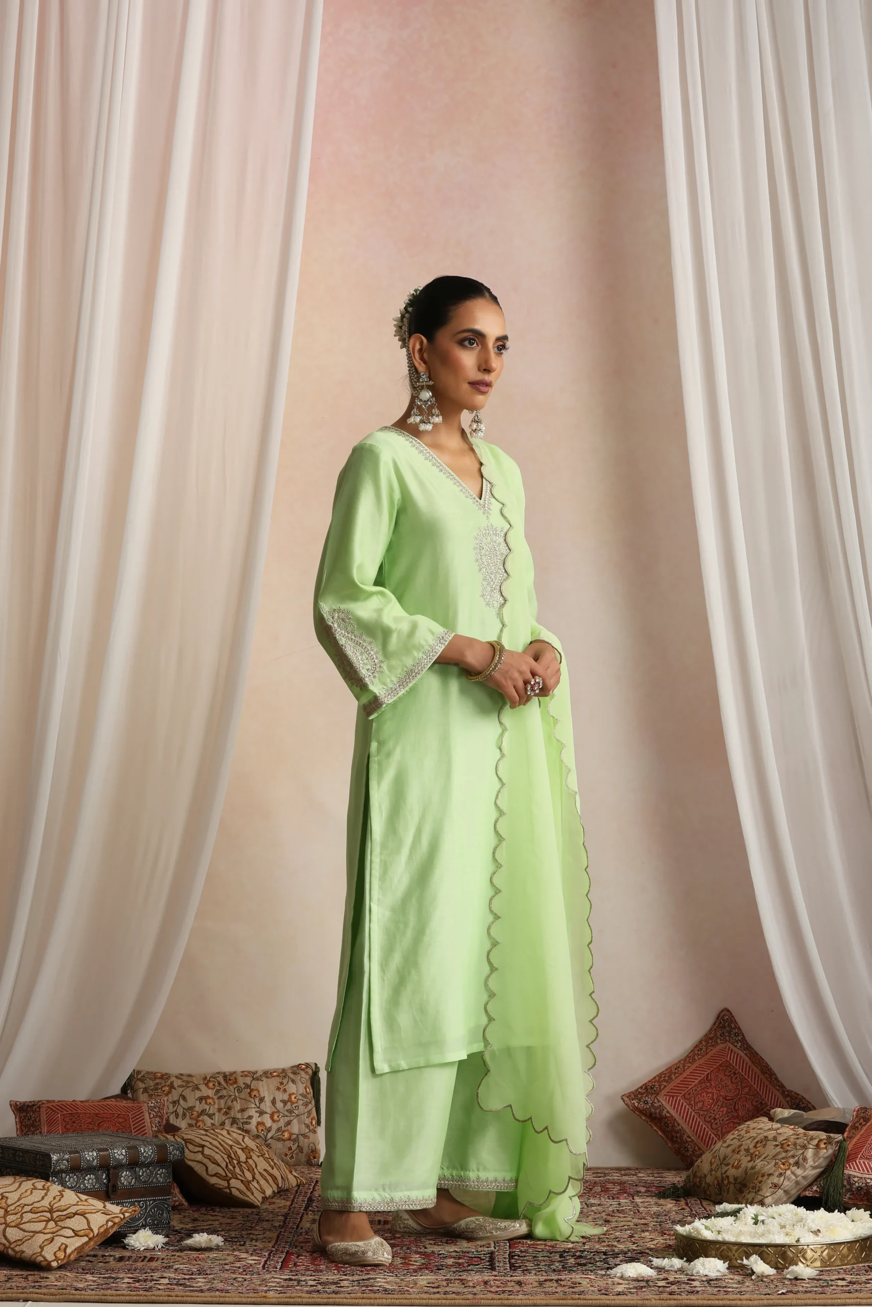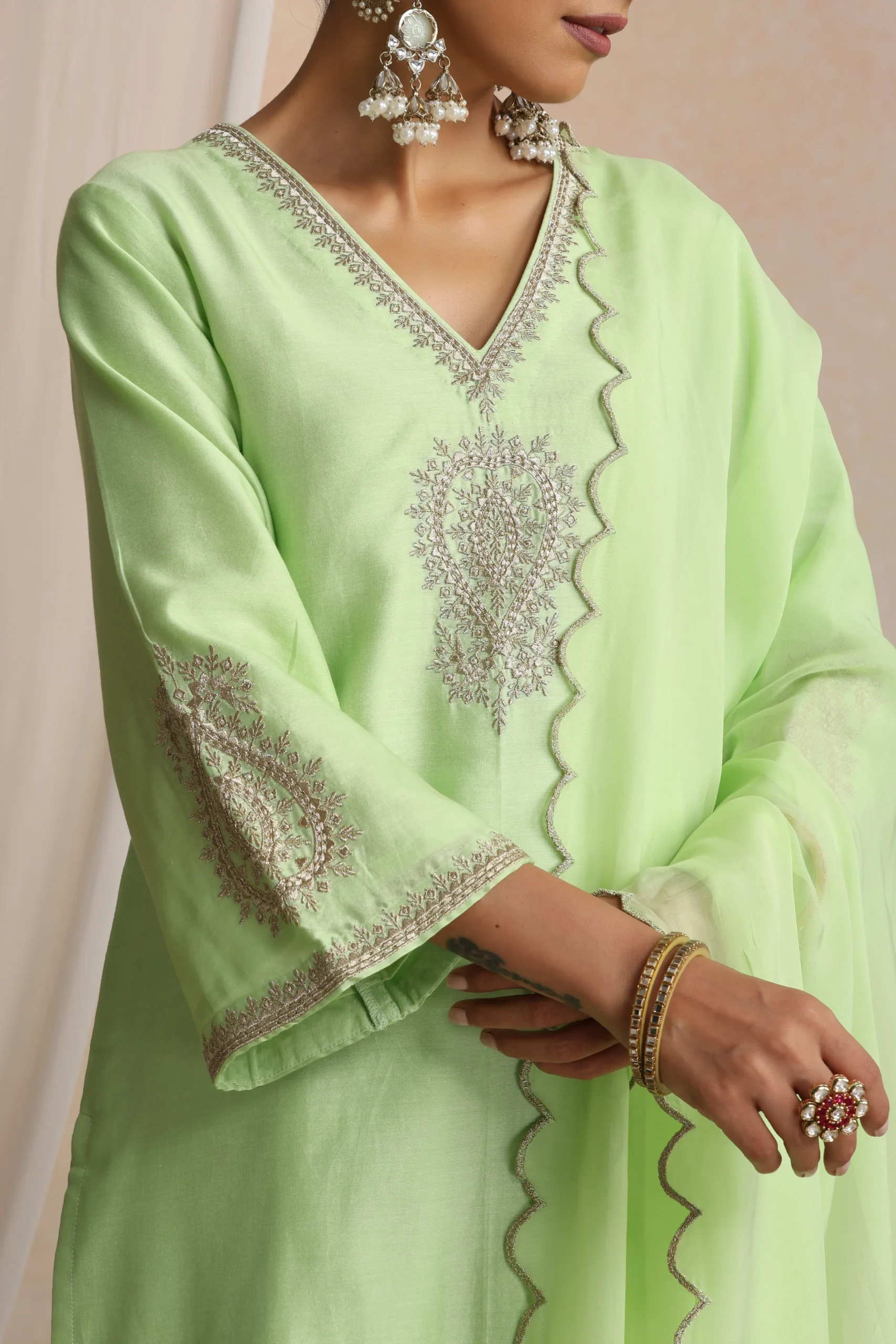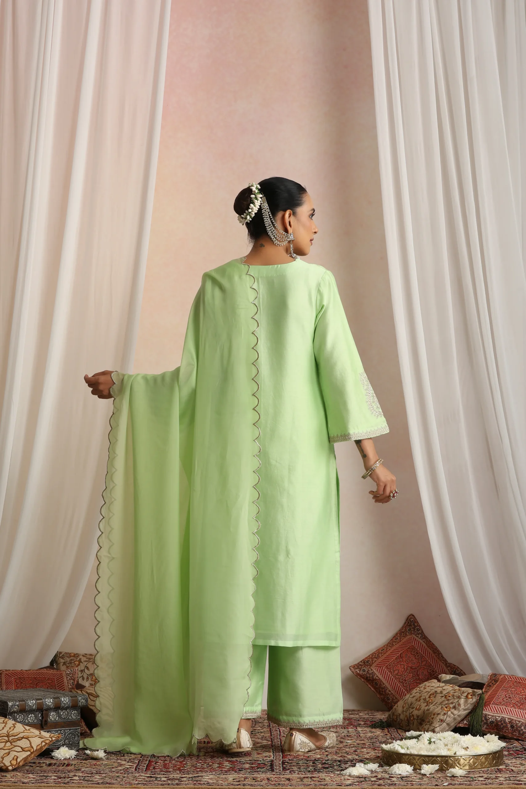 Pastel Green Embroidered Ethnic Co-ord Set with Dupatta