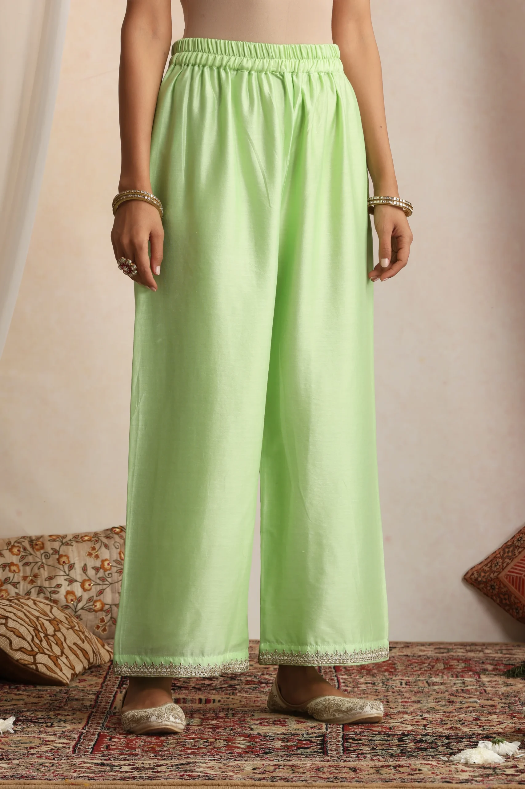 Style this pastel green kurta set with pearl, silver, or minimal stone jewellery to complement its soft and sophisticated tone. Pair it with nude, beige, or pastel-toned heels or traditional juttis for a balanced ethnic look.