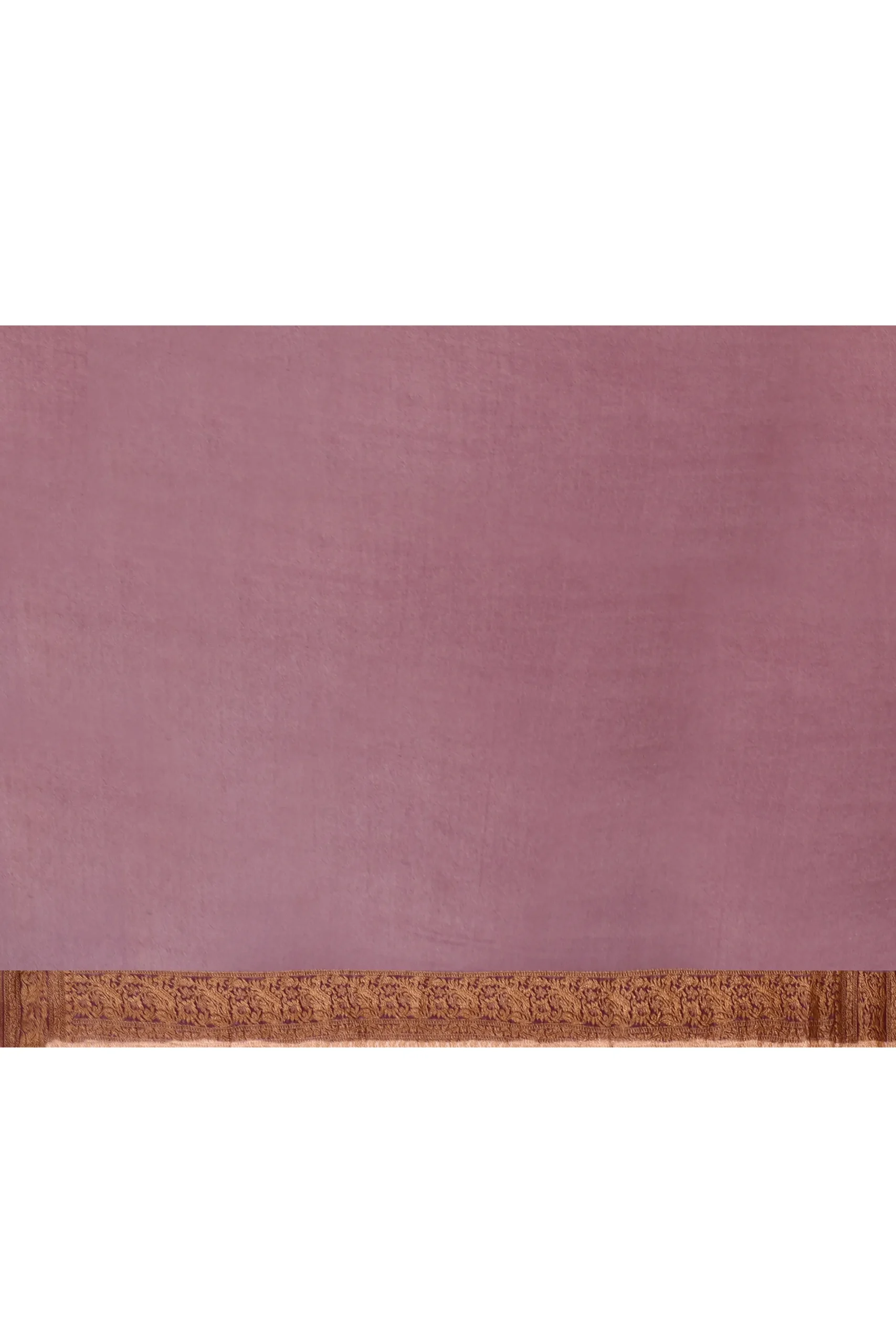 Peach Silk Saree with Gold Zari Jaal and Wine Brown Border