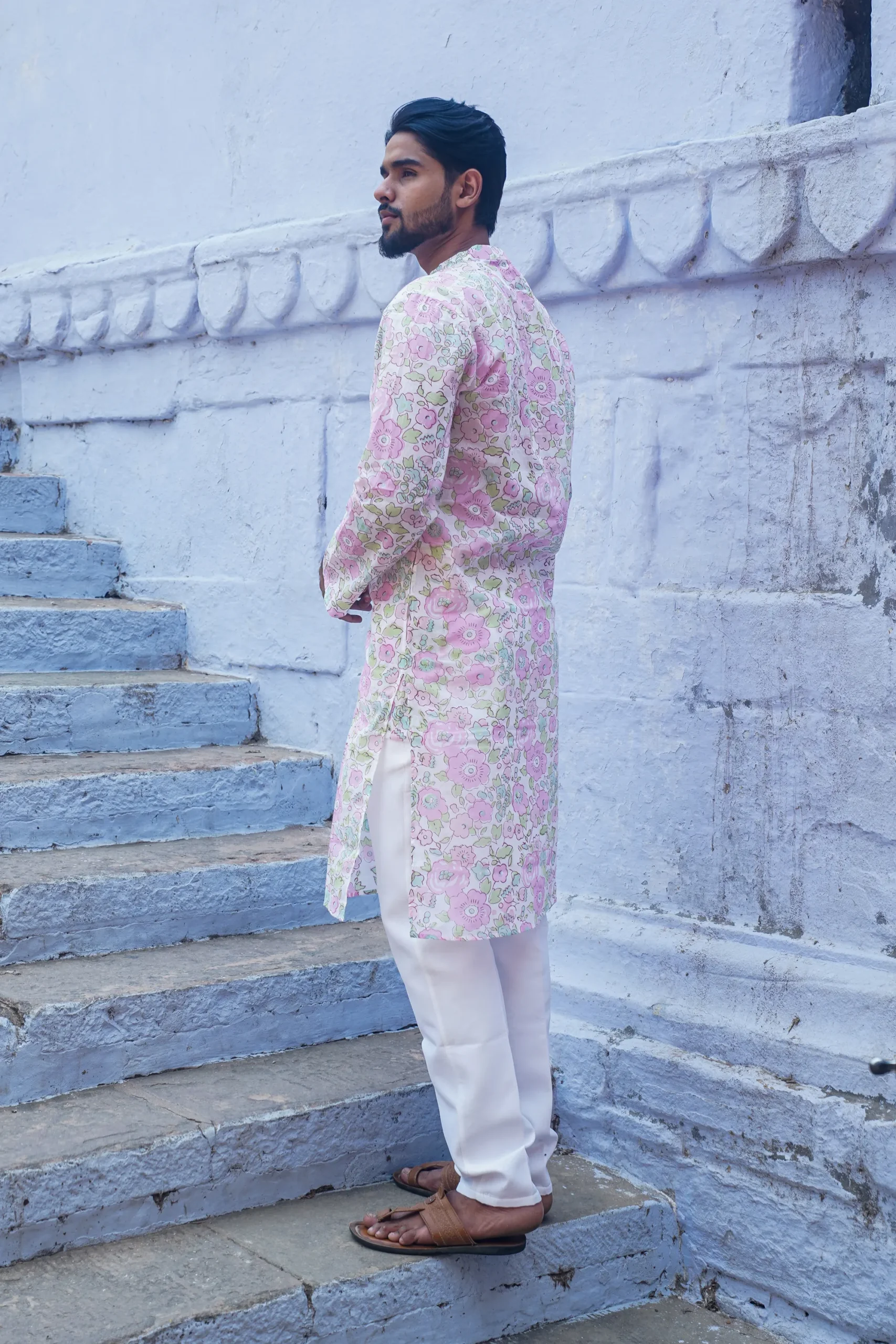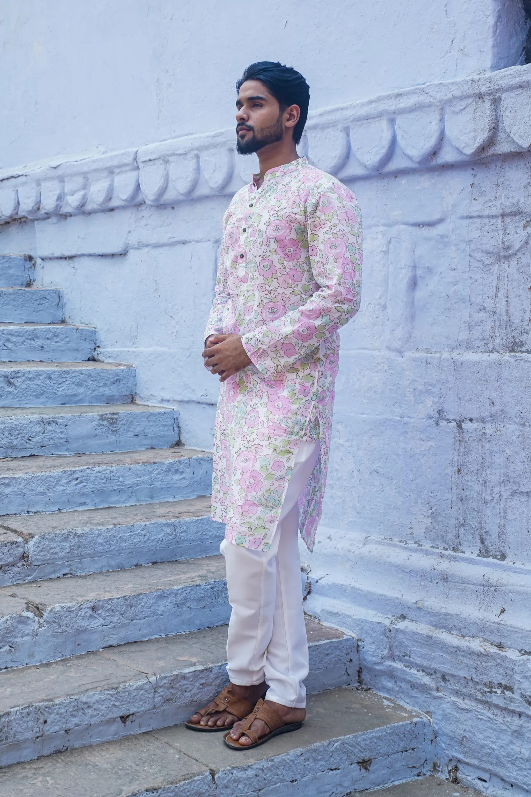 Introducing the Petal Grace Floral Printed Cotton Kurta Set, a perfect harmony of elegance and comfort. Crafted from breathable cotton and adorned with graceful floral prints, this refined ensemble features a sophisticated mandarin collar and functional side pockets. Designed for effortless style, it is versatile enough for festive gatherings, casual outings, and everyday elegance, offering timeless charm with a modern touch.