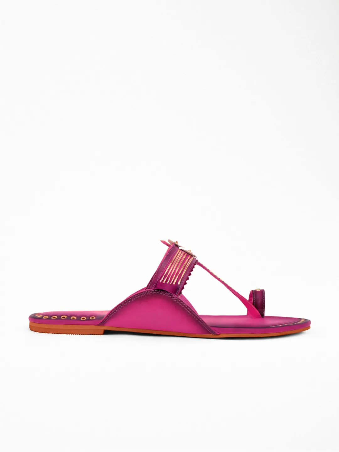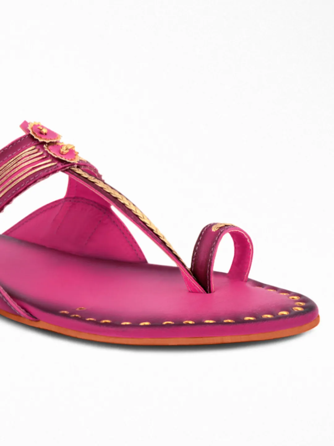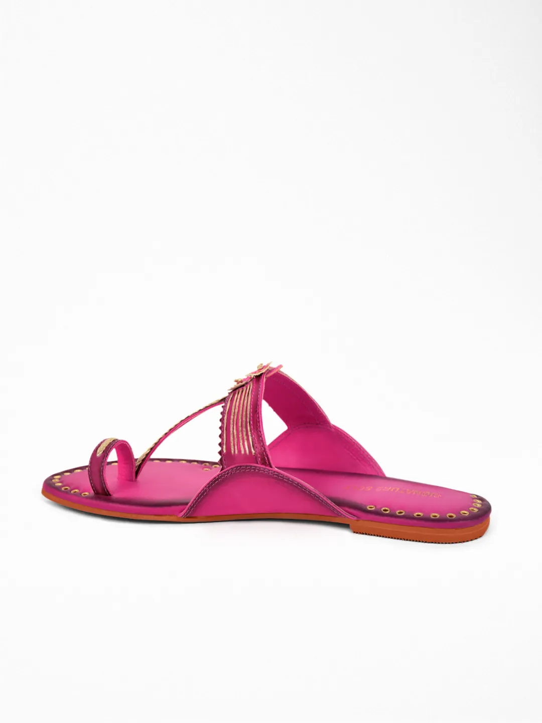 Pink Gold Ethnic Flat Sandal – Kolhapuri Sandals & Ethnic Footwear for Women