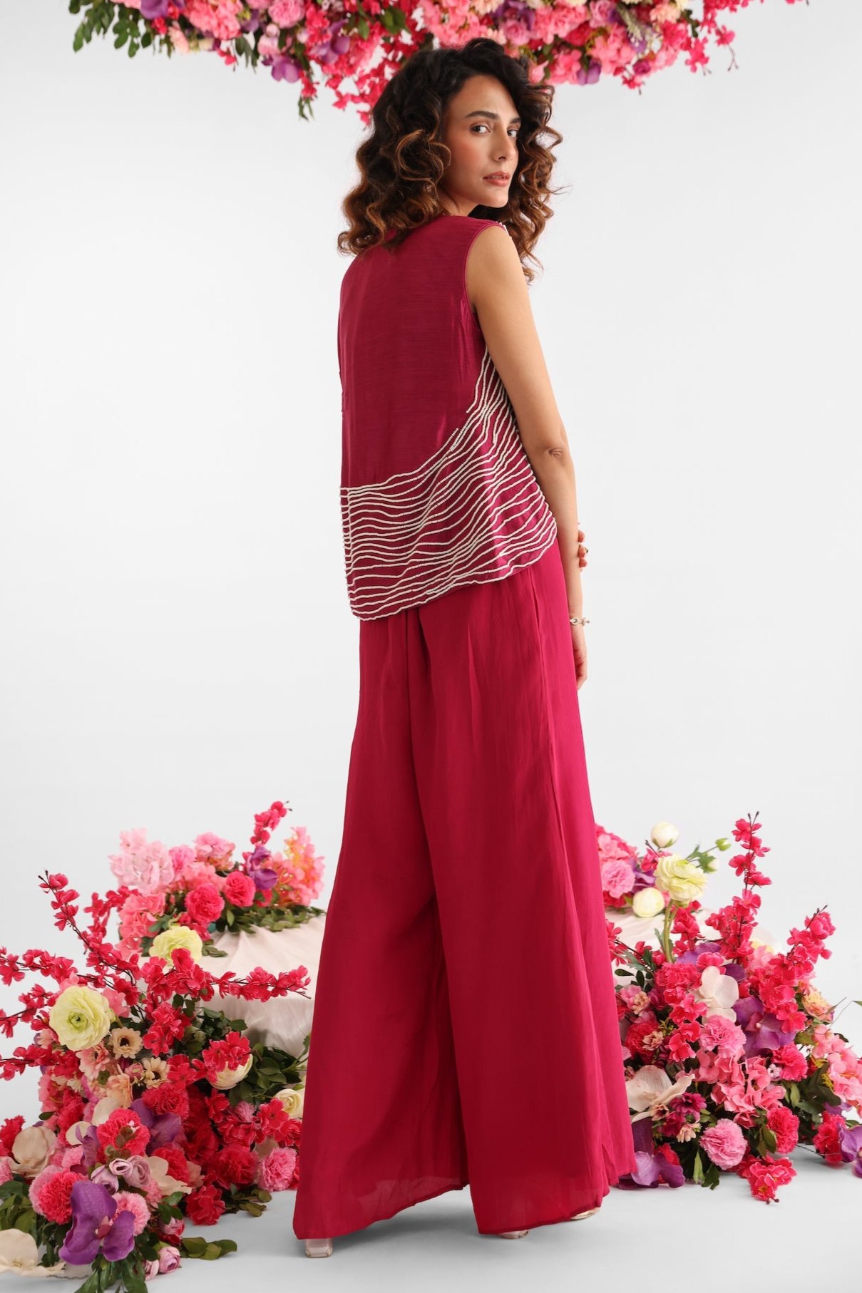 Dive into a world of elegance with our Pink Pearl Pathway ensemble from the ‘Eves Eden’s collection. Adorned with delicate white pearl embroidery, the jacket traces curvy lines, guiding you through a garden of dreams. Paired with matching pants and a bustier, this set embodies sophistication and grace in every stitch.