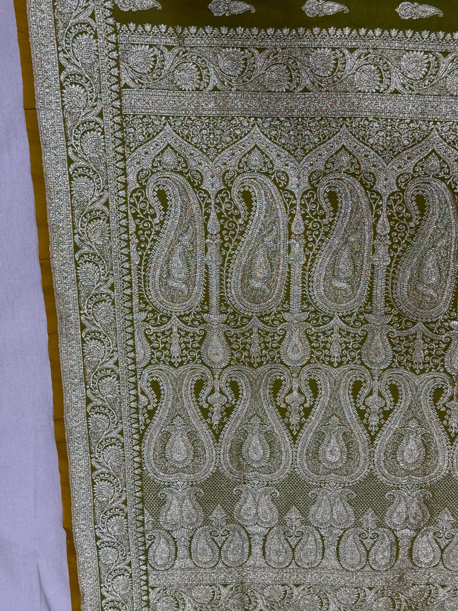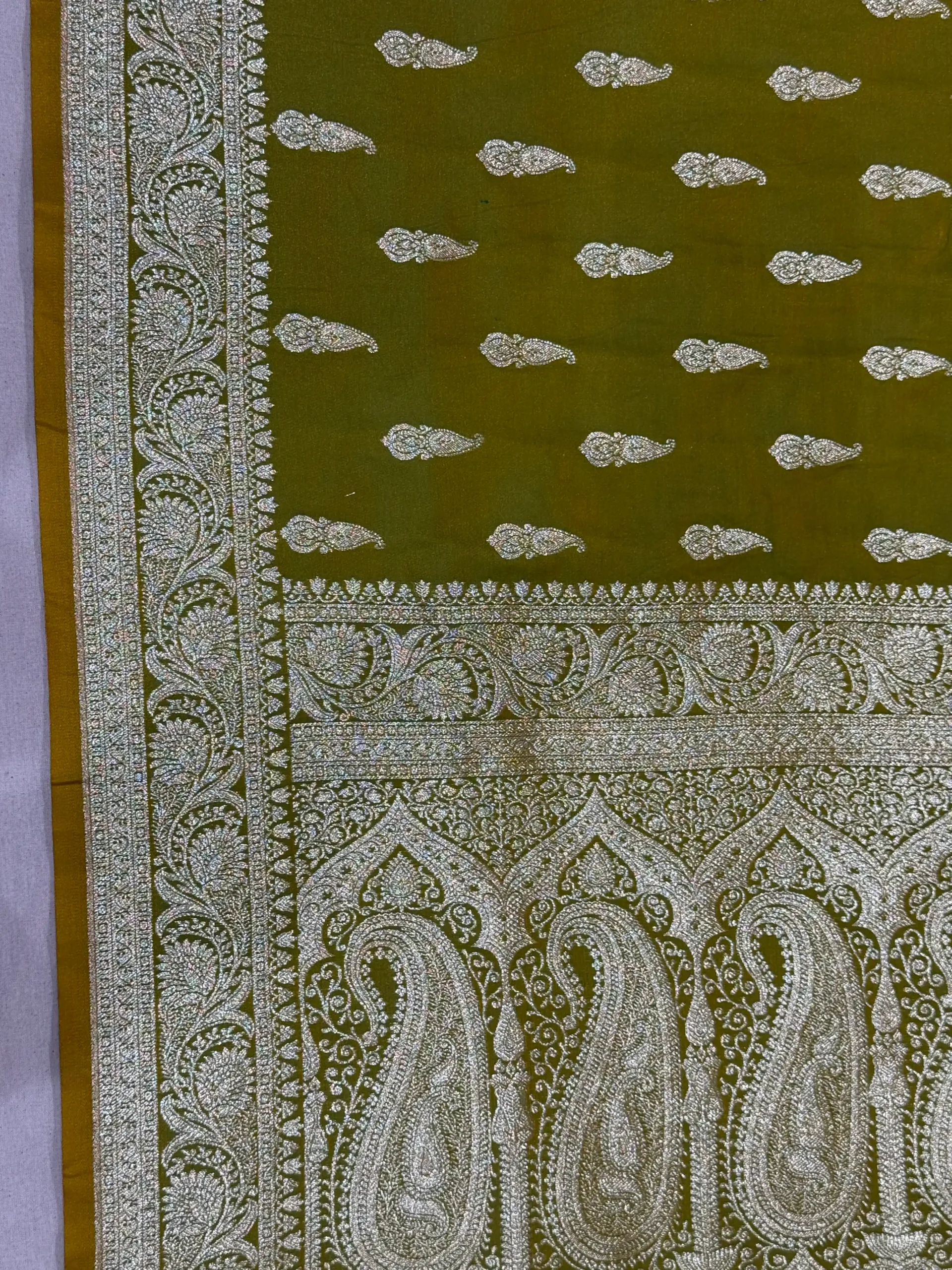 Dark Bottle Green Banarasi Silk Saree with Gold Zari Jaal & Rich Palla