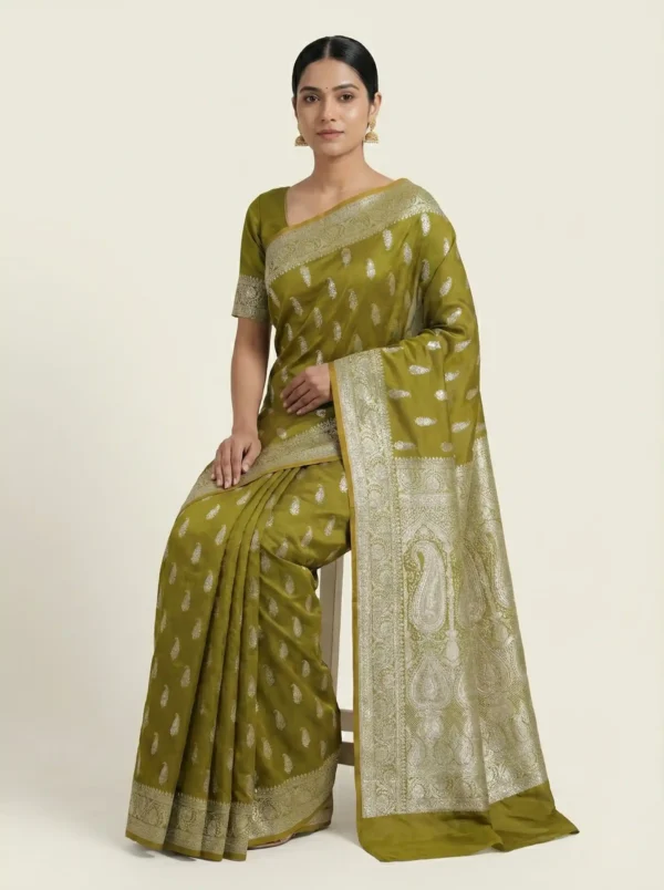 Pista Green Mashroo Silk Handwoven Banarasi Saree