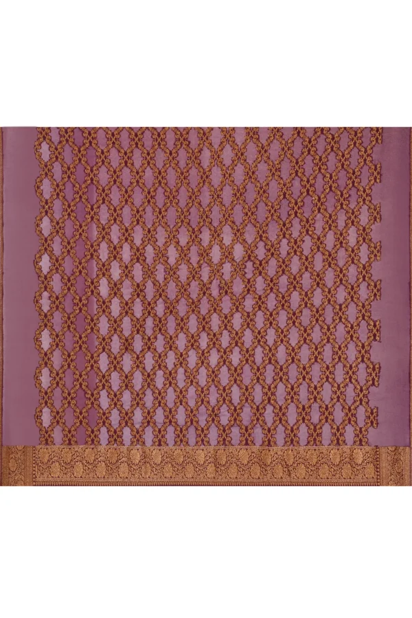 Plum Purple Silk Saree with Floral Prints & Gold Zari Buti