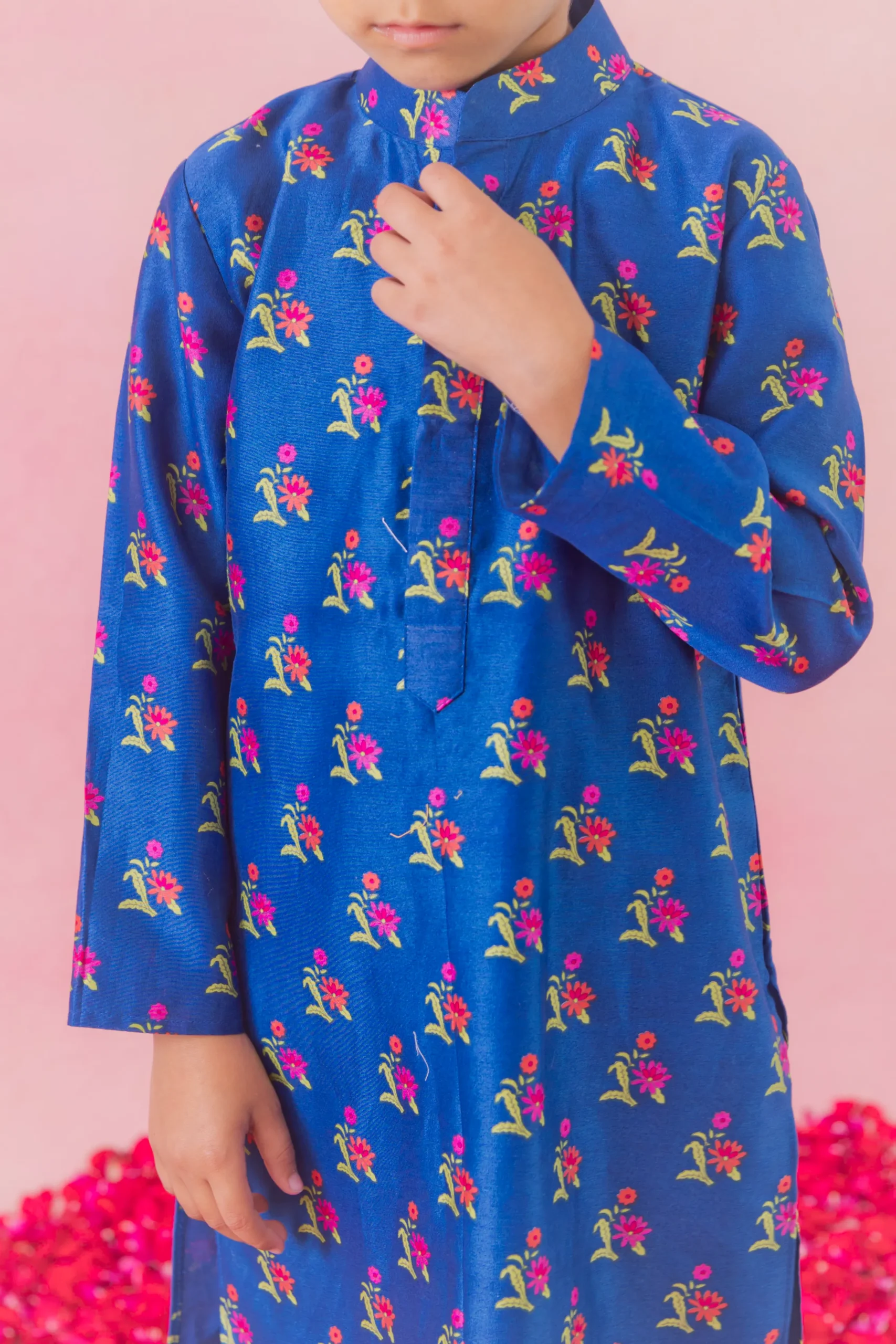 Printed Chanderi Kurta Set with Cotton Lycra Pants for Boys