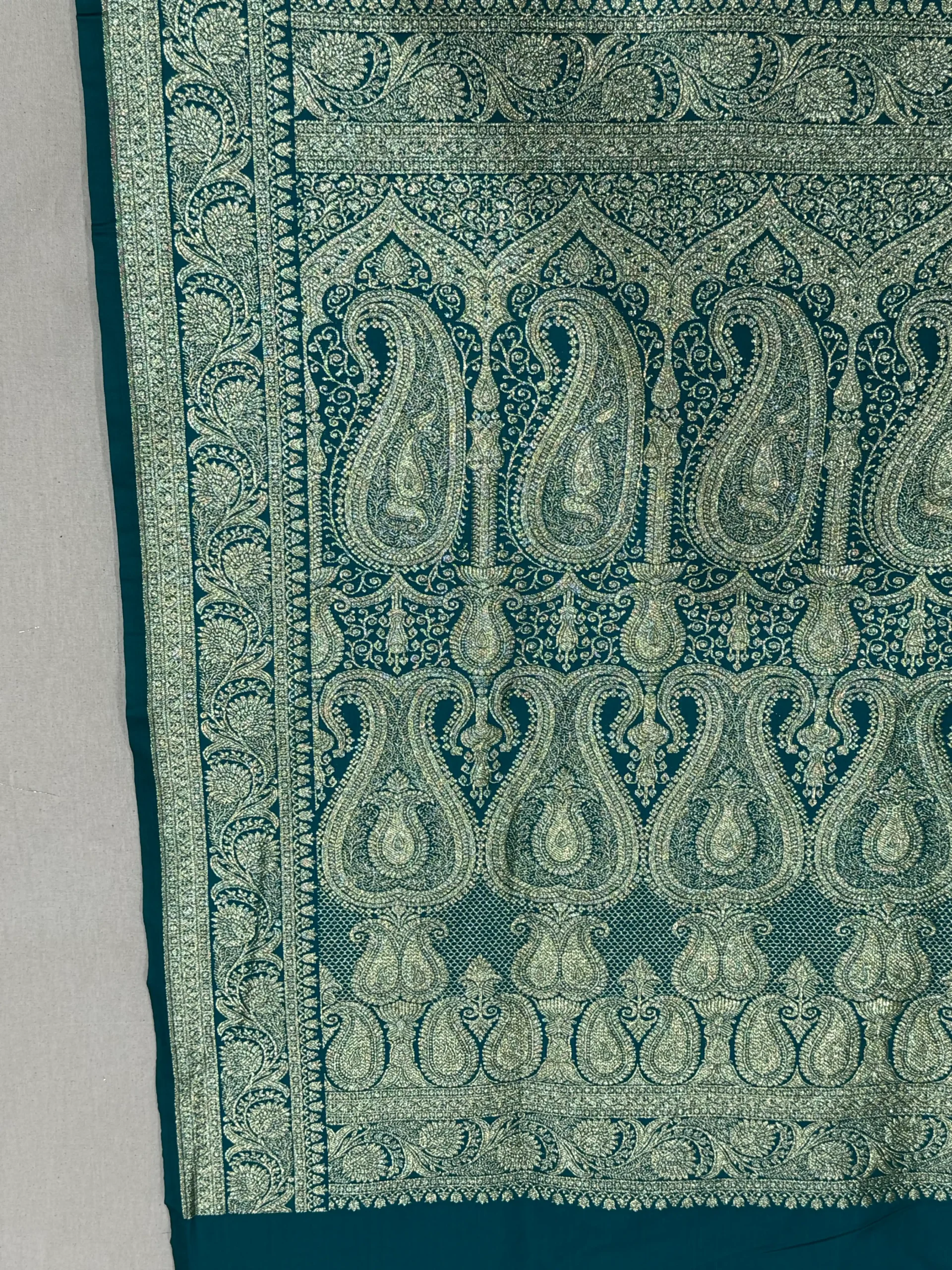 Dark Bottle Green Banarasi Silk Saree with Gold Zari Jaal & Rich Palla