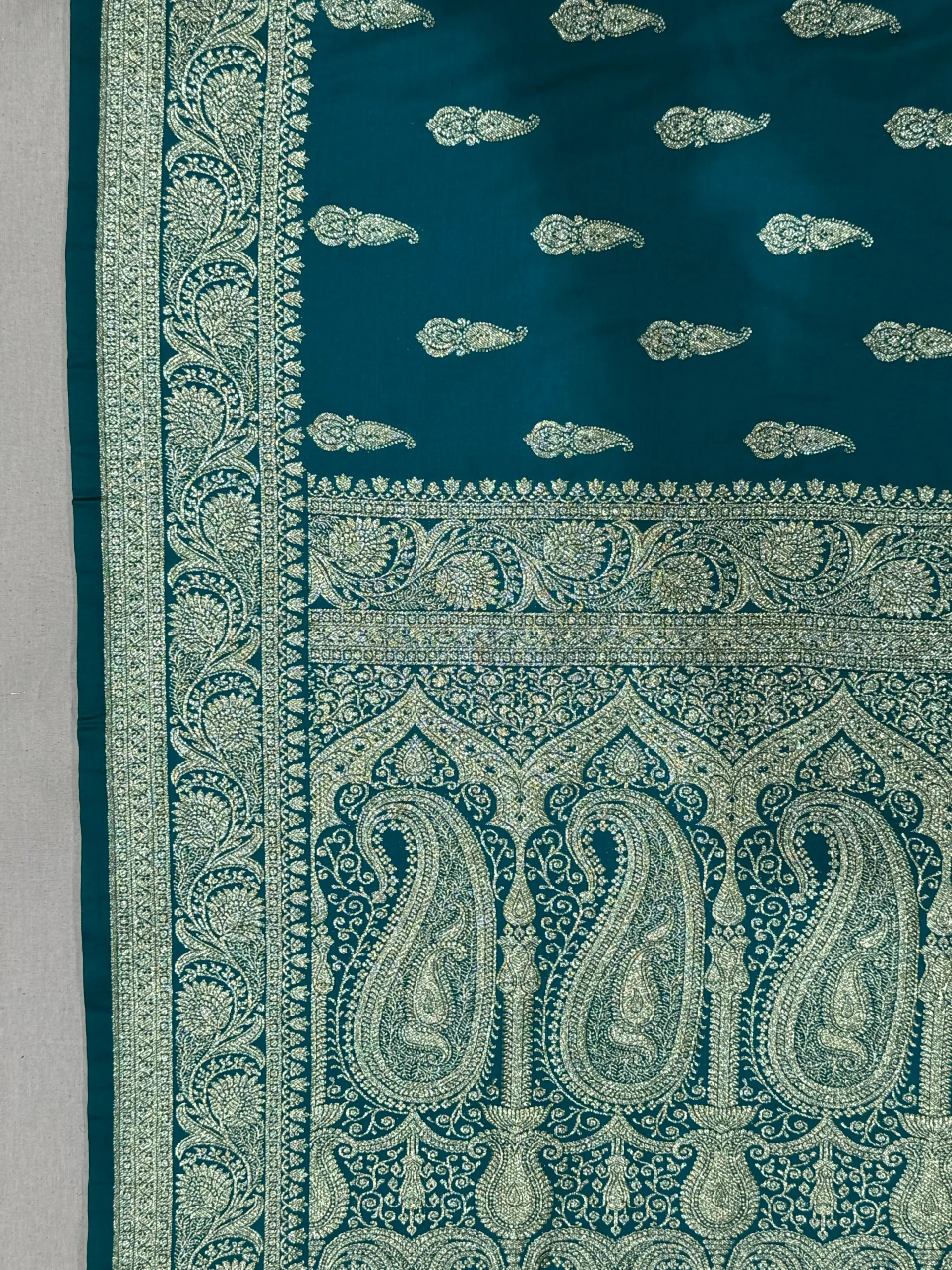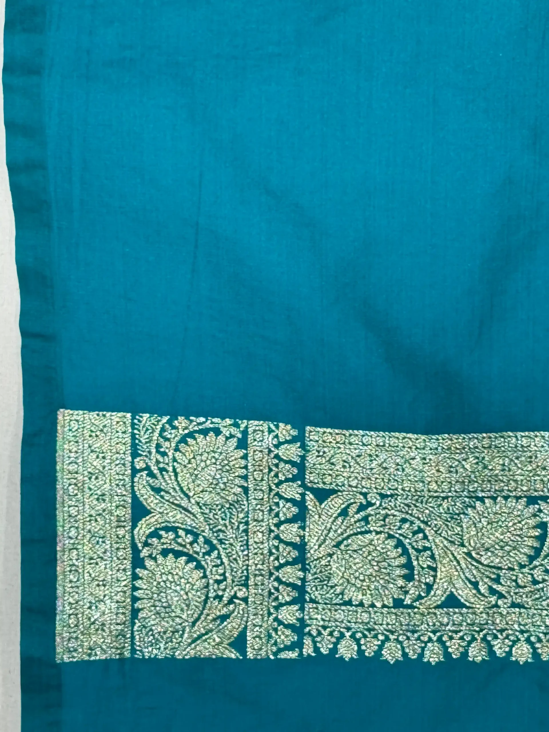 Rama Teal Handwoven Silk Saree with Gold Zari Work