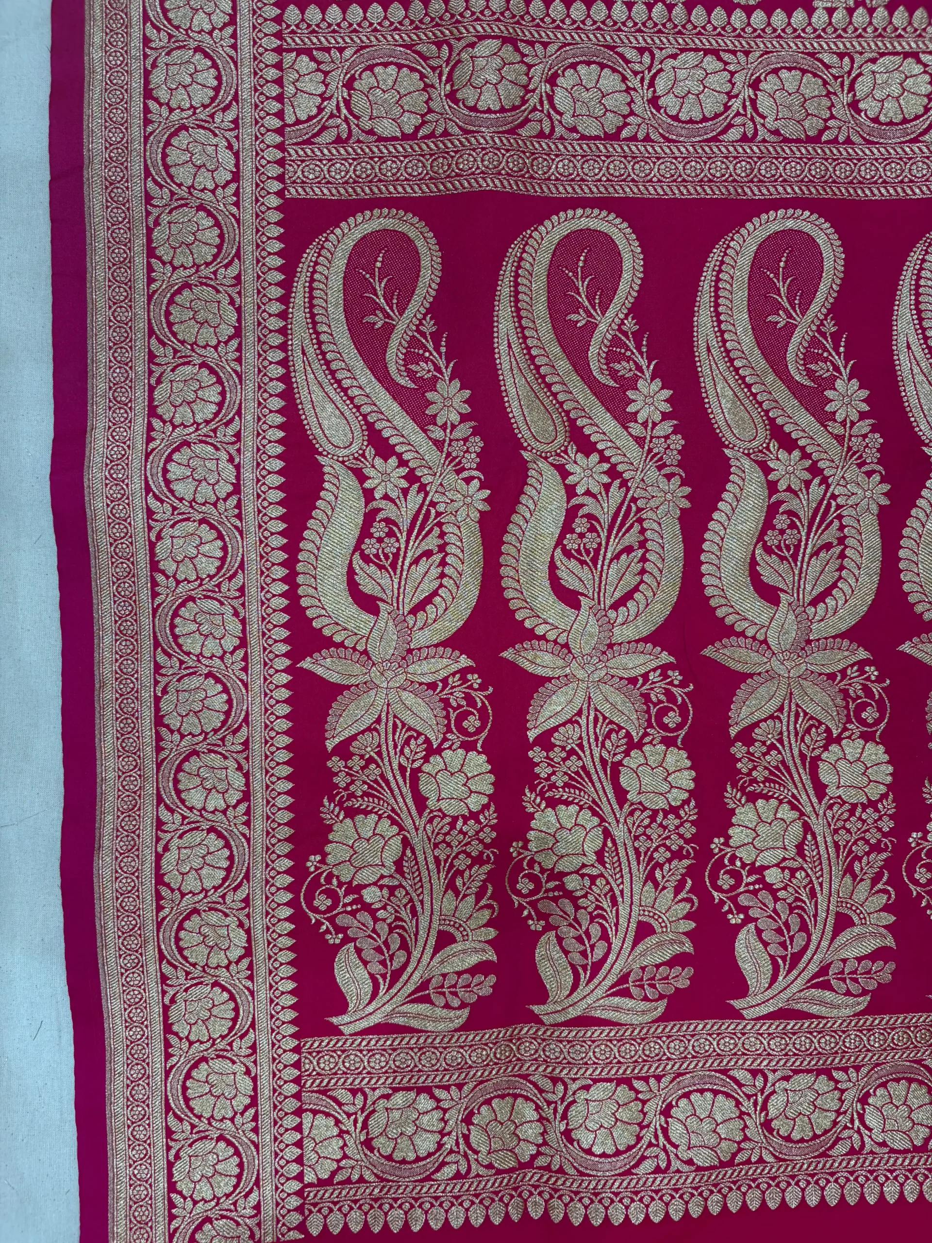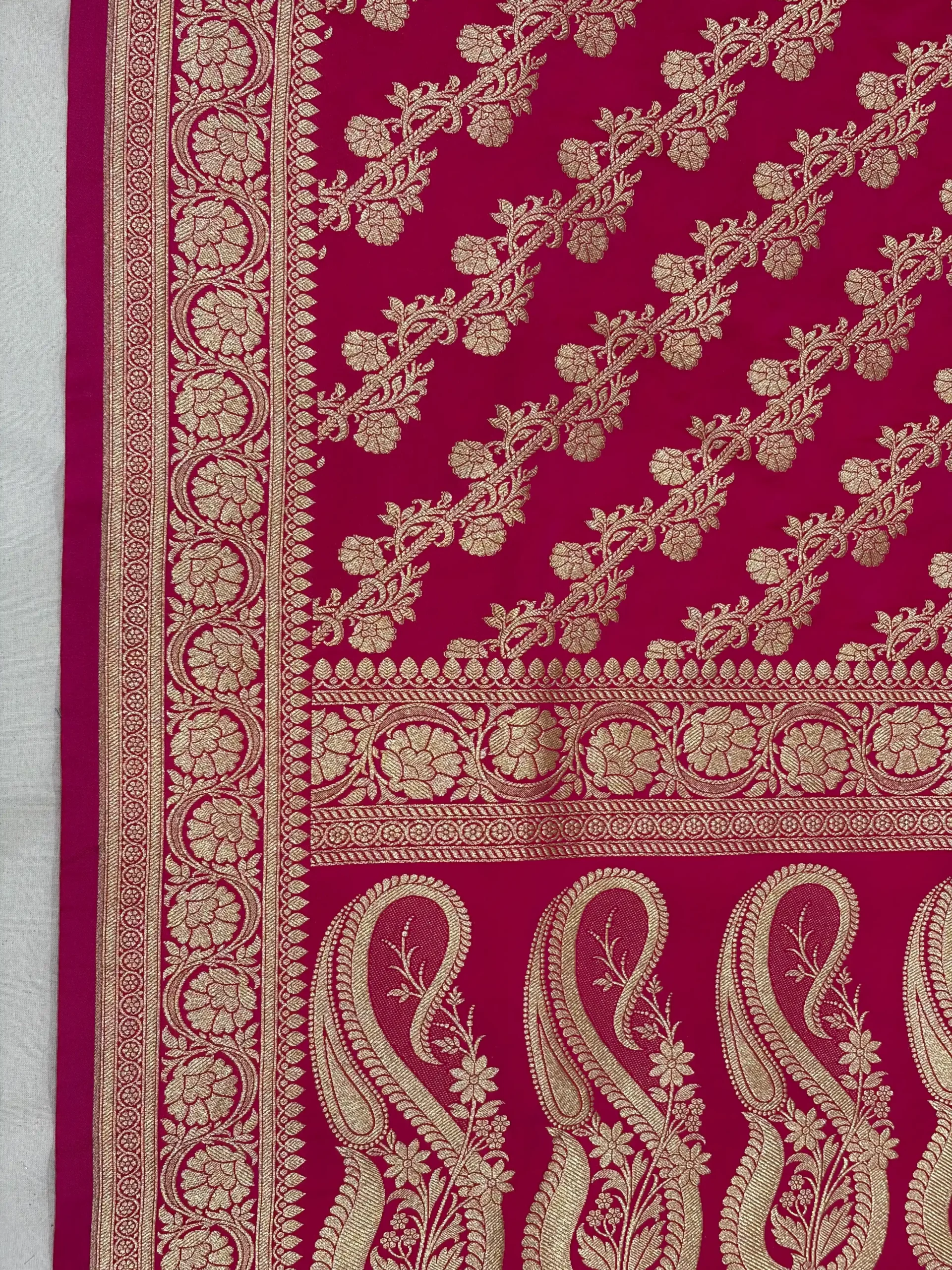 Rani Pink Banarasi Silk Saree with Golden Zari Booti