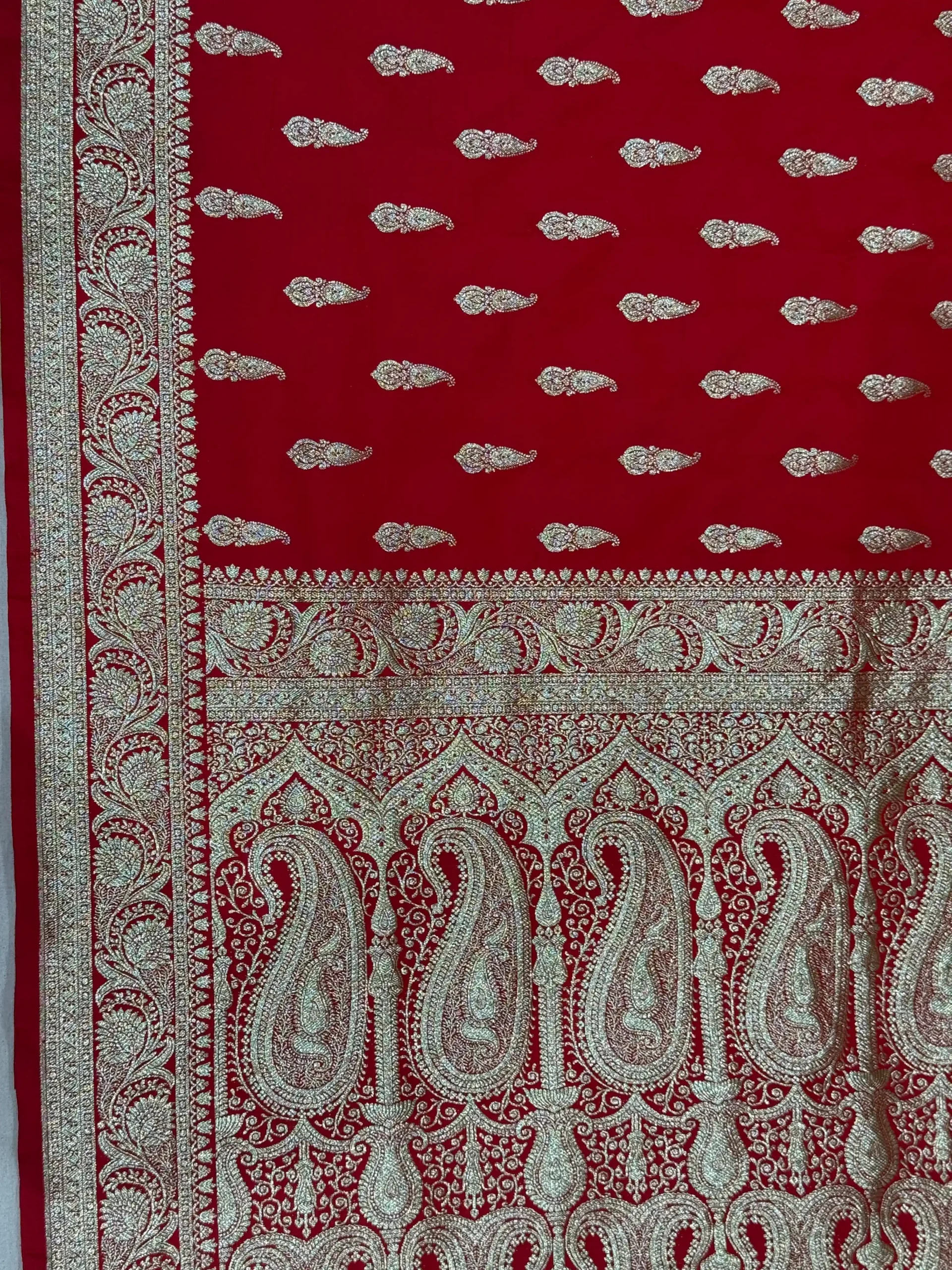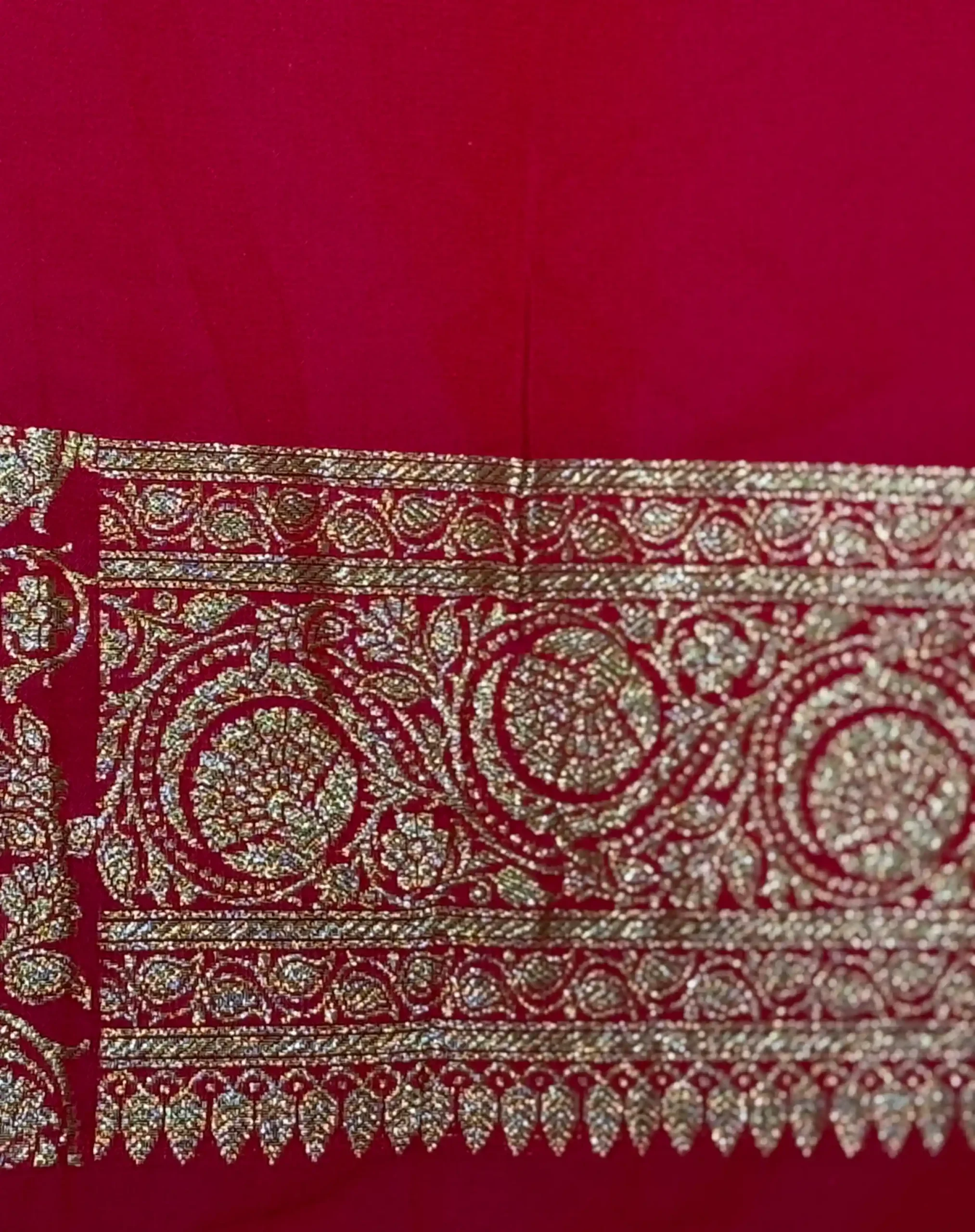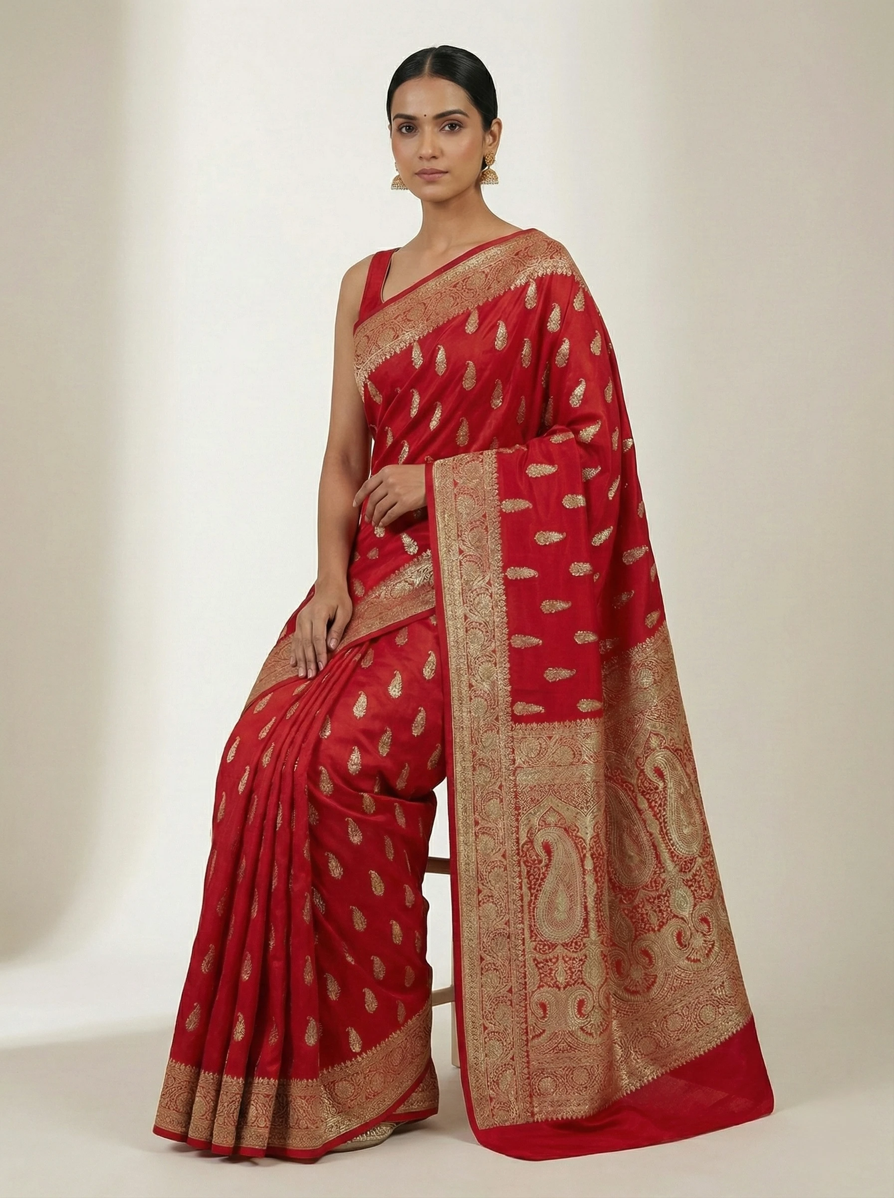 Crimson Red Banarasi Silk Saree with Gold Zari Waves