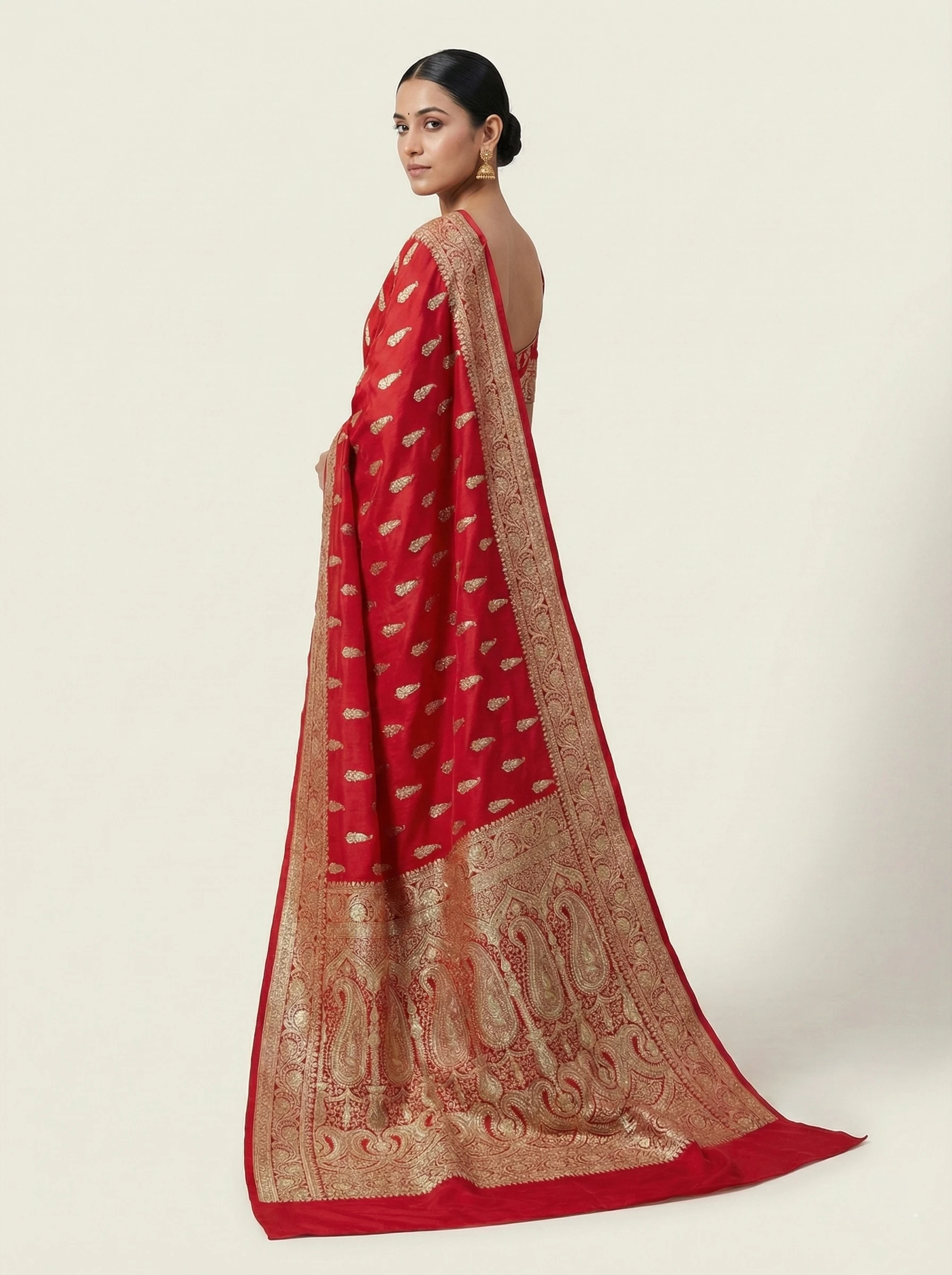 Red Handwoven Banarasi Silk Saree with Running Blouse