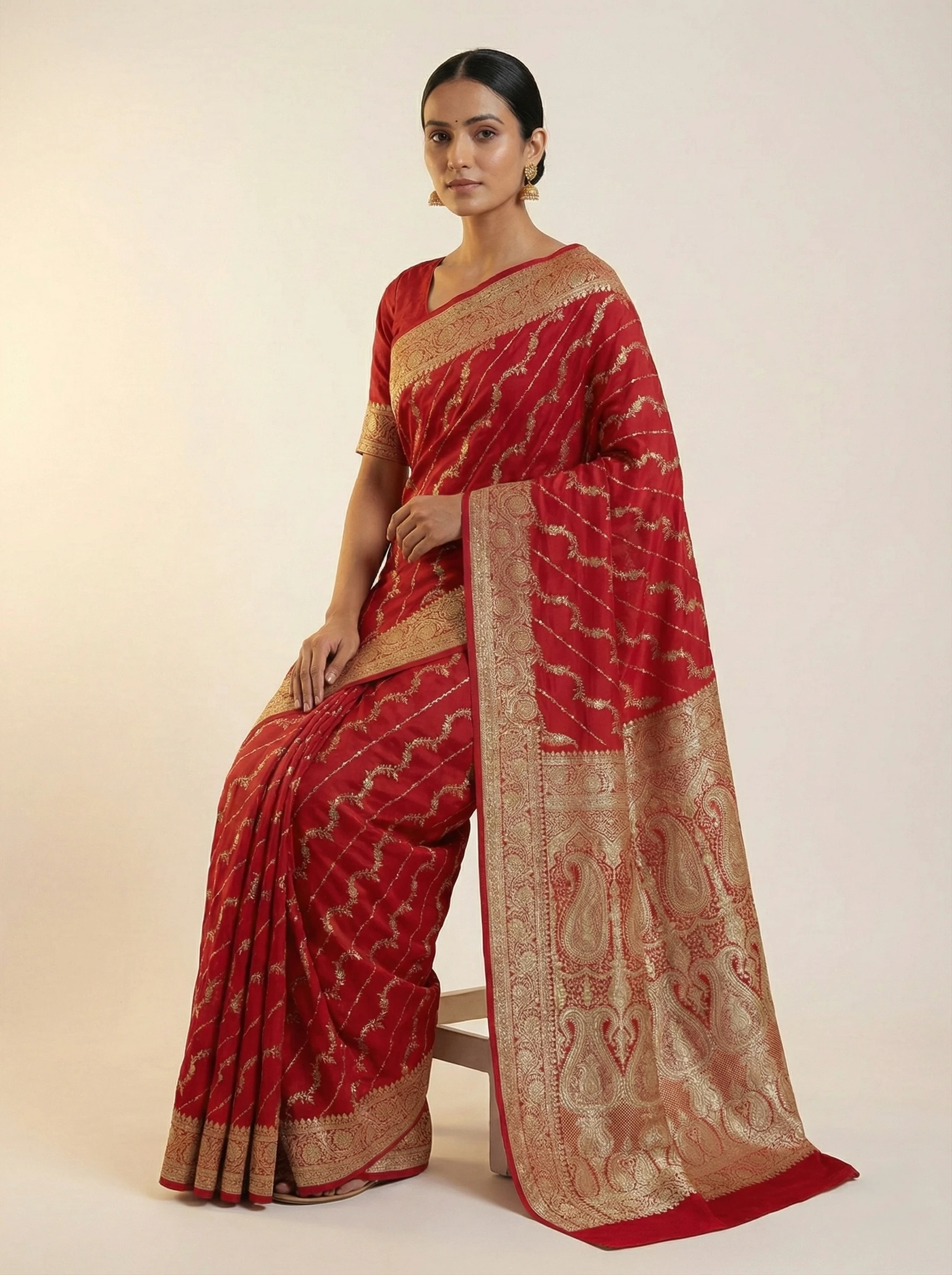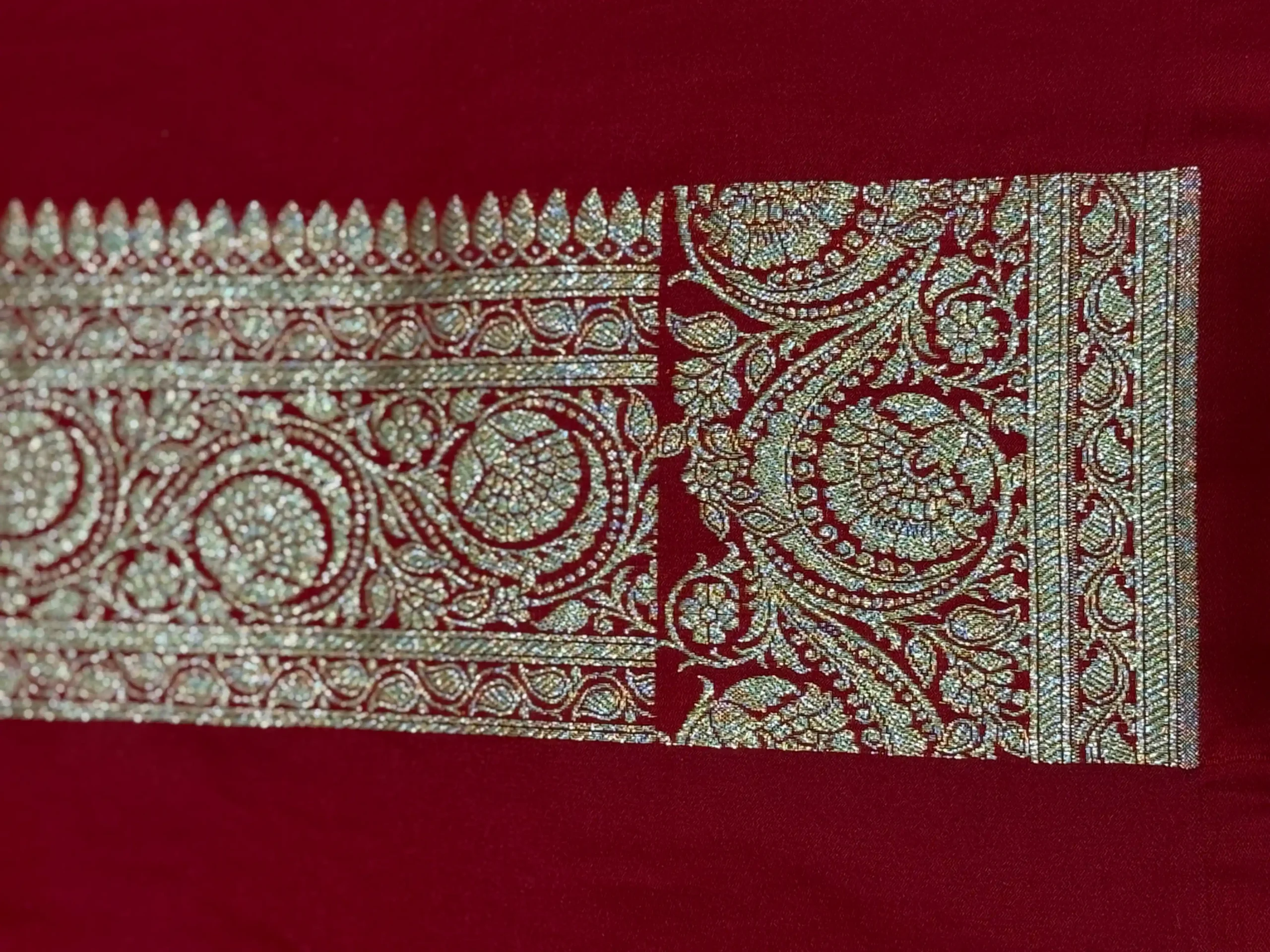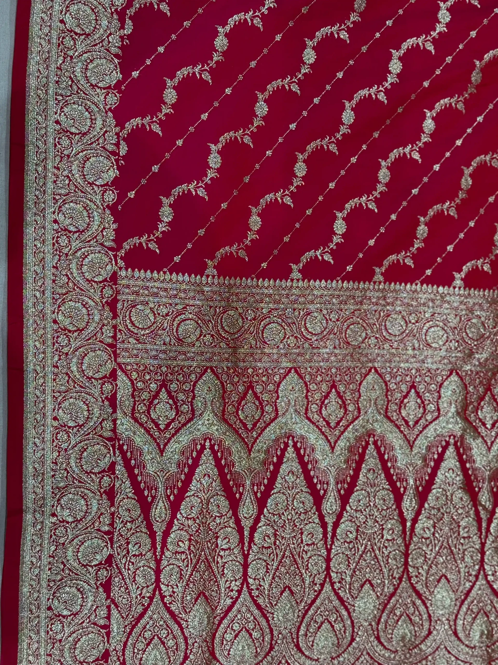 Crimson Red Banarasi Silk Saree with Gold Zari Waves