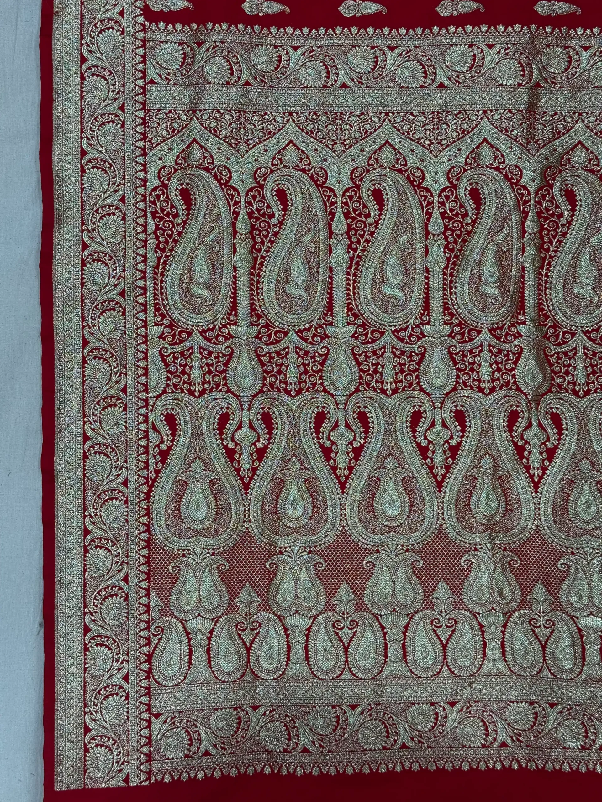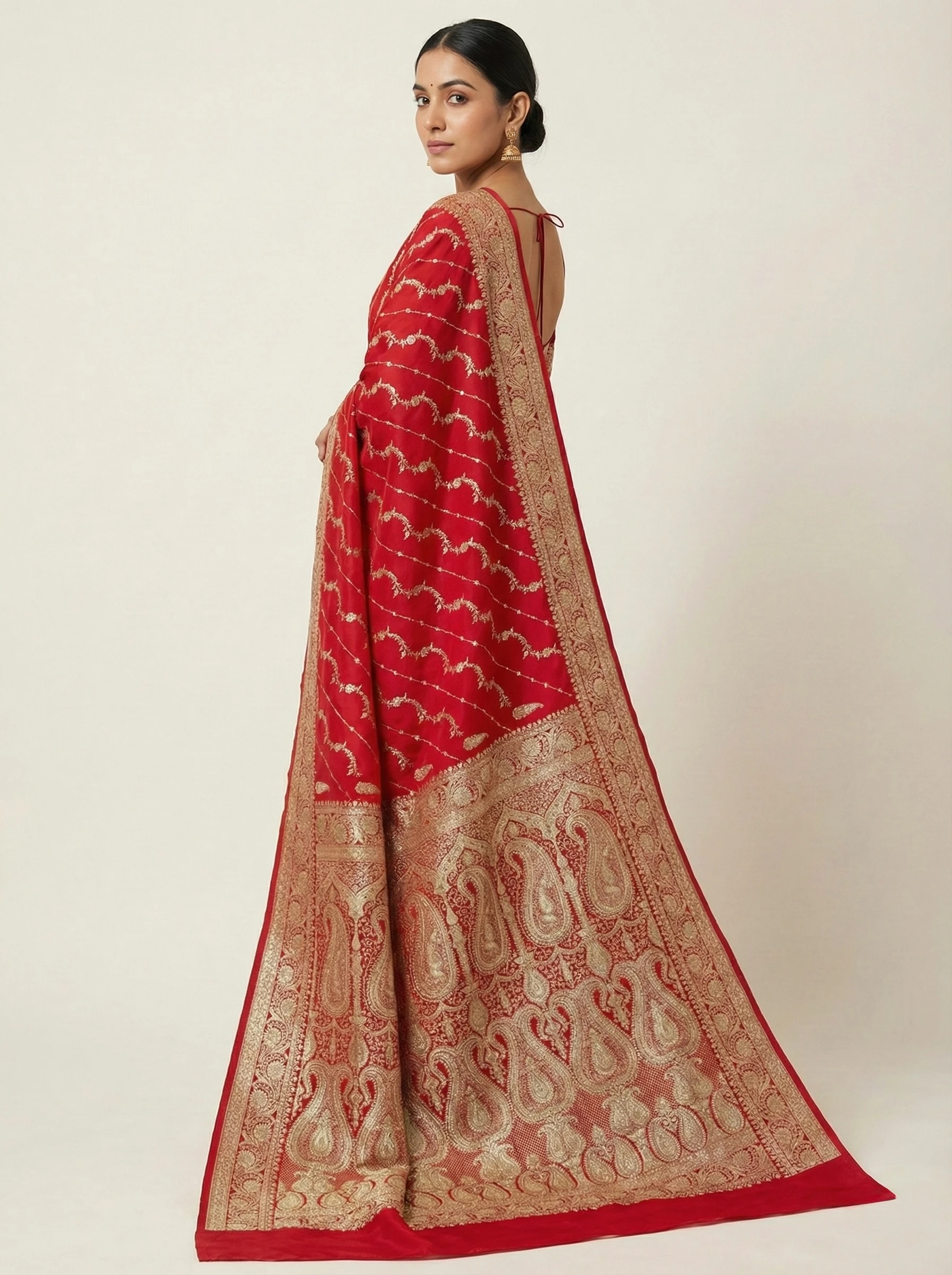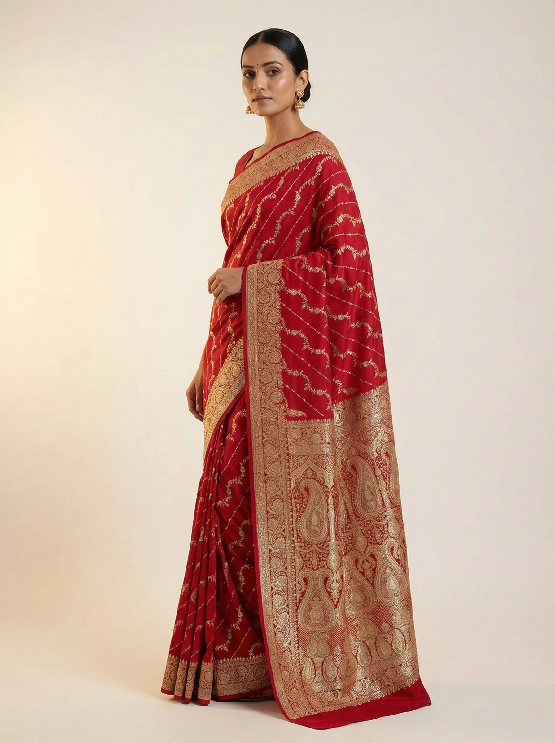 Crimson Red Banarasi Silk Saree with Gold Zari Waves