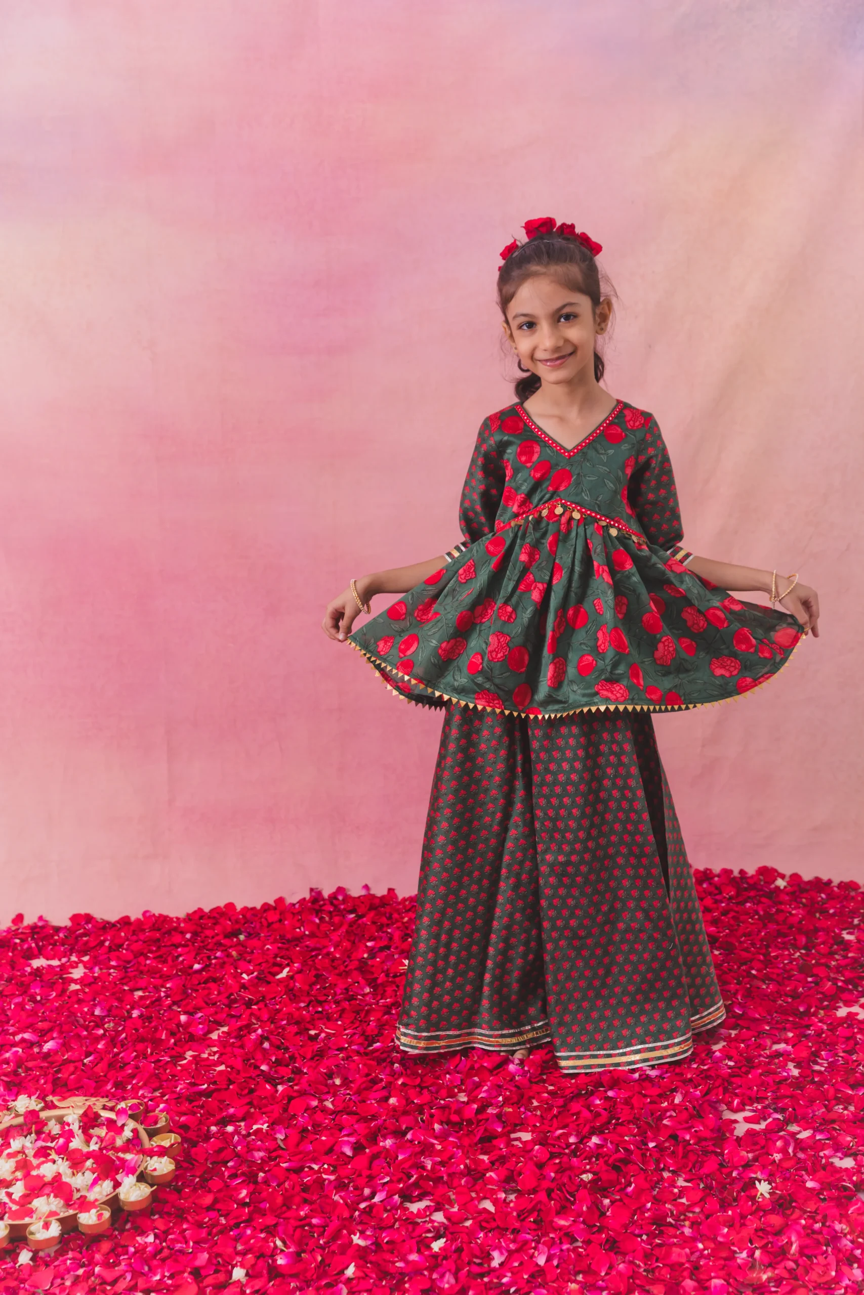 Green Chanderi Peplum Sharara Set for Girls