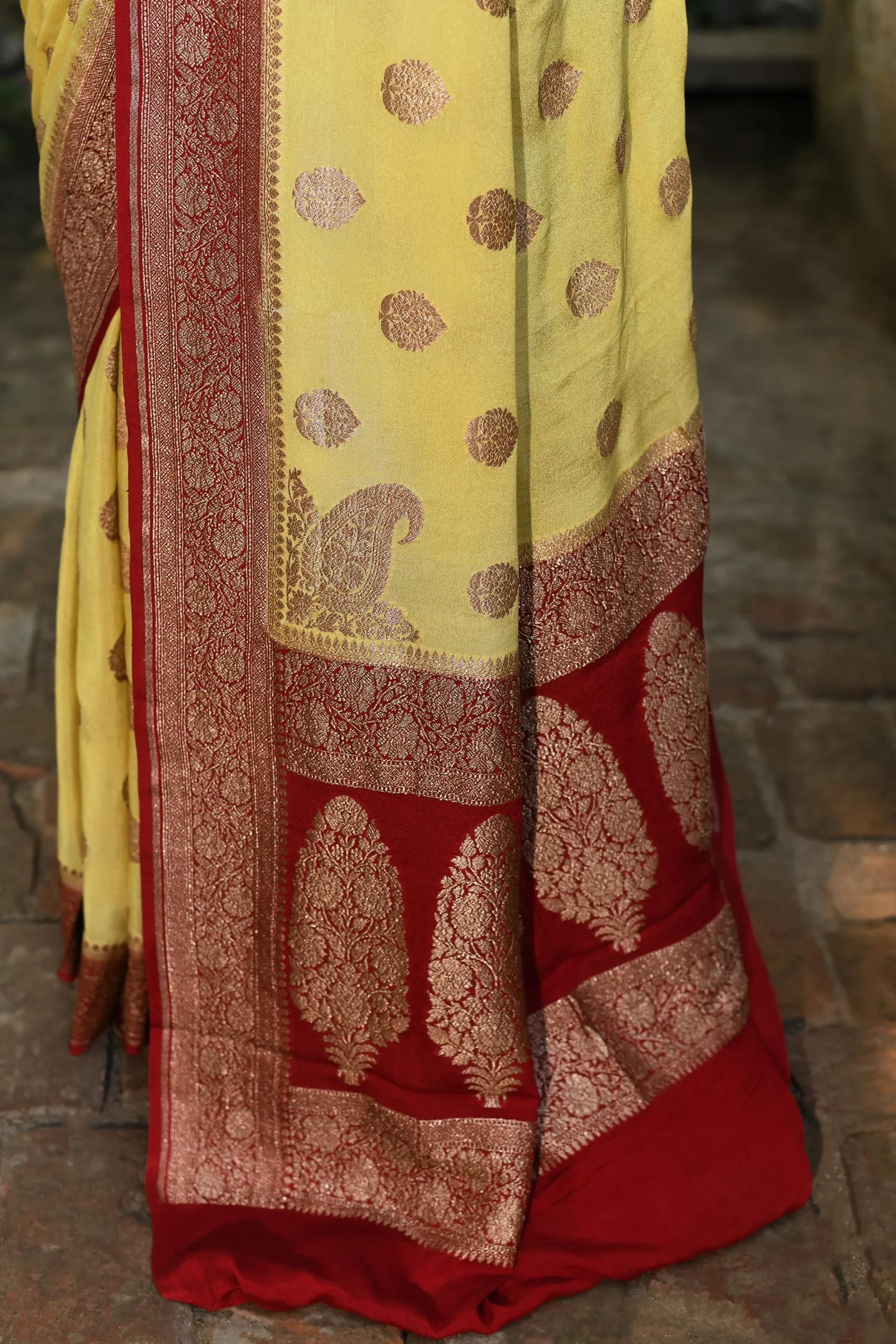 Crimson Red Banarasi Silk Saree with Gold Zari Waves