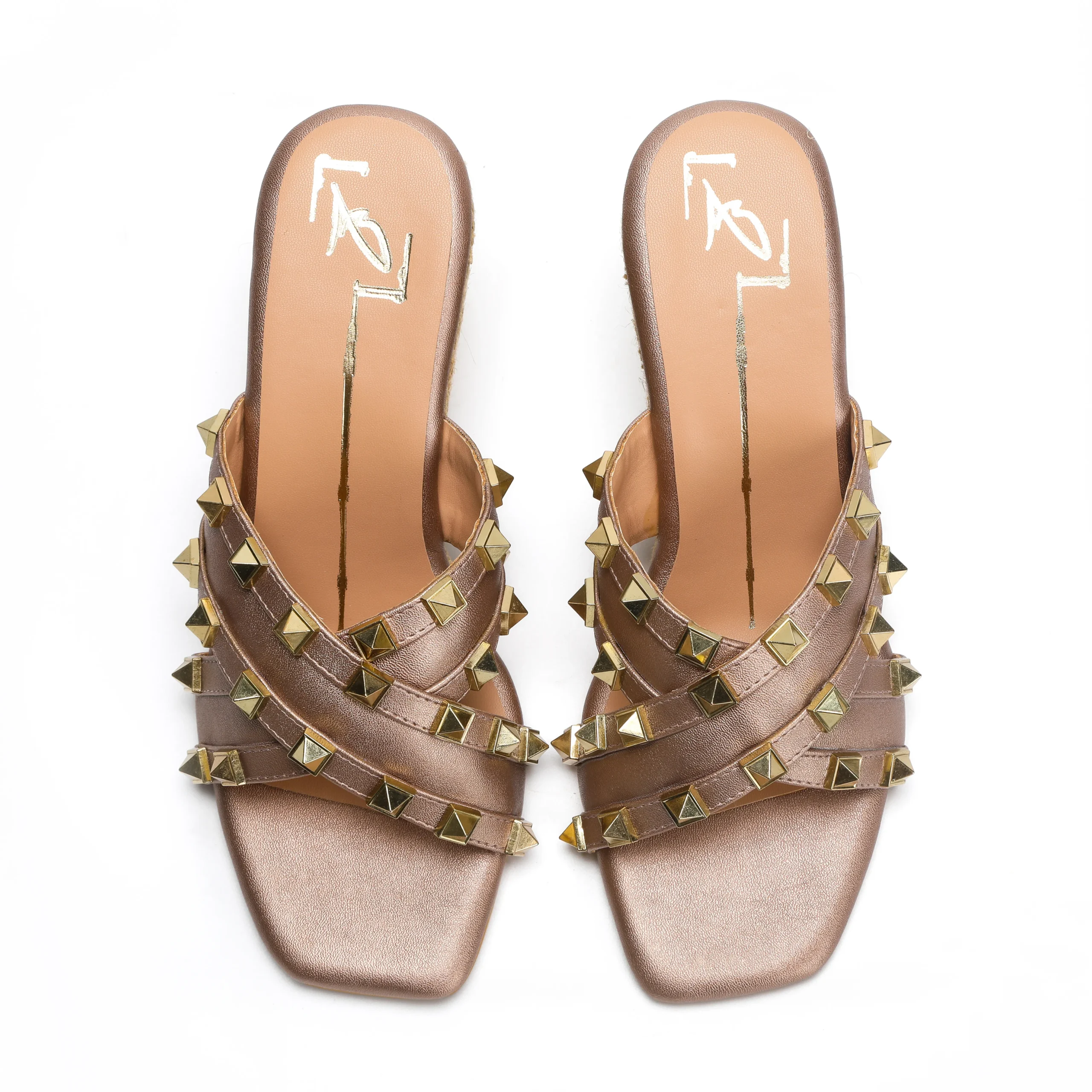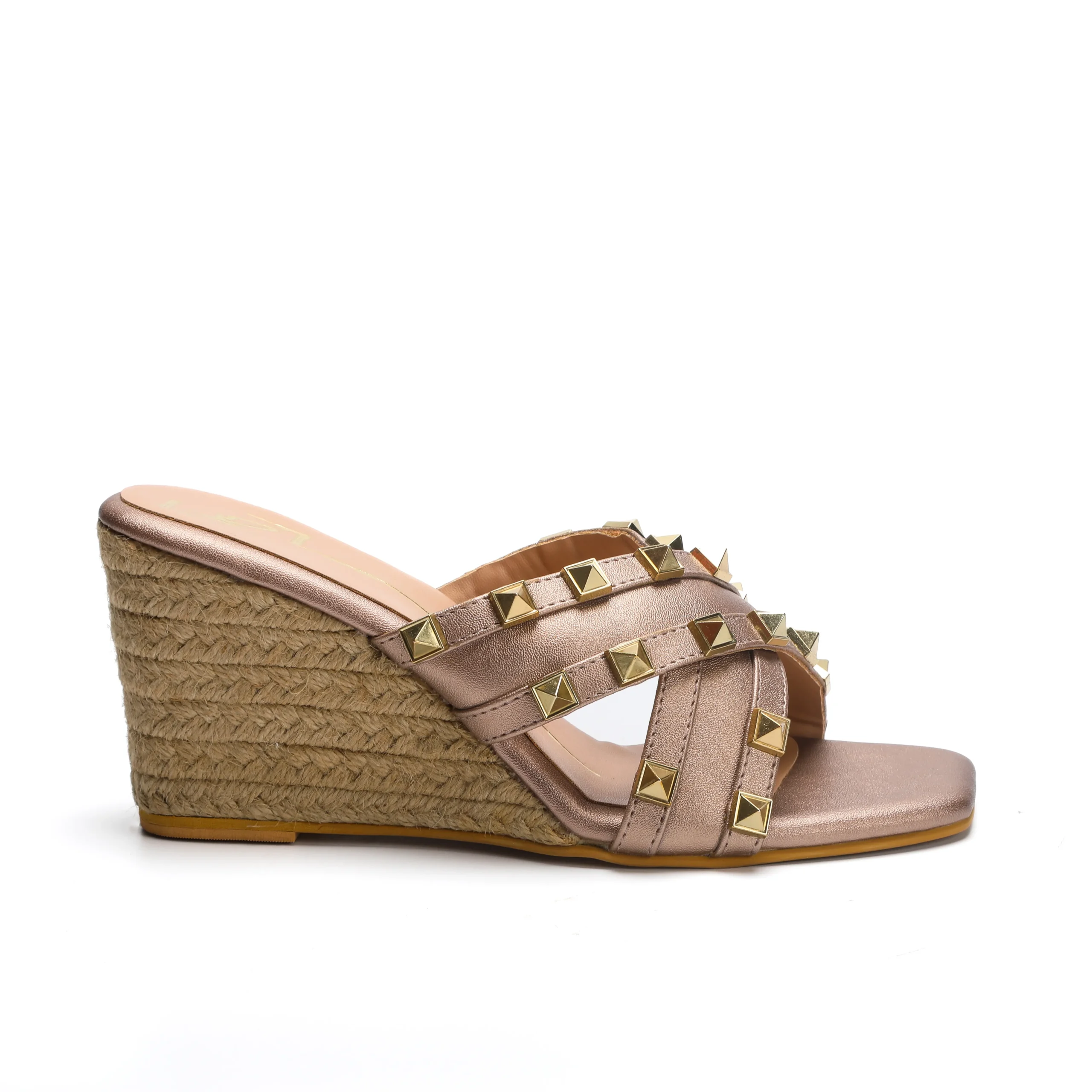 Rose Gold Studded Strap Espadrille Wedge Heels