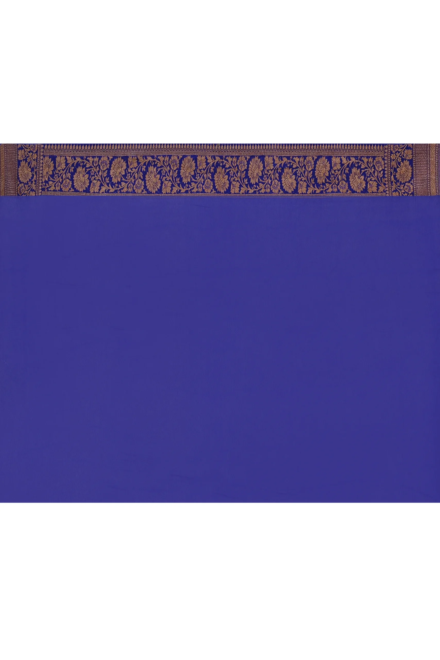 Introducing a graceful rose pink pure Banarasi crepe chiffon silk saree, handwoven with delicate all-over zari motifs across the body. Elegantly paired with a heavily woven traditional ink blue border and pallu featuring antique gold zari floral and ornamental designs, it comes with a matching running blouse piece—perfect for refined festive elegance.