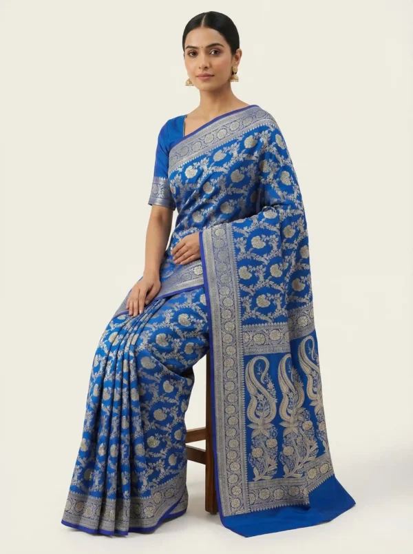 Royal Blue Mashroo Silk Handwoven Banarasi Saree