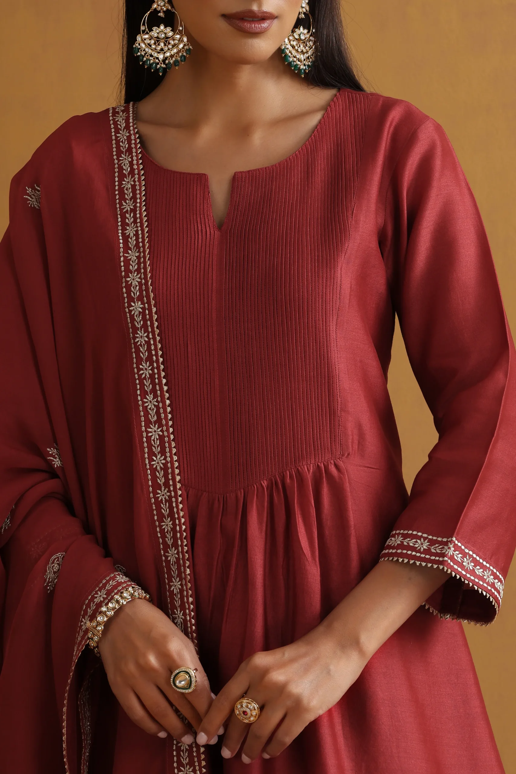 Yatika Rust Embroidered Pintex Kurta Set with Dupatta