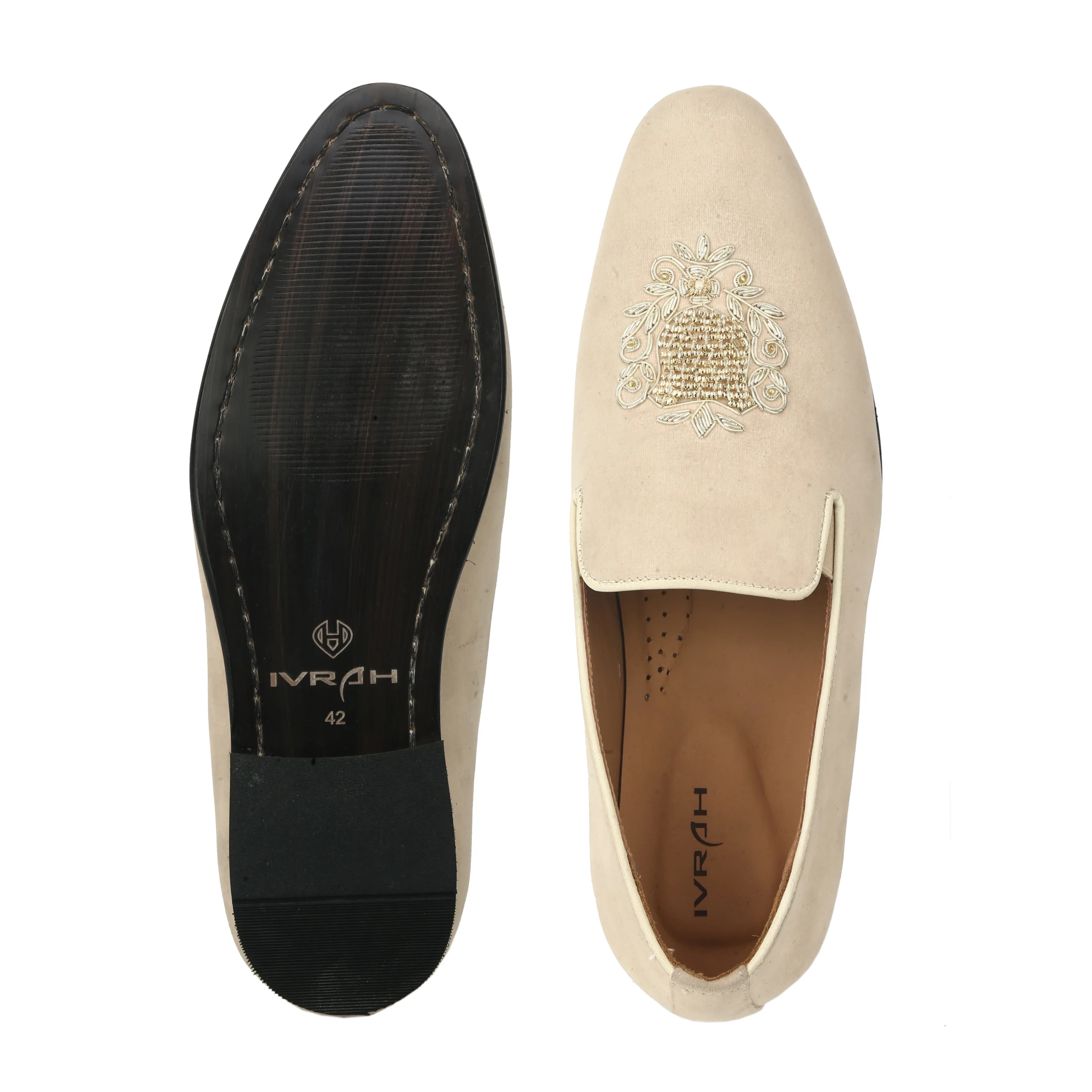 Style these men’s beige slip-on shoes with tailored suits, bandhgalas, or Indo-western outfits for weddings and festive occasions. They also pair well with light-colored trousers and blazers for a polished semi-formal look.