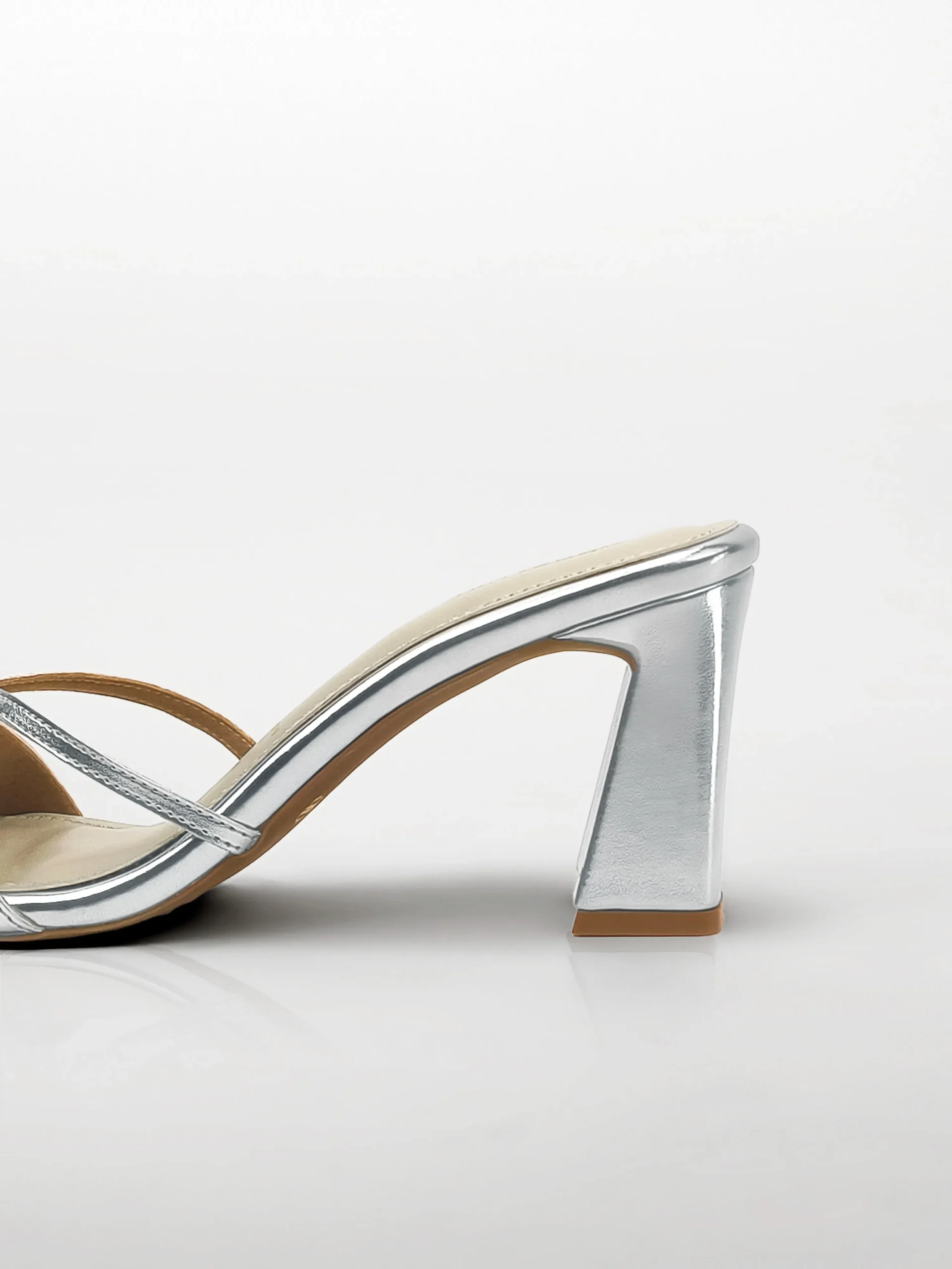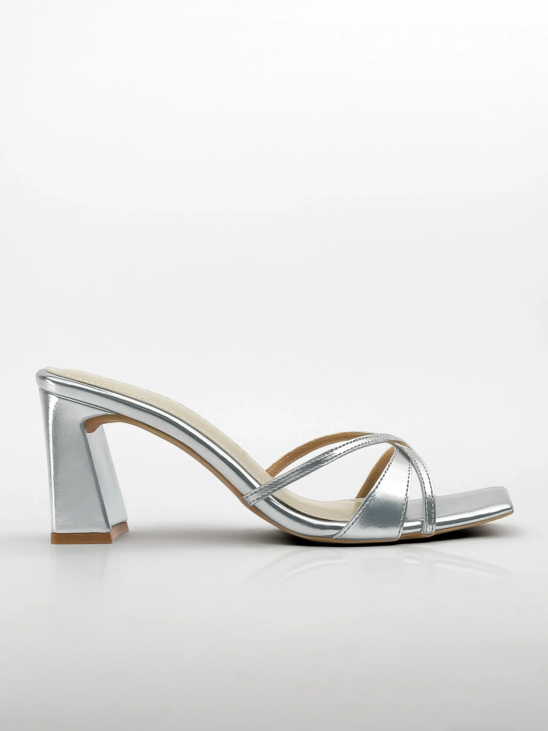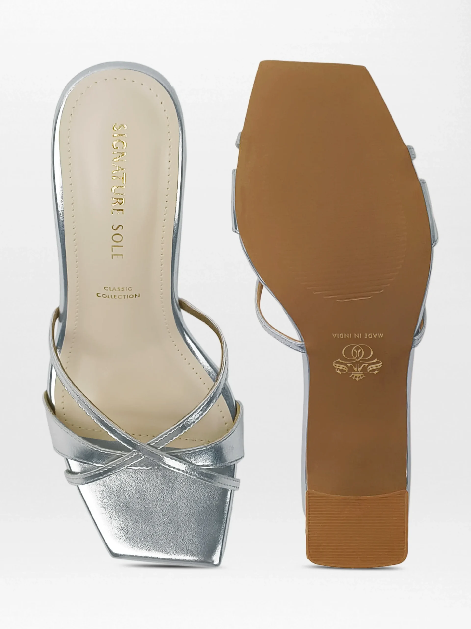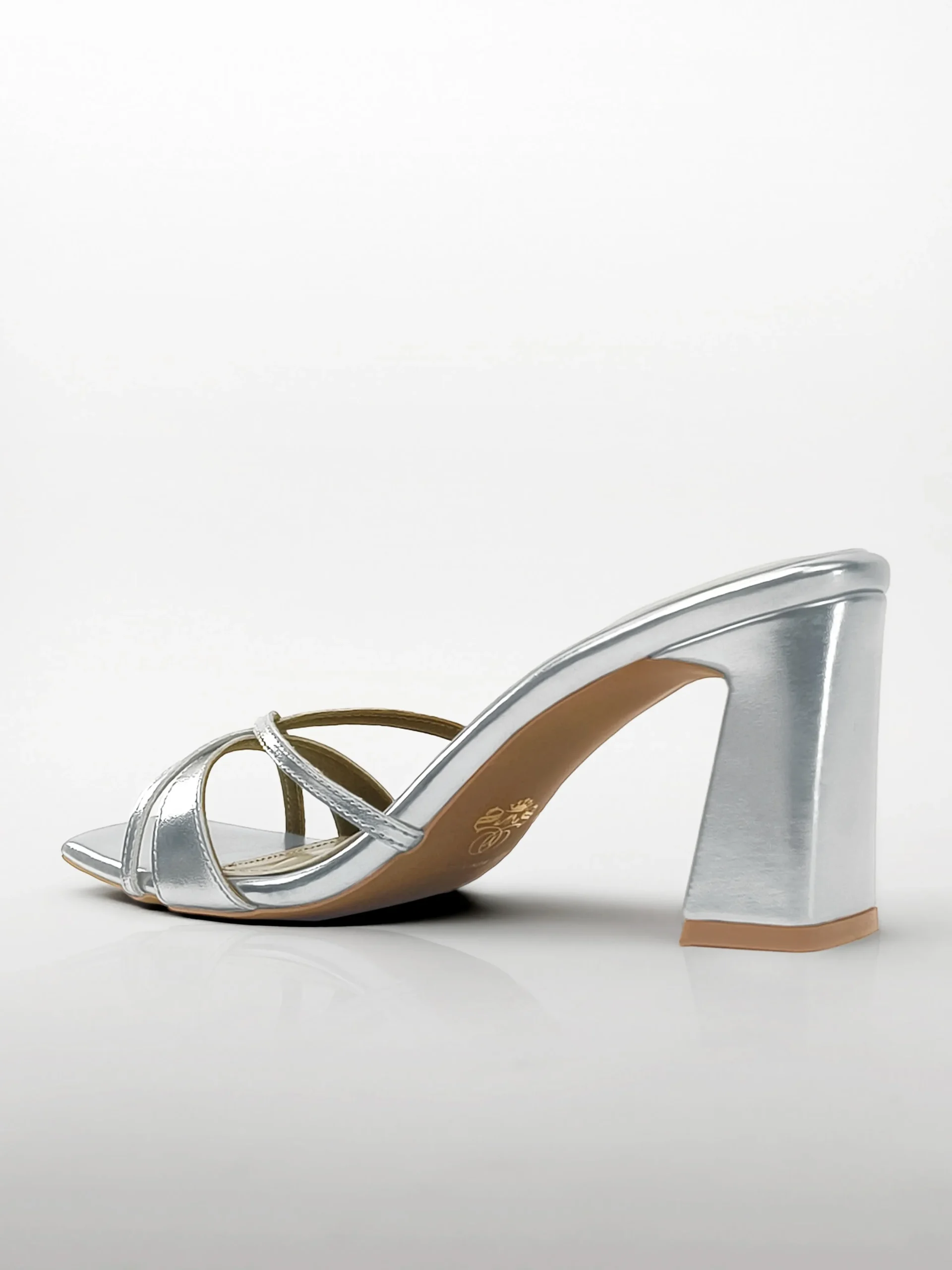 Silver Cross-Strap Block Heel Mule – Heels for Women & Mules for Women
