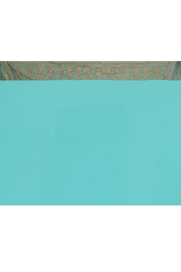Sky Blue Saree with Gold Zari Buta & Mauve Border