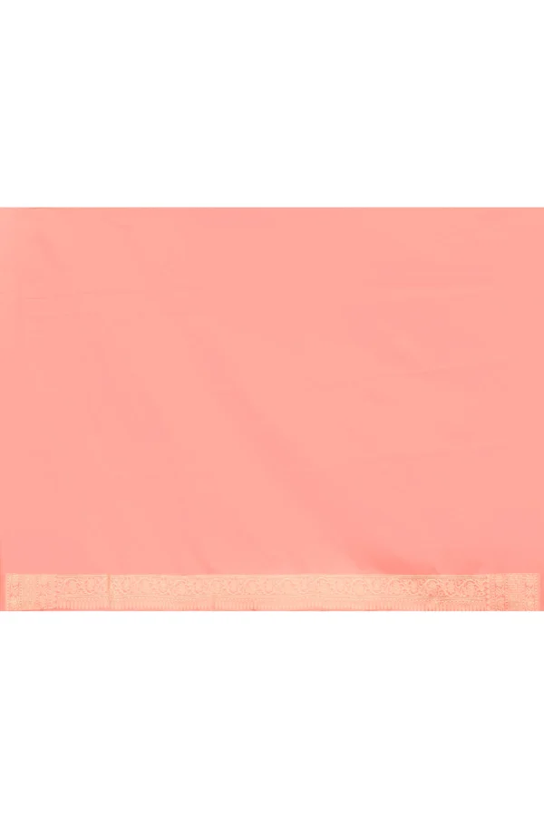 Style this graceful soft peach Banarasi Katan silk saree with antique gold, pearl, or delicate polki jewelry to complement its subtle hue and intricate floral jaal. Pair with gold, nude, or blush-toned heels or embroidered juttis, and complete the look with a metallic clutch or traditional potli.