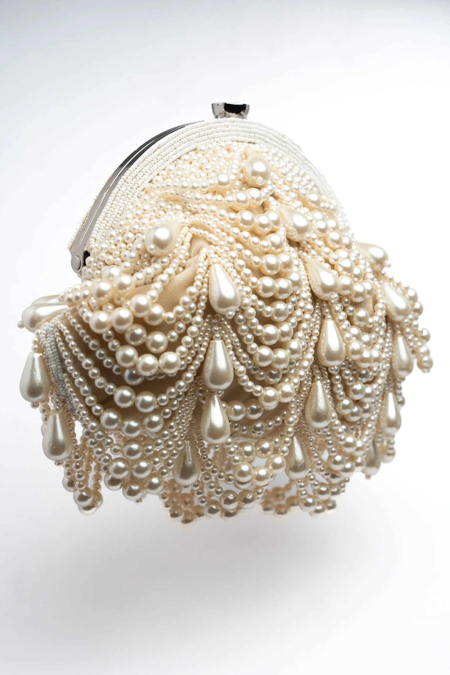 Introducing a luxurious suede gold clutch adorned with delicate pearl drops and subtle gold bead embellishments. Designed to add refined elegance to festive and formal looks, this statement clutch blends classic craftsmanship with modern sophistication, making it the perfect accessory for weddings, evening events, and special occasions.