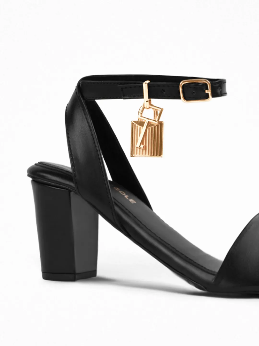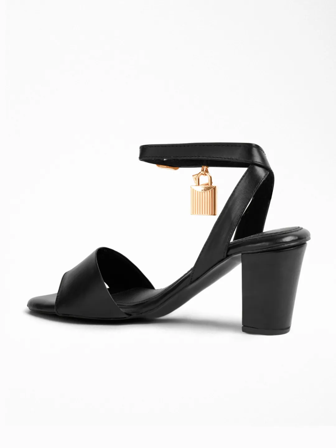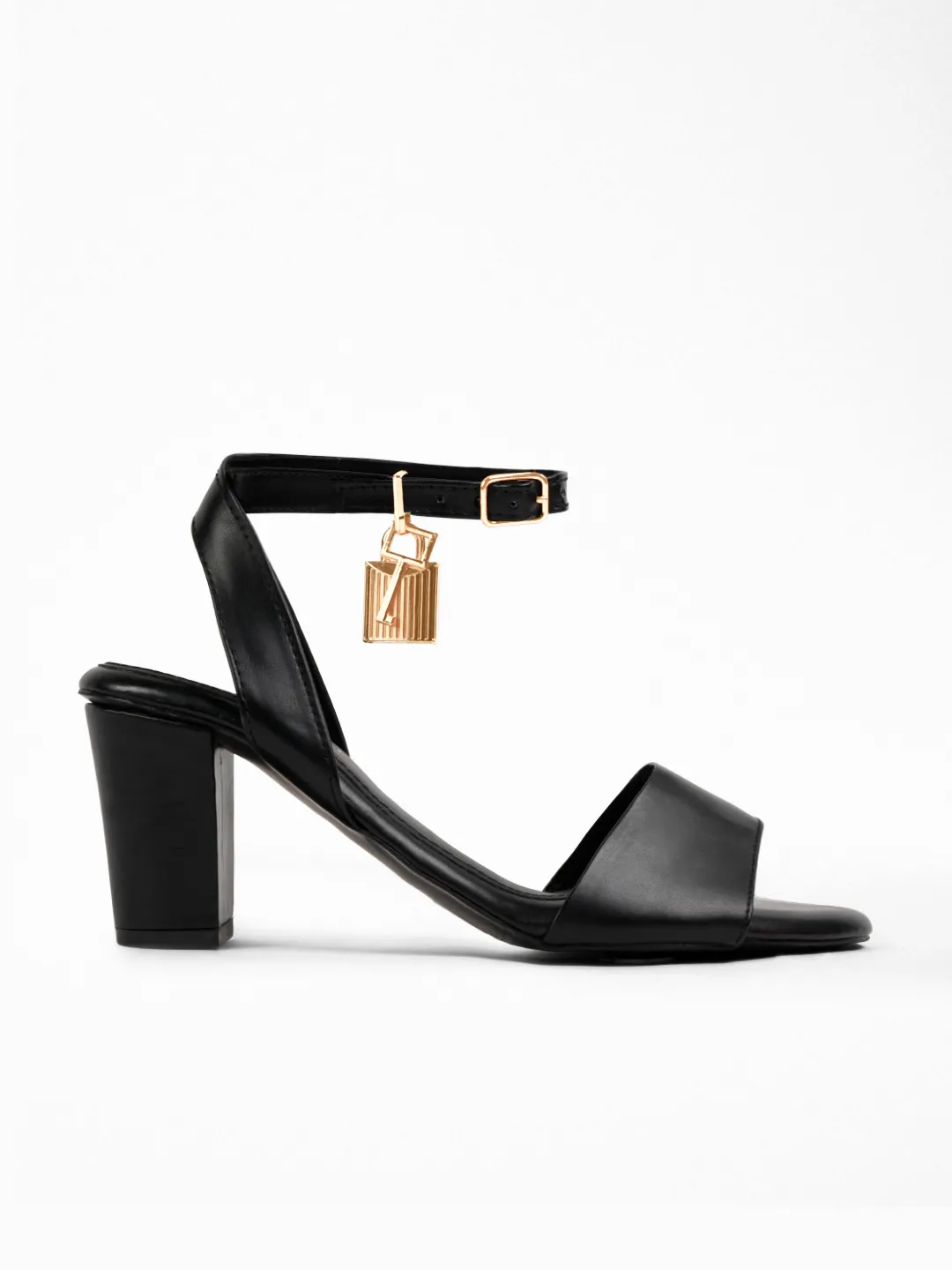 Craft : Gold padlock charm on ankle strap | Buckle fasteningMaterial : Faux leatherWork of : Hours
