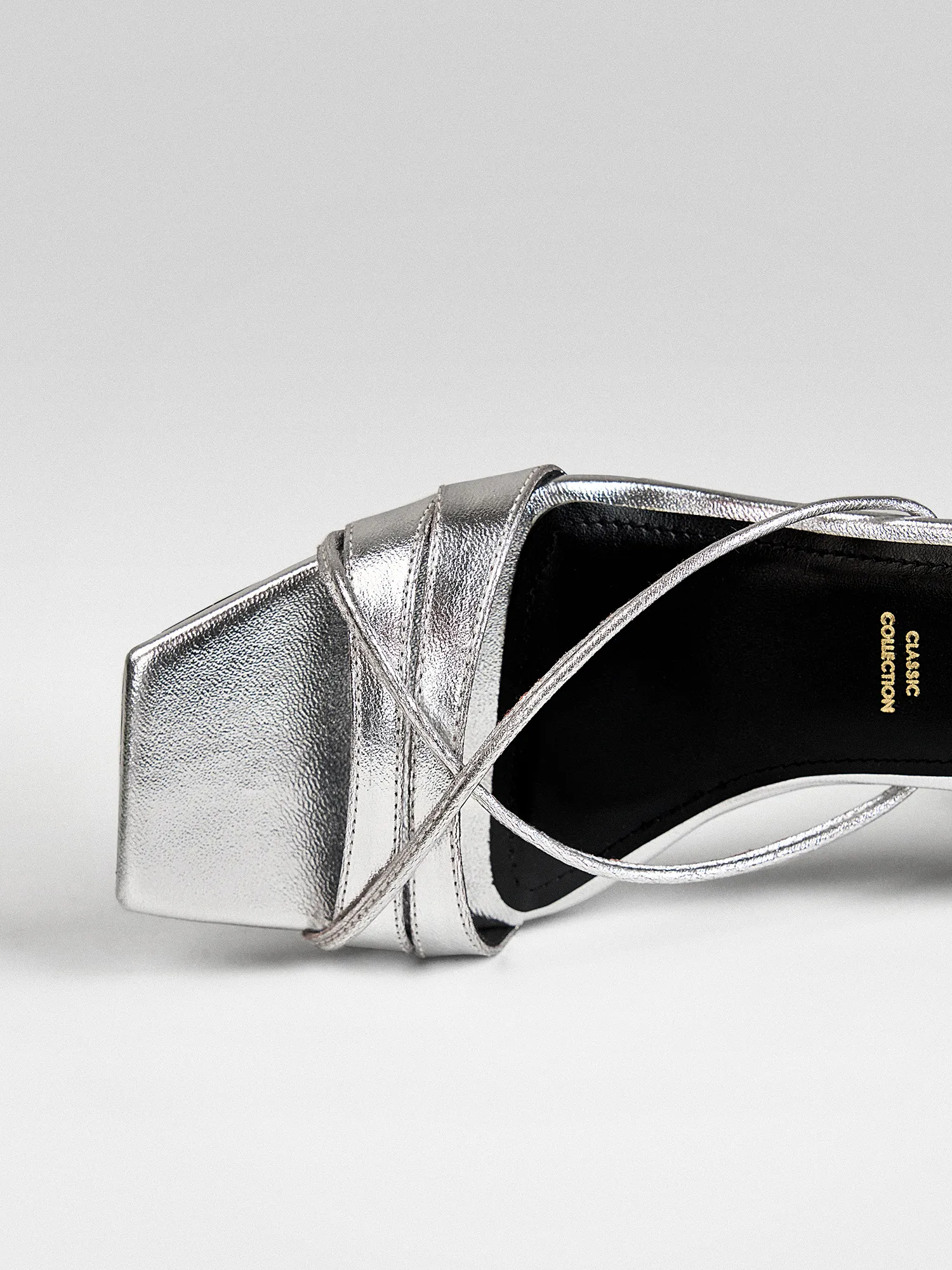 Silver Metallic Ankle Wrap Block Heel for Women