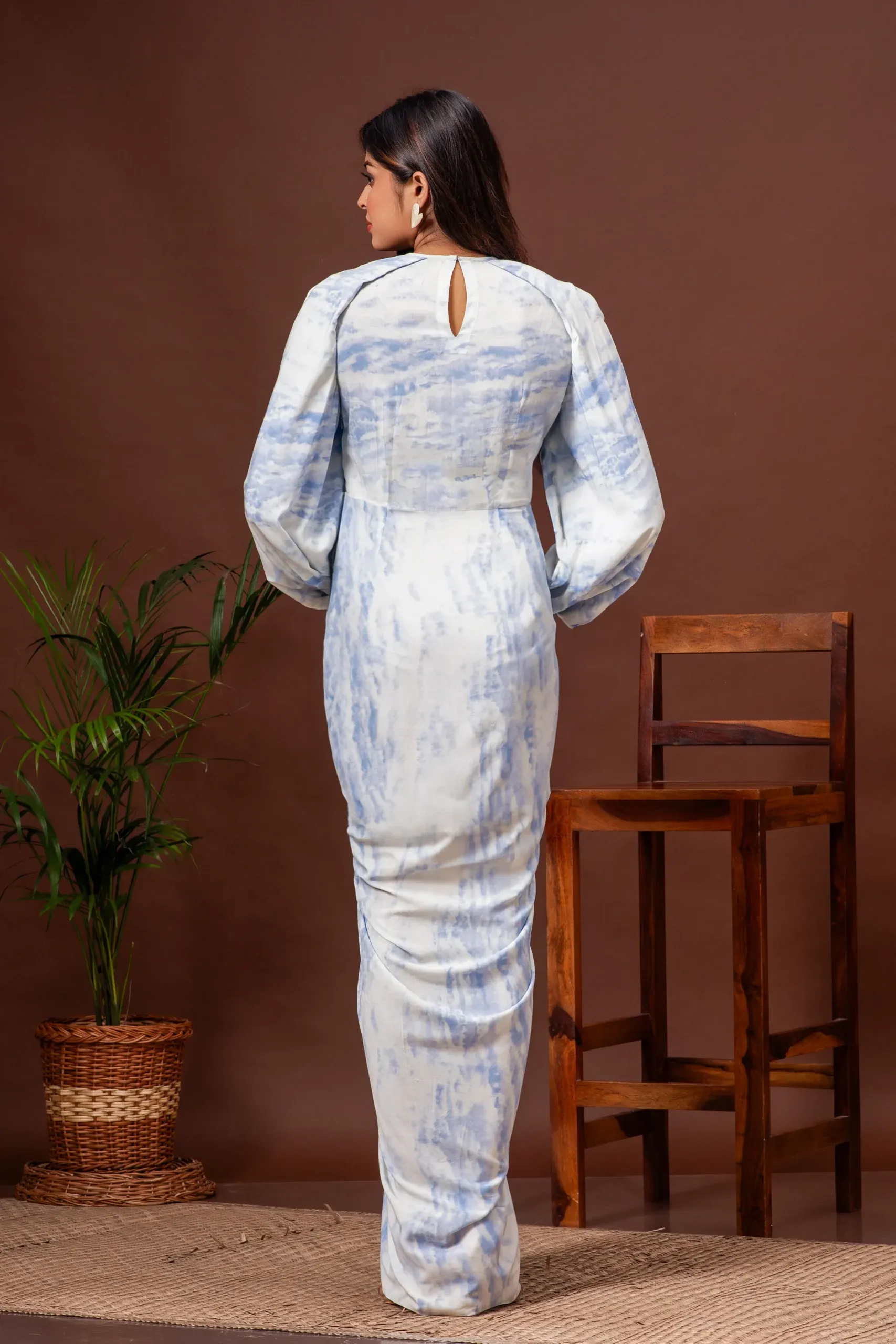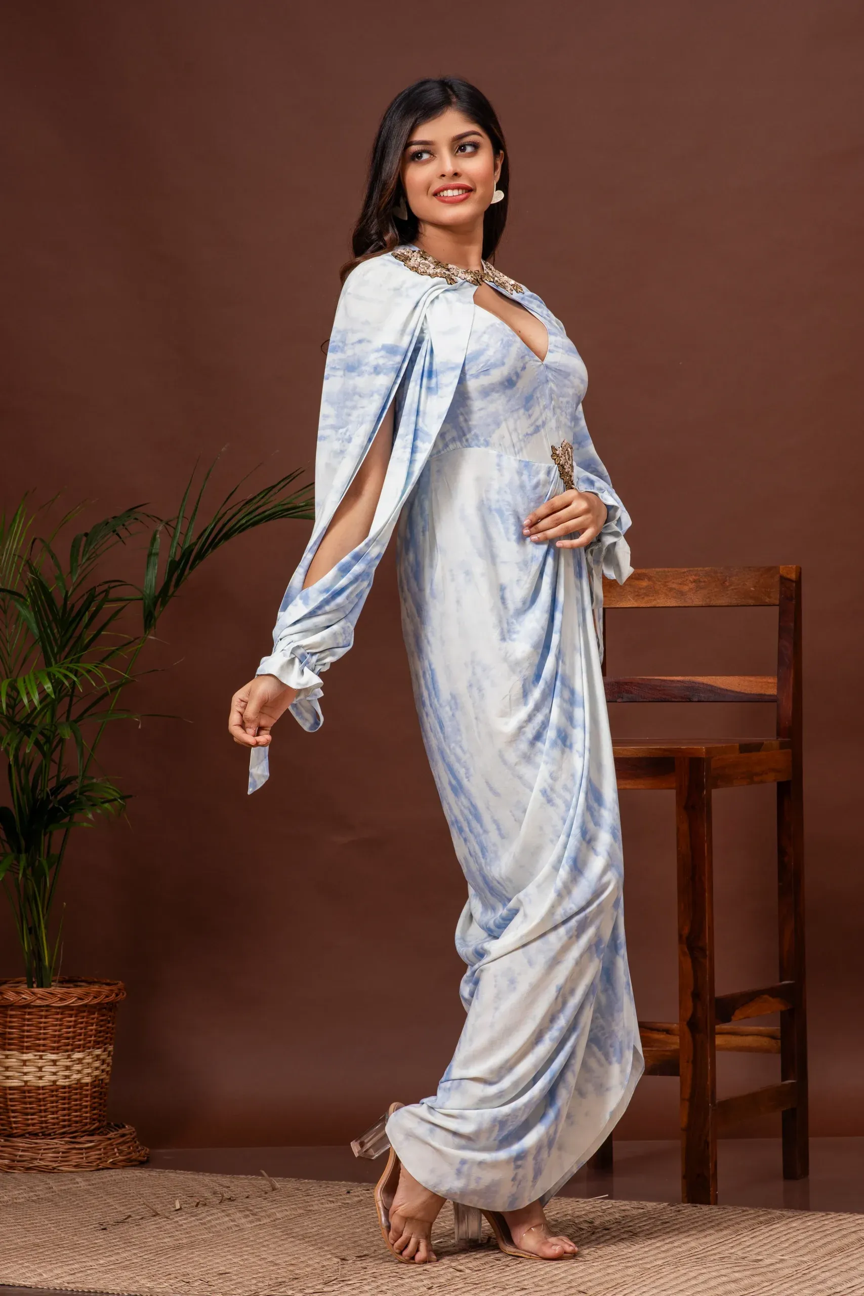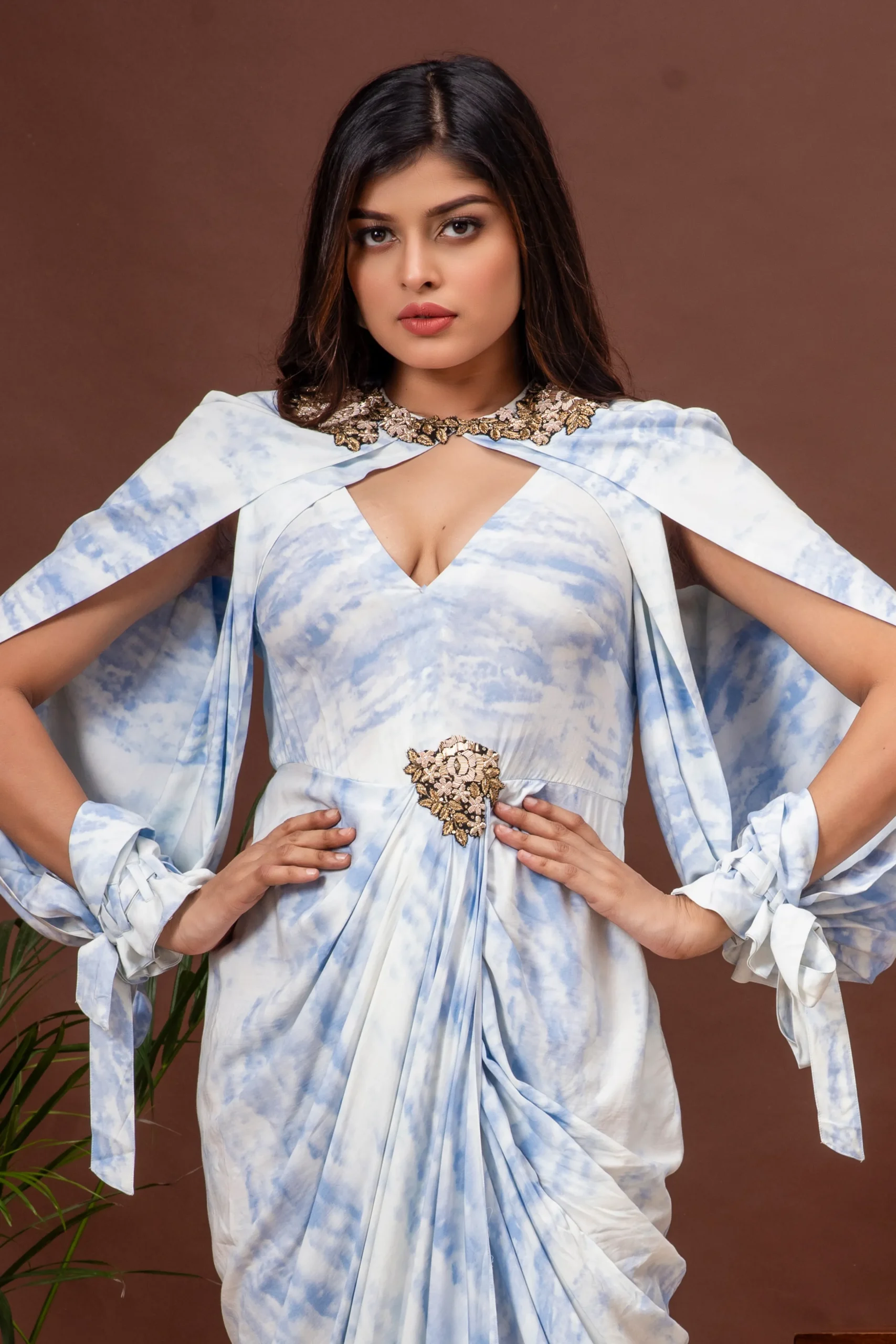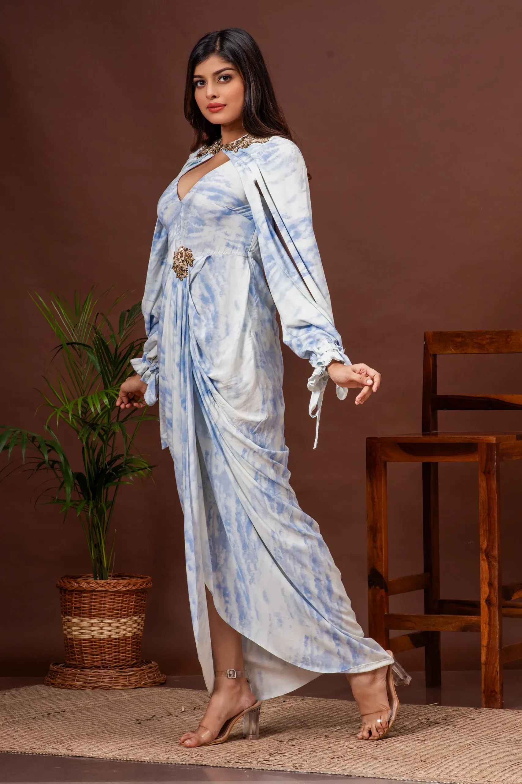 Sky Blue Tie Dye Cotton Cowl Draped Gown