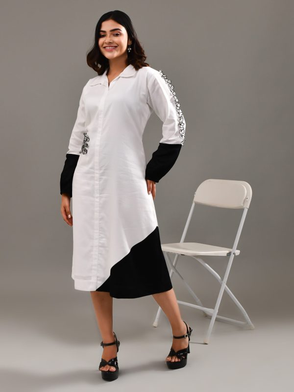 White and Black Blended Cotton Dress