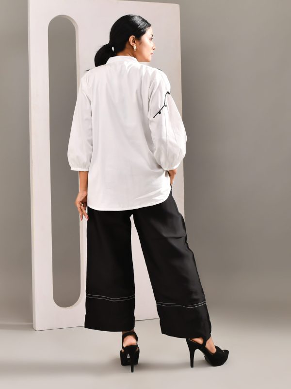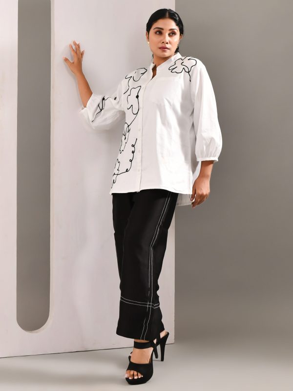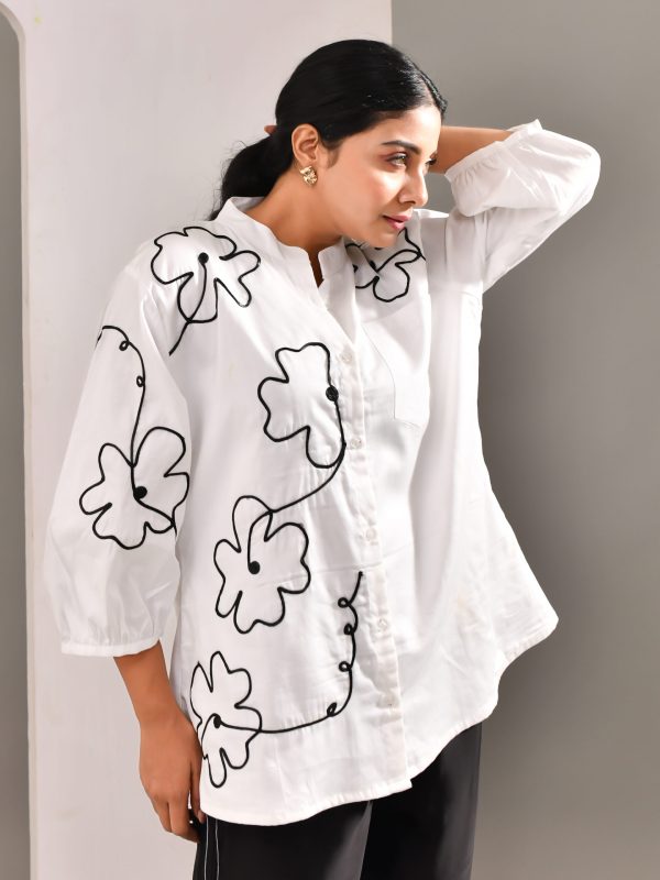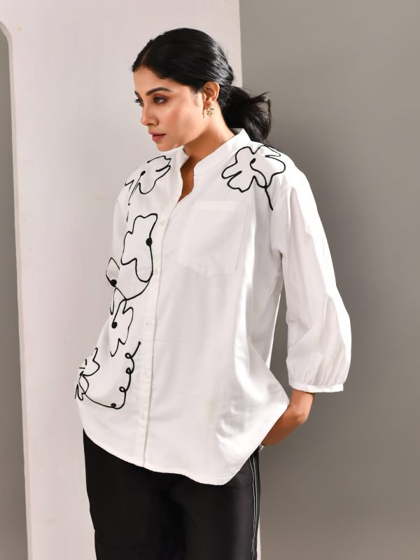 White Flower Patterned Blended Cotton Shirt