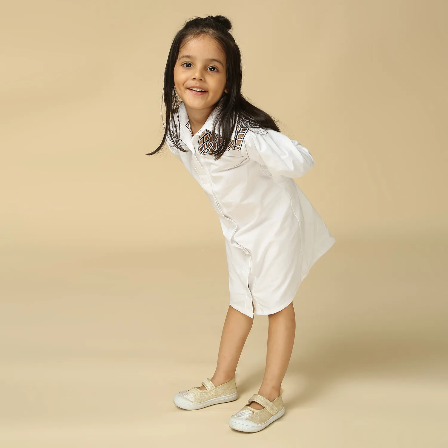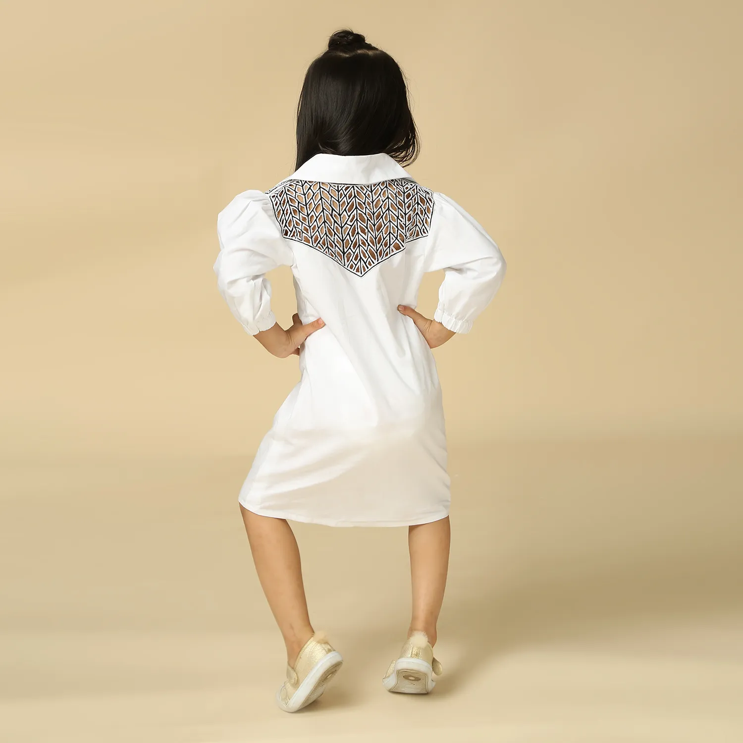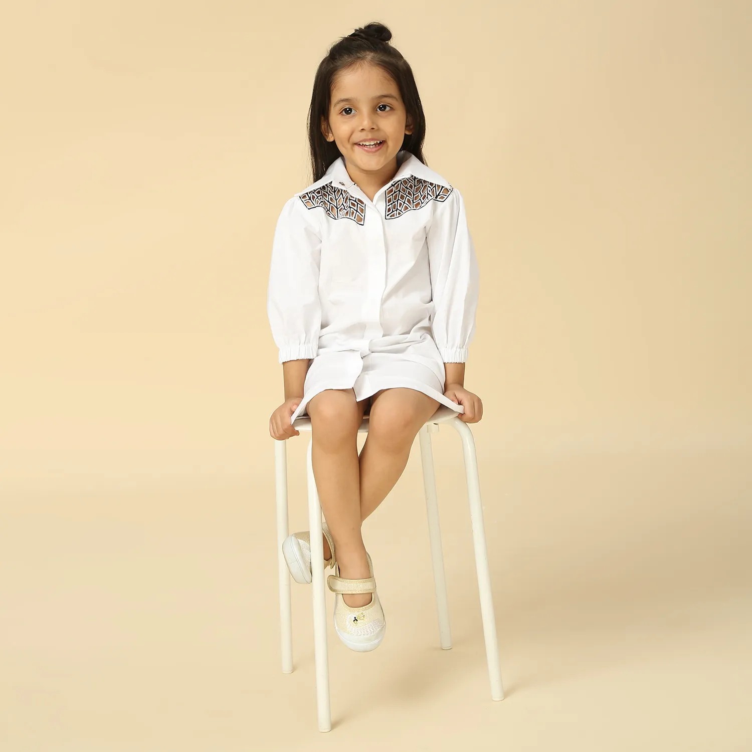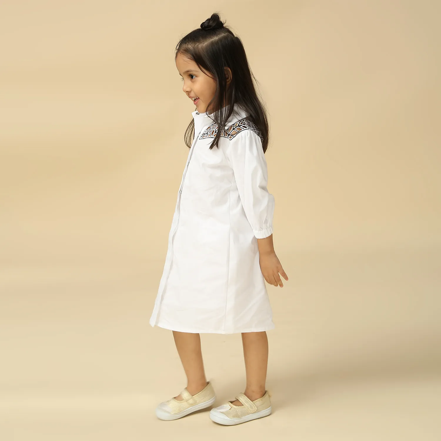 White dress with embroidered yoke