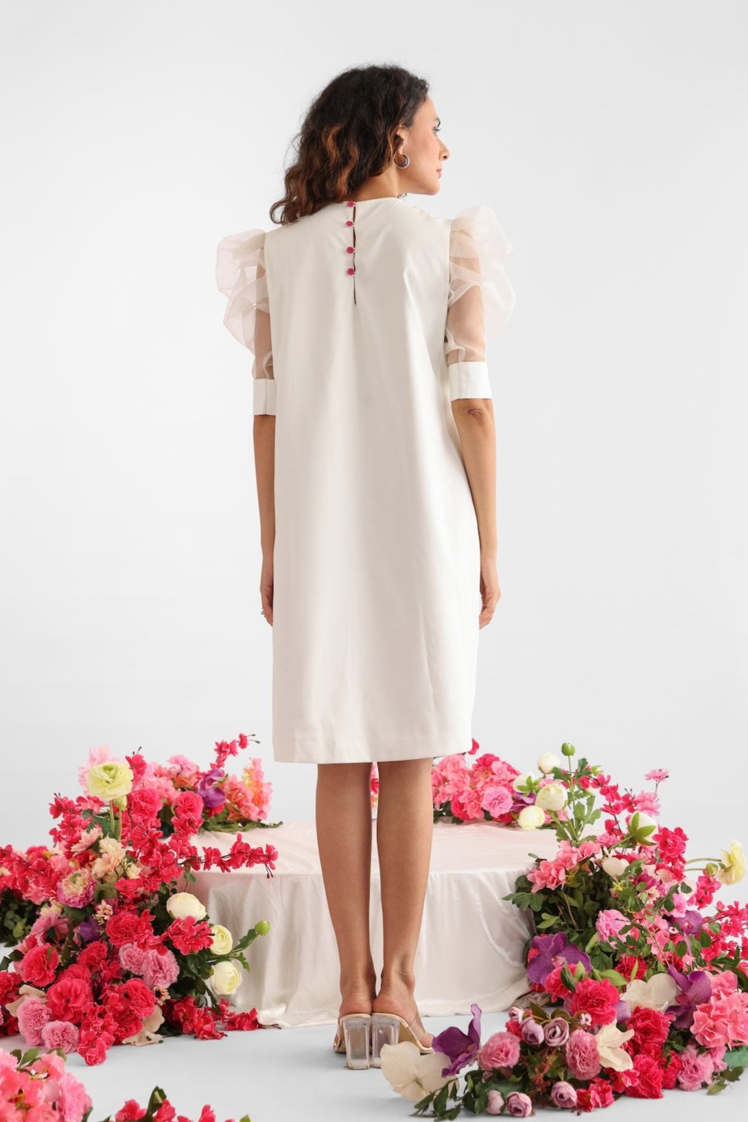 Blossom White Shift Dress With Puff Sleeves